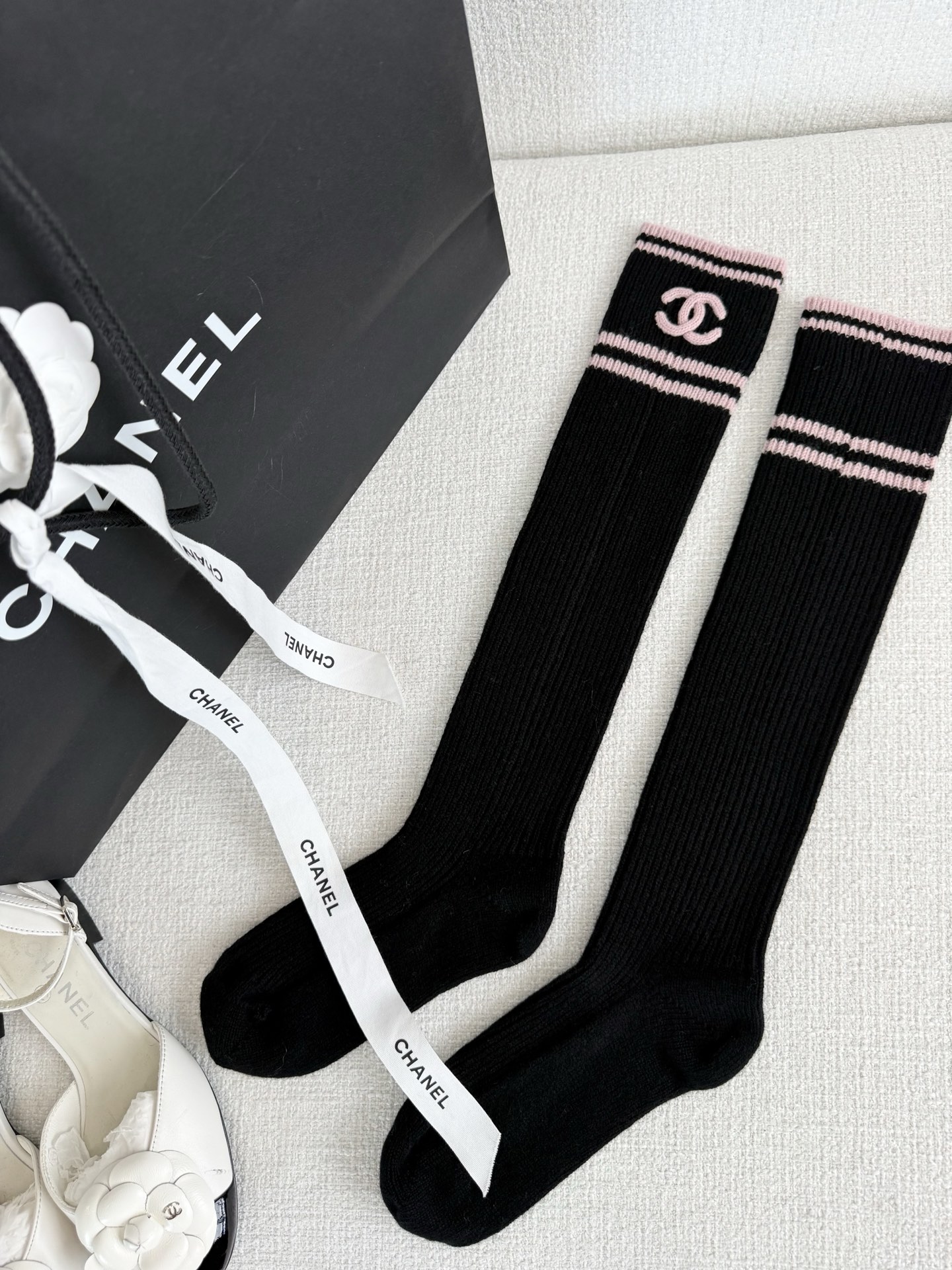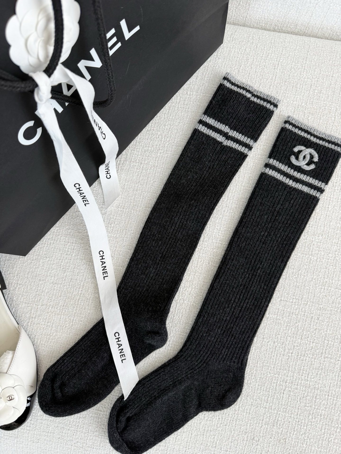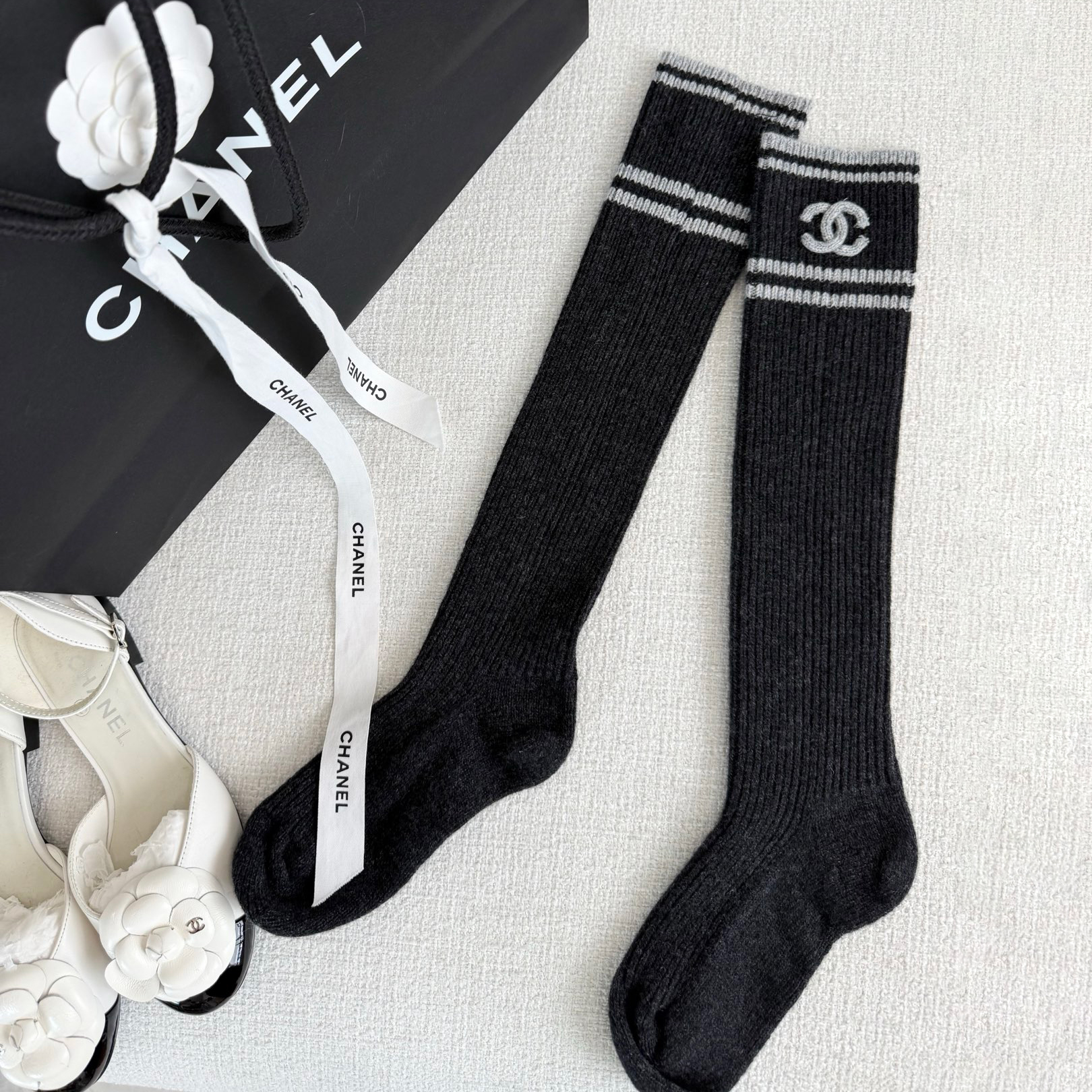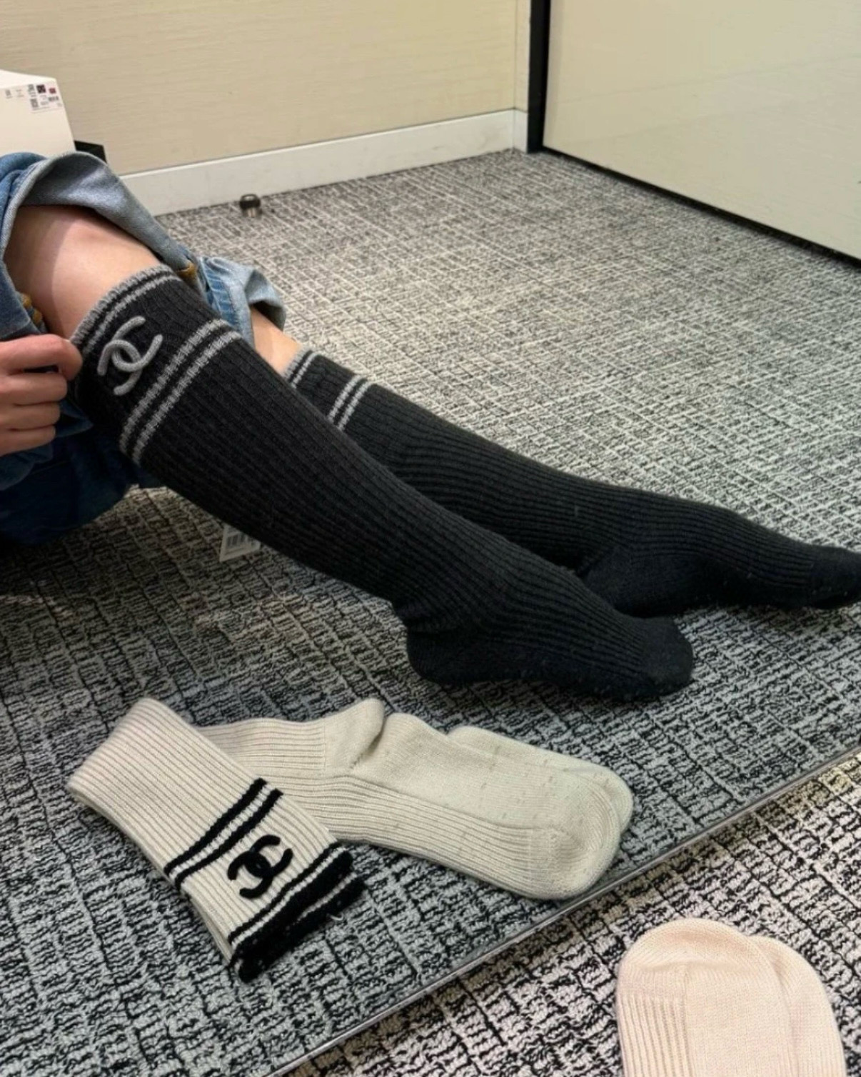 NIGO Chanel Women's Spring/fall Fashion Casual Solid Color Double C Cashmere Knee High Socks Accessories #nigo78624