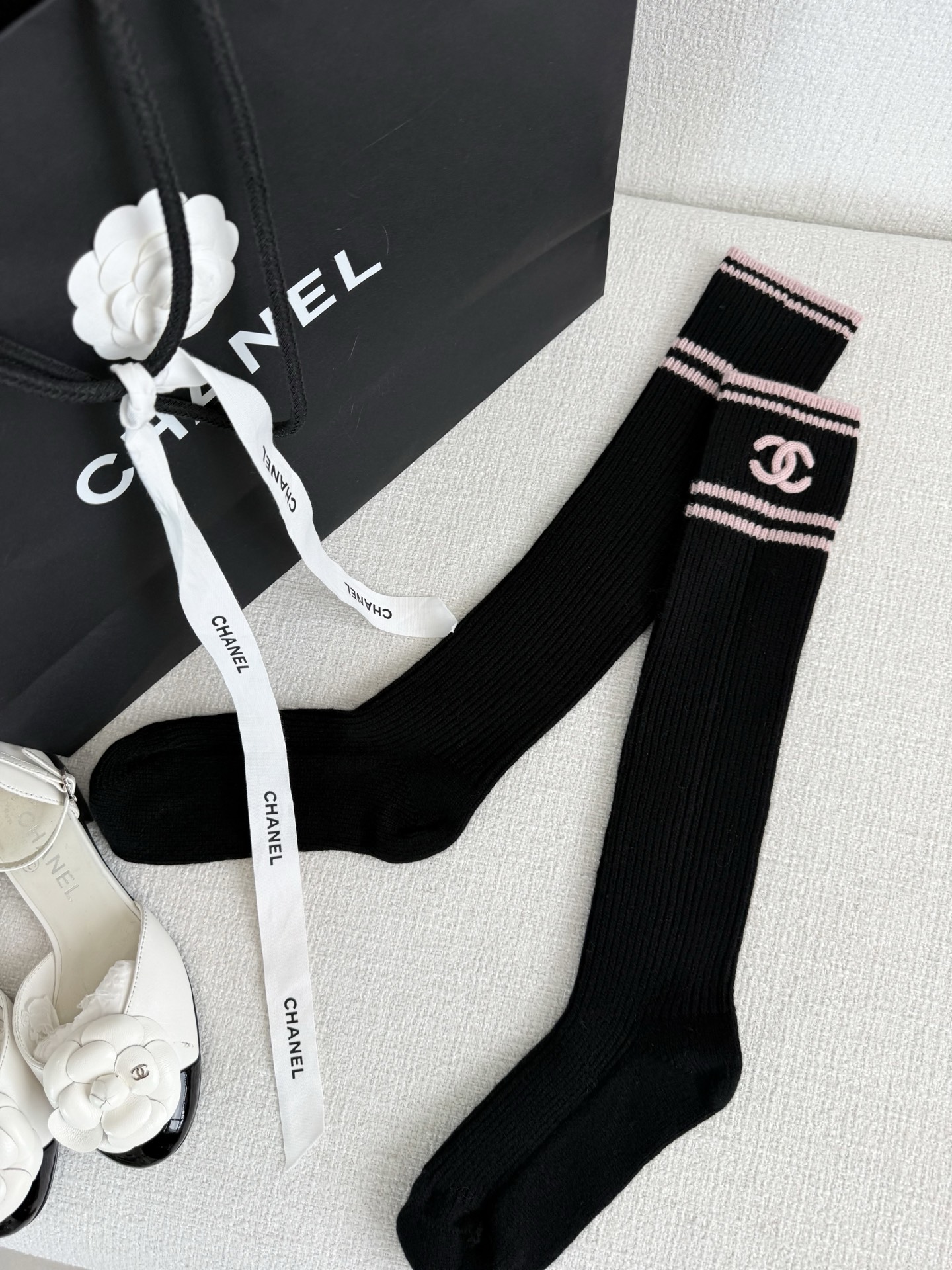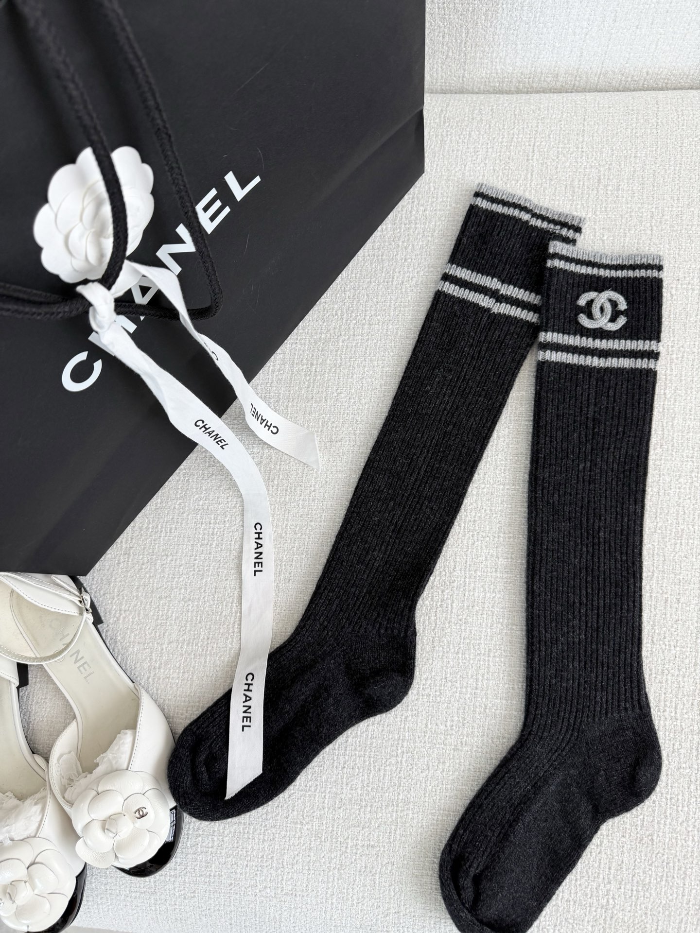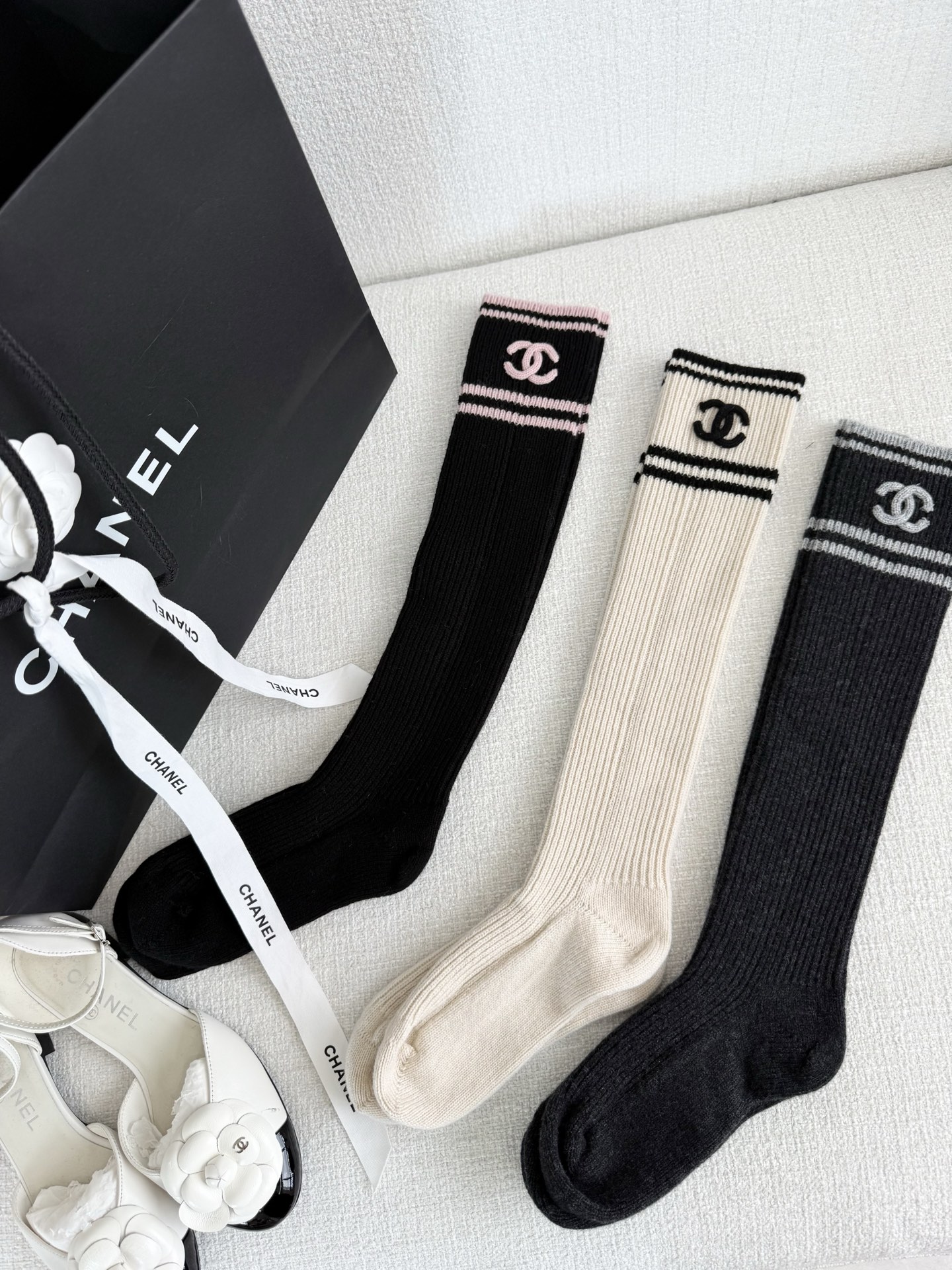 NIGO Chanel Women's Spring/fall Fashion Casual Solid Color Double C Cashmere Knee High Socks Accessories #nigo78624