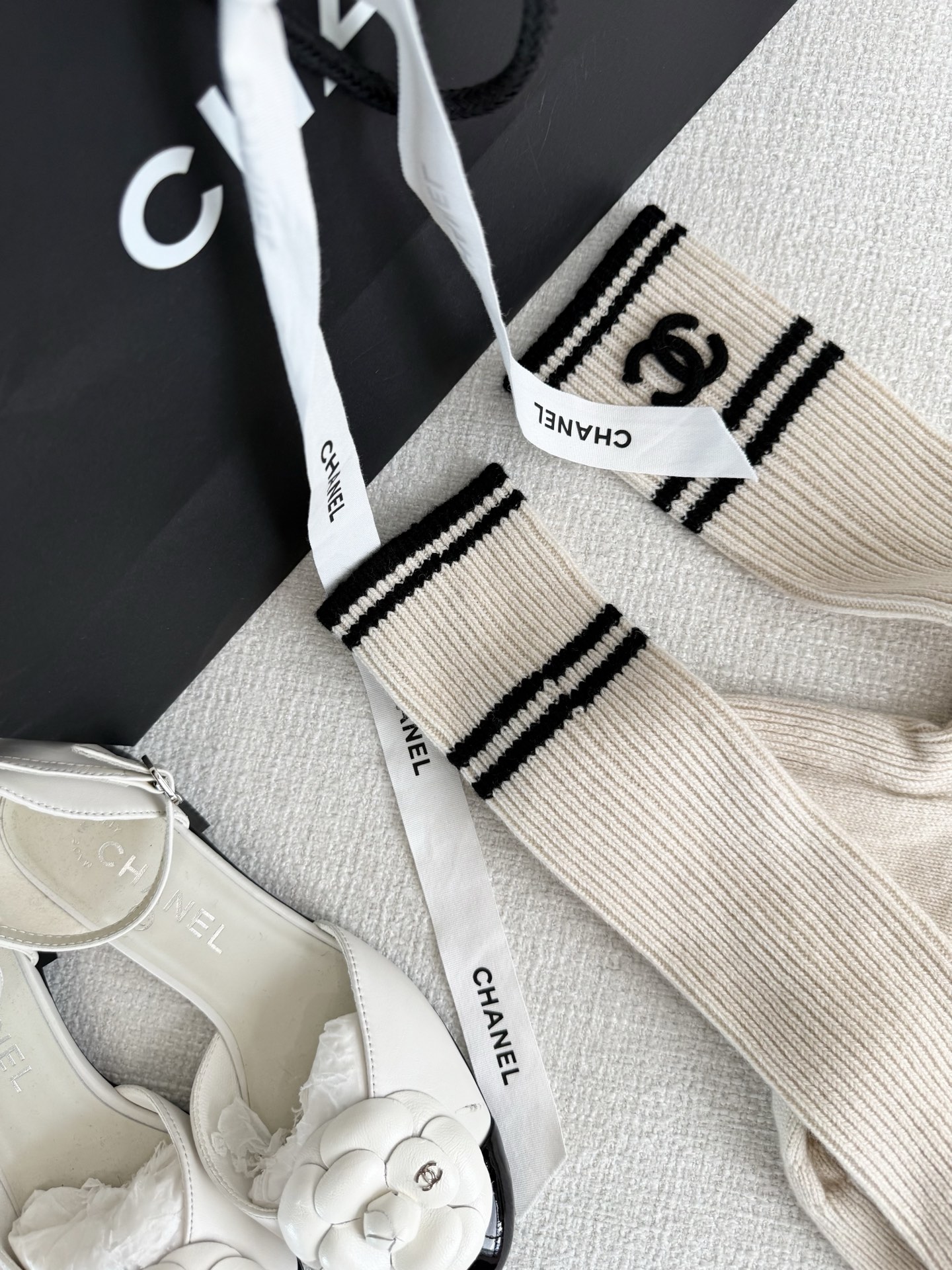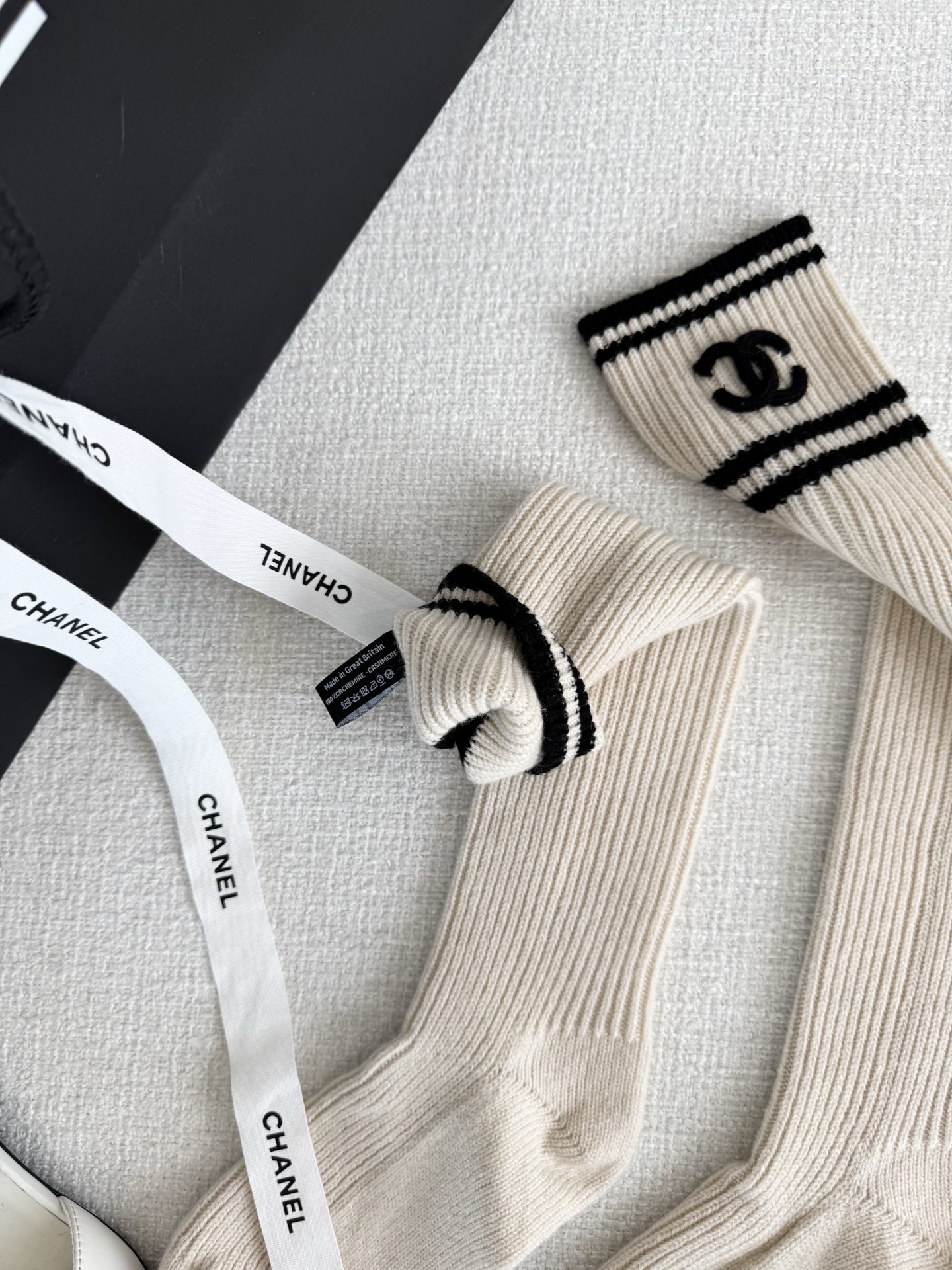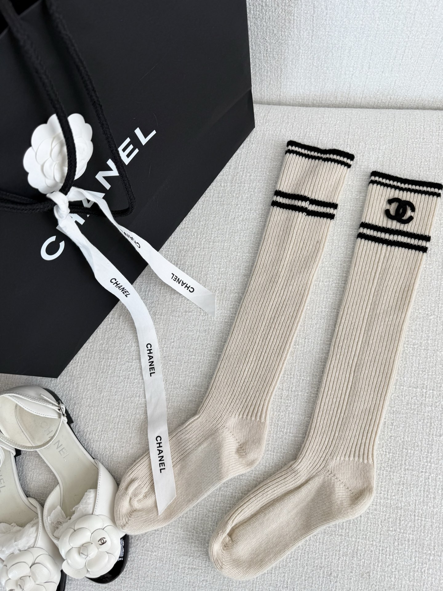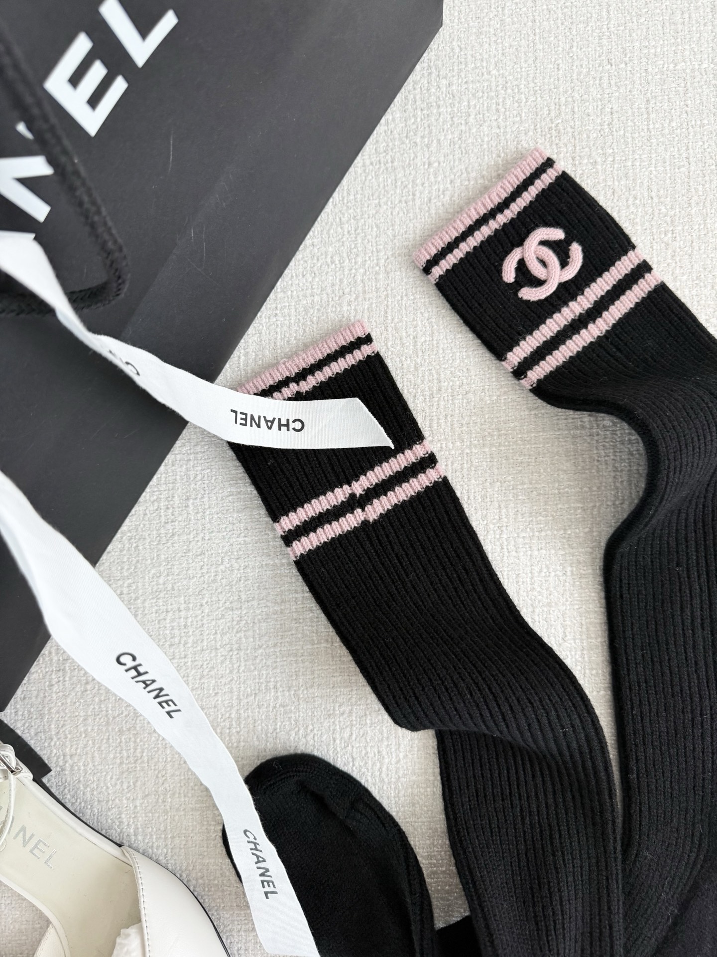 NIGO Chanel Women's Spring/fall Fashion Casual Solid Color Double C Cashmere Knee High Socks Accessories #nigo78624