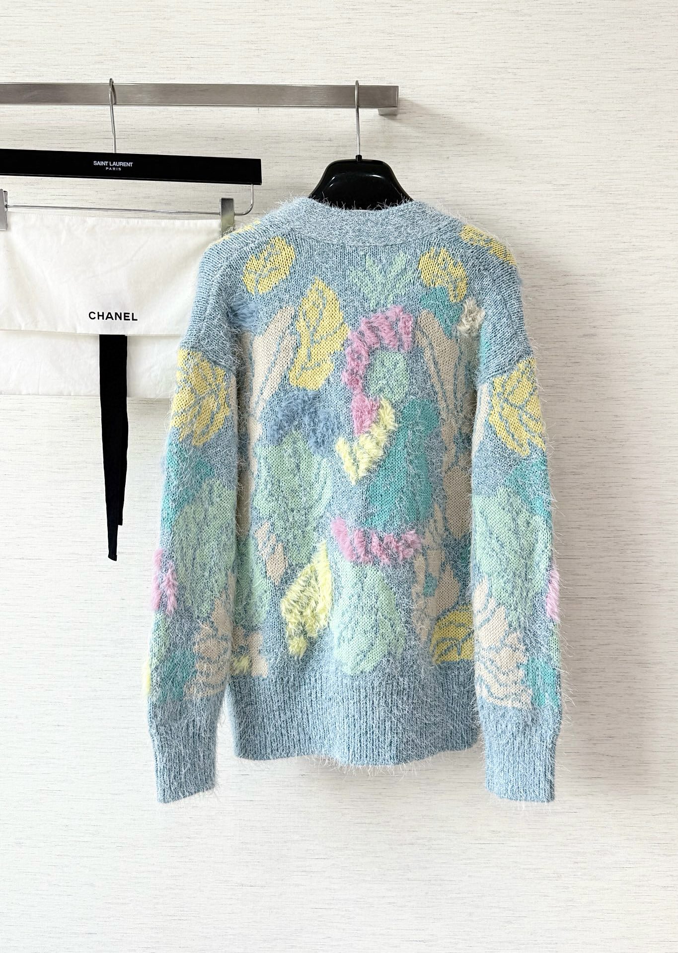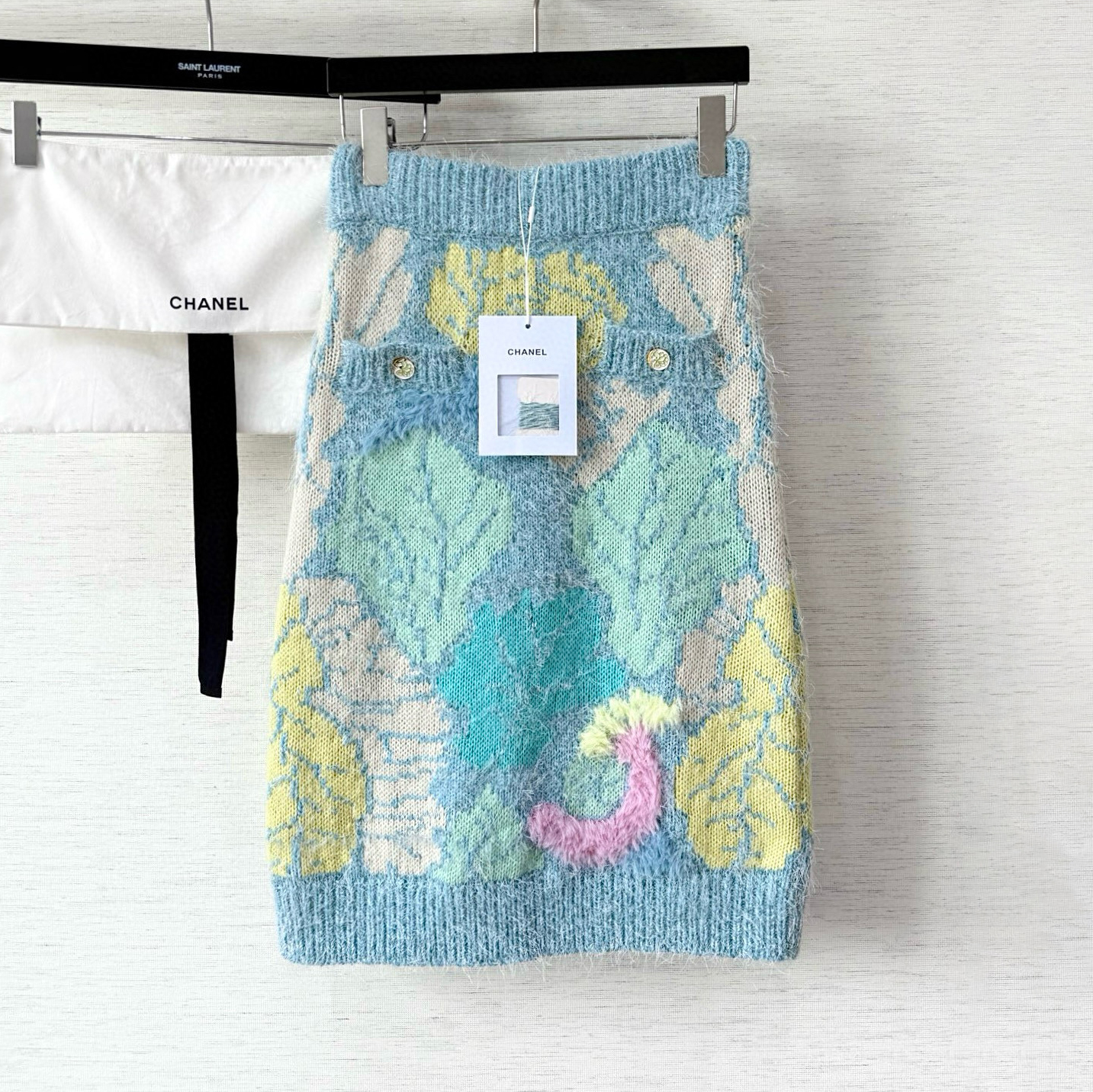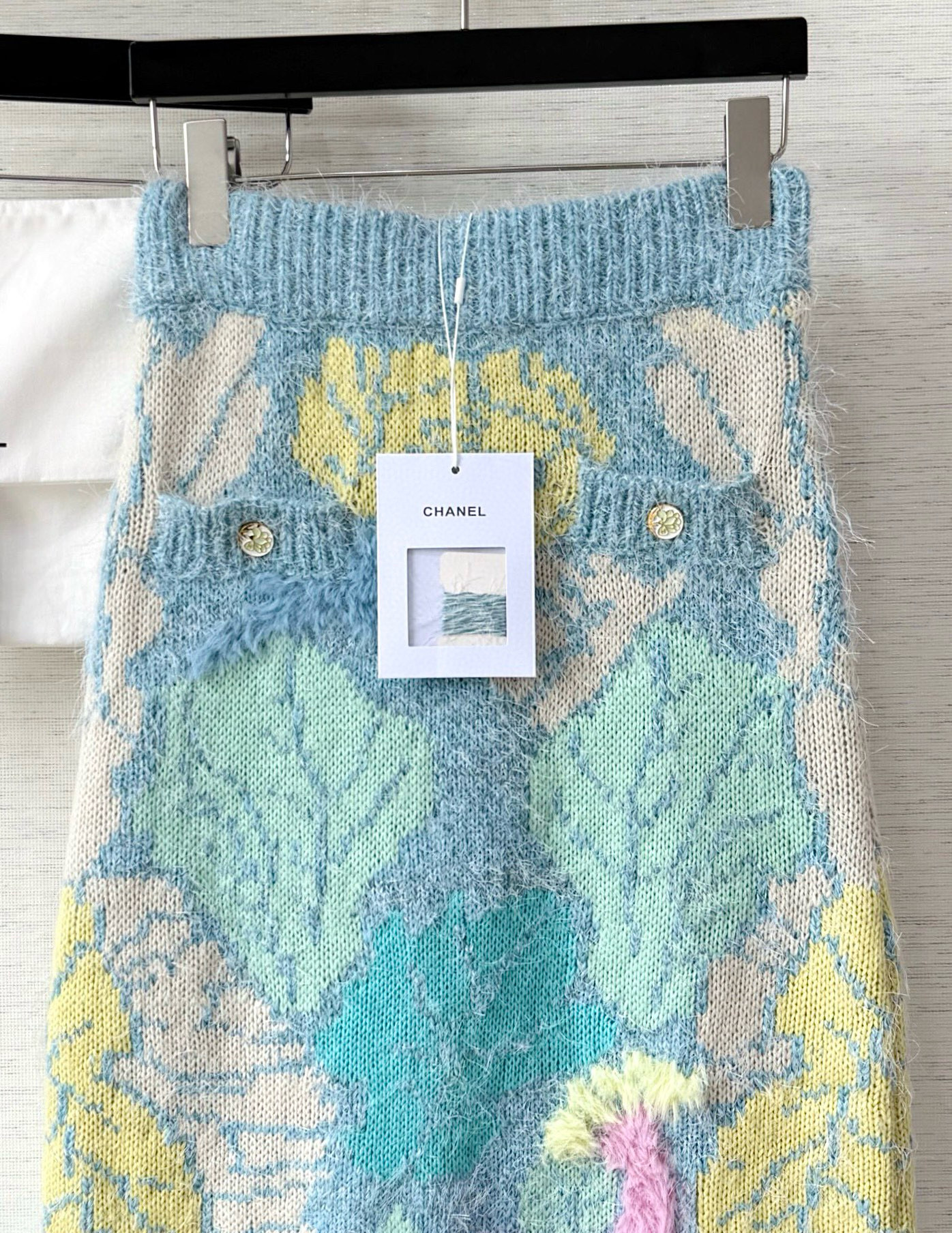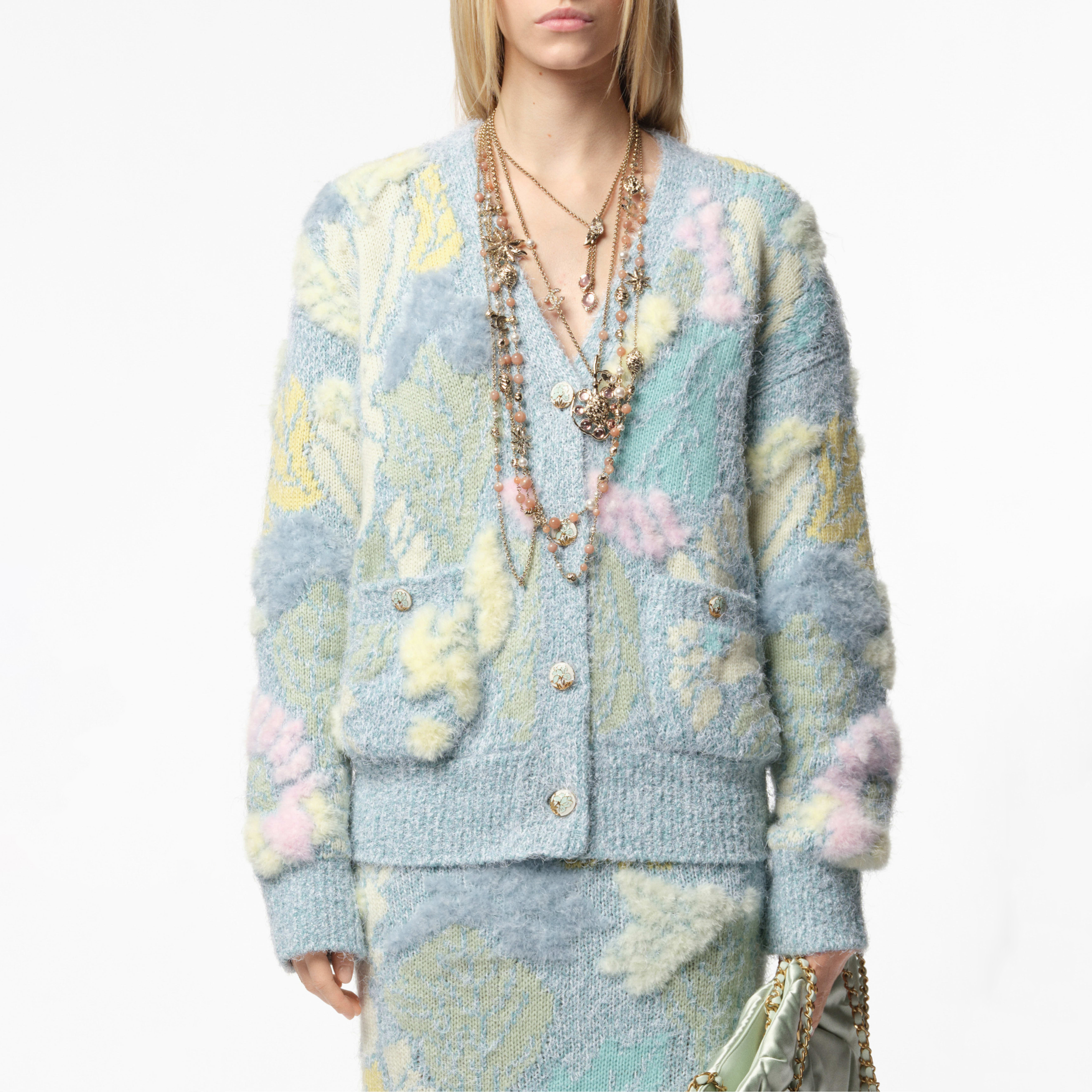 NIGO Chanel Women's Spring/Fall Fashion Classic Single Breasted High End Handmade Pure Wool Macaron Color Block Feather Floral Long Sleeved Cardigan Mid Length Casual Long Skirt Suit Set #nigo78392