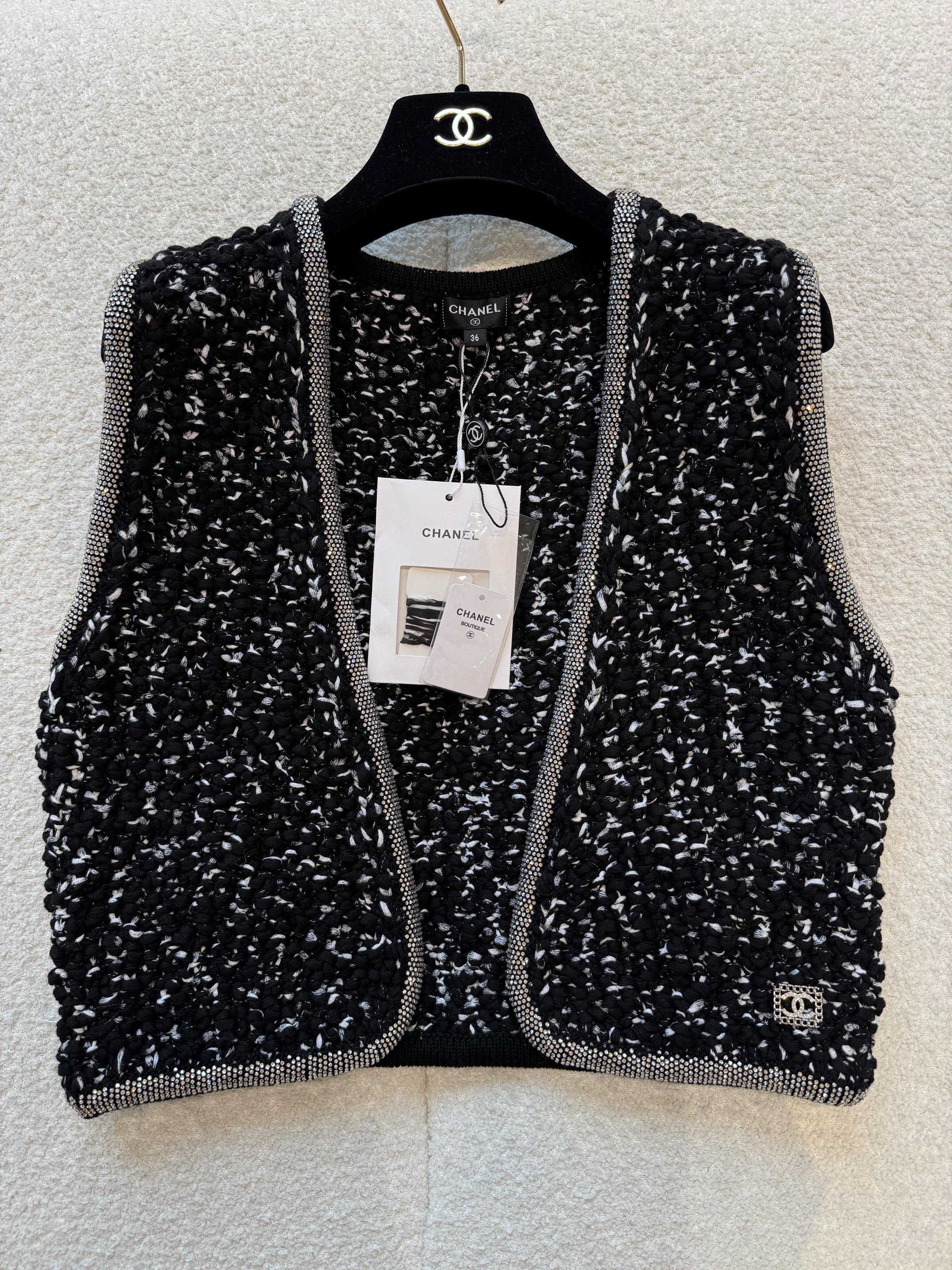 NIGO Chanel Women's Spring/Fall Knit Rhinestone-Embellished Solid-Color Cotton Sleeveless Cardigan Vest Ngvp #nigo2396