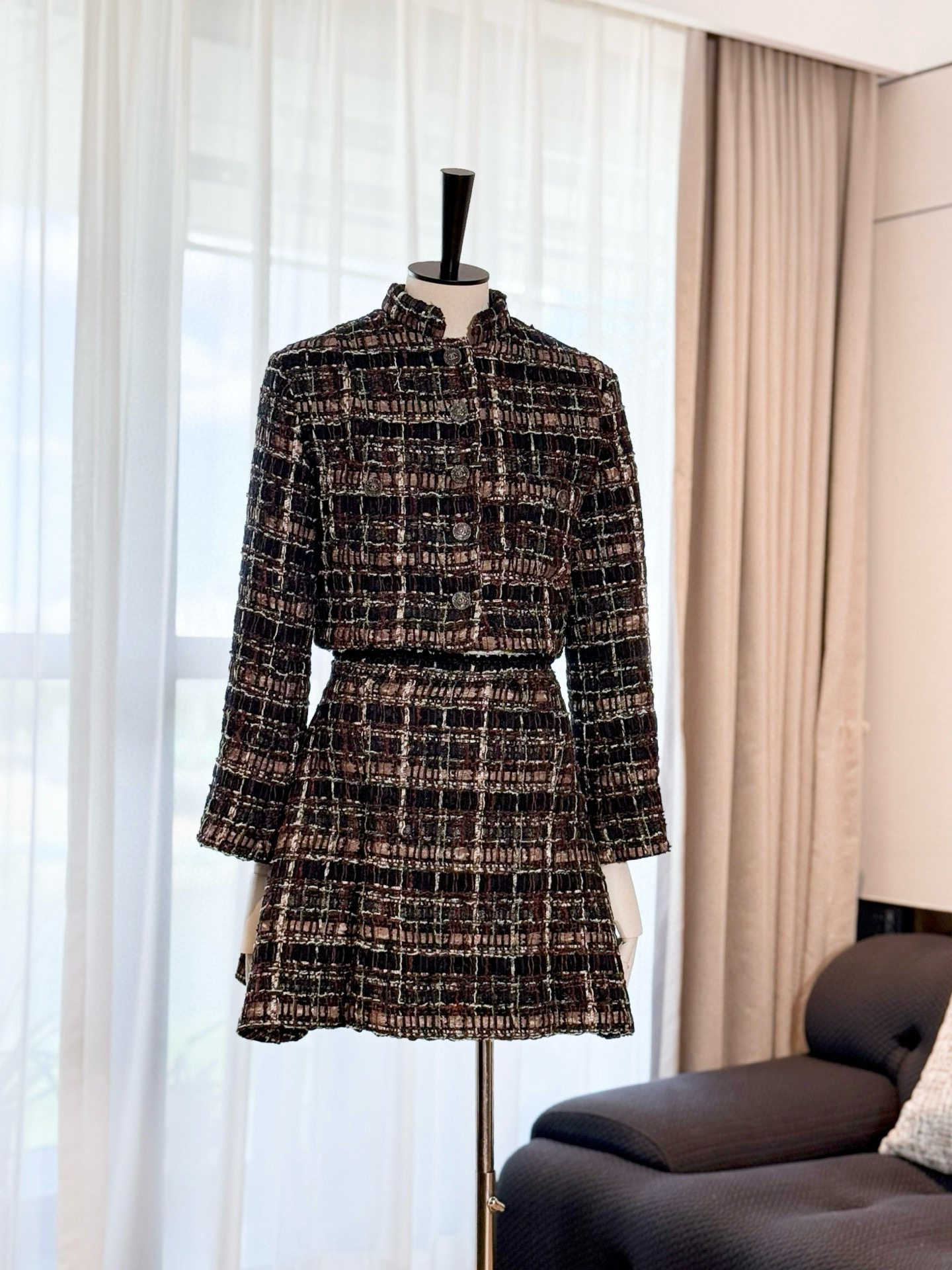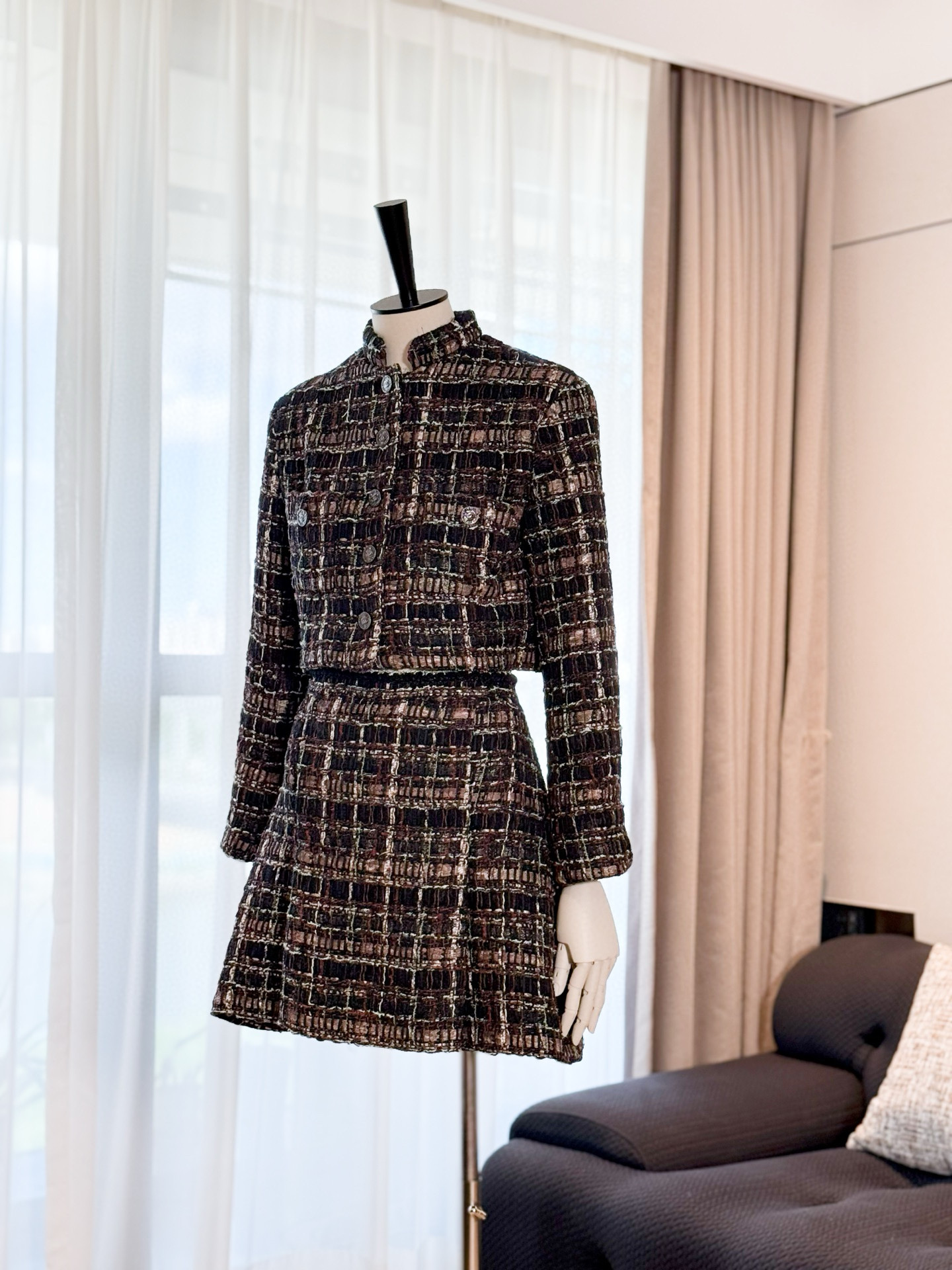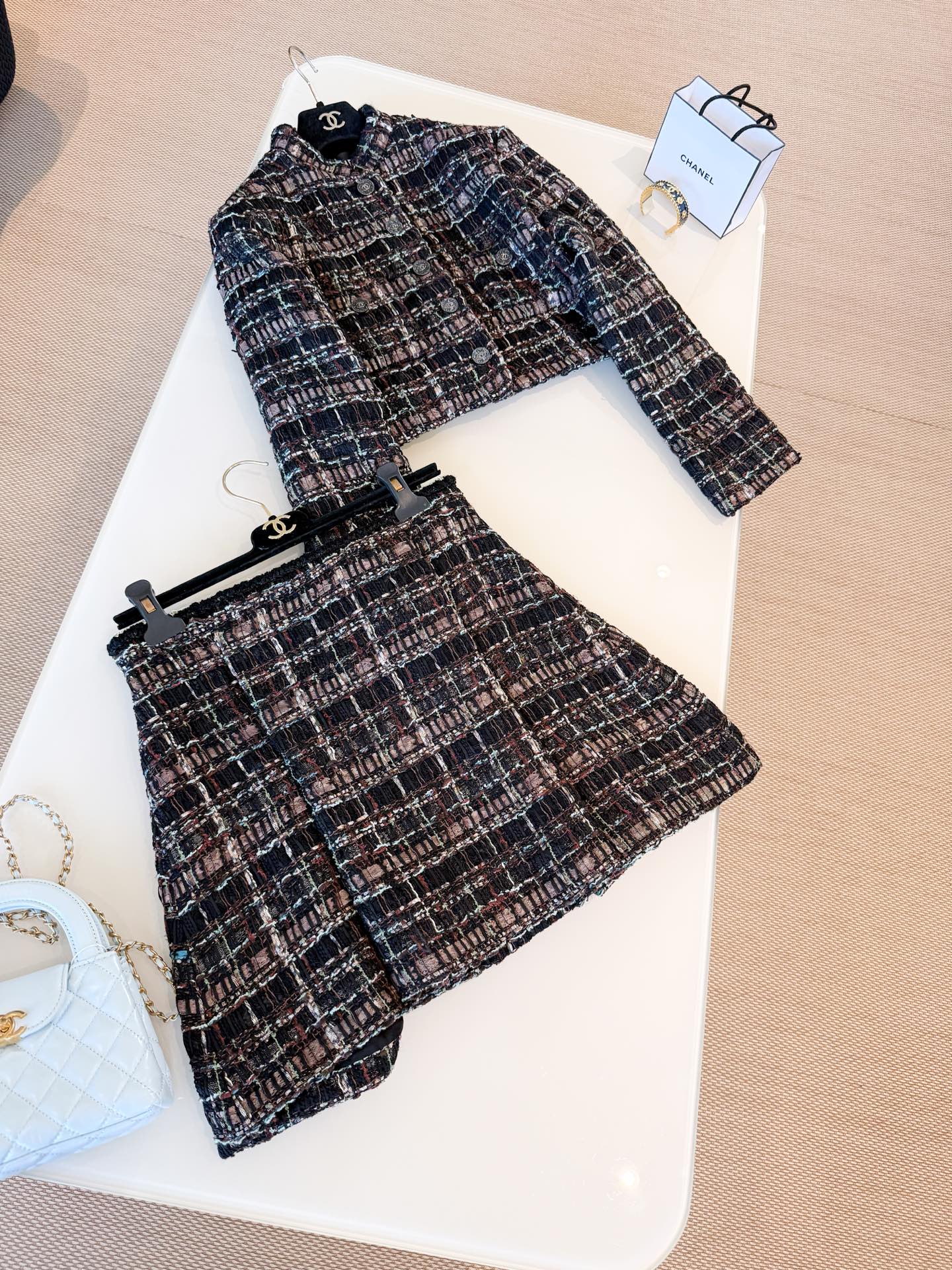 NIGO Chanel Women's Spring/Fall Vintage Tweed Stand Collar Single-Breasted Casual Short-Sleeve Jacket High-Street Skirt Ngvp #nigo2343