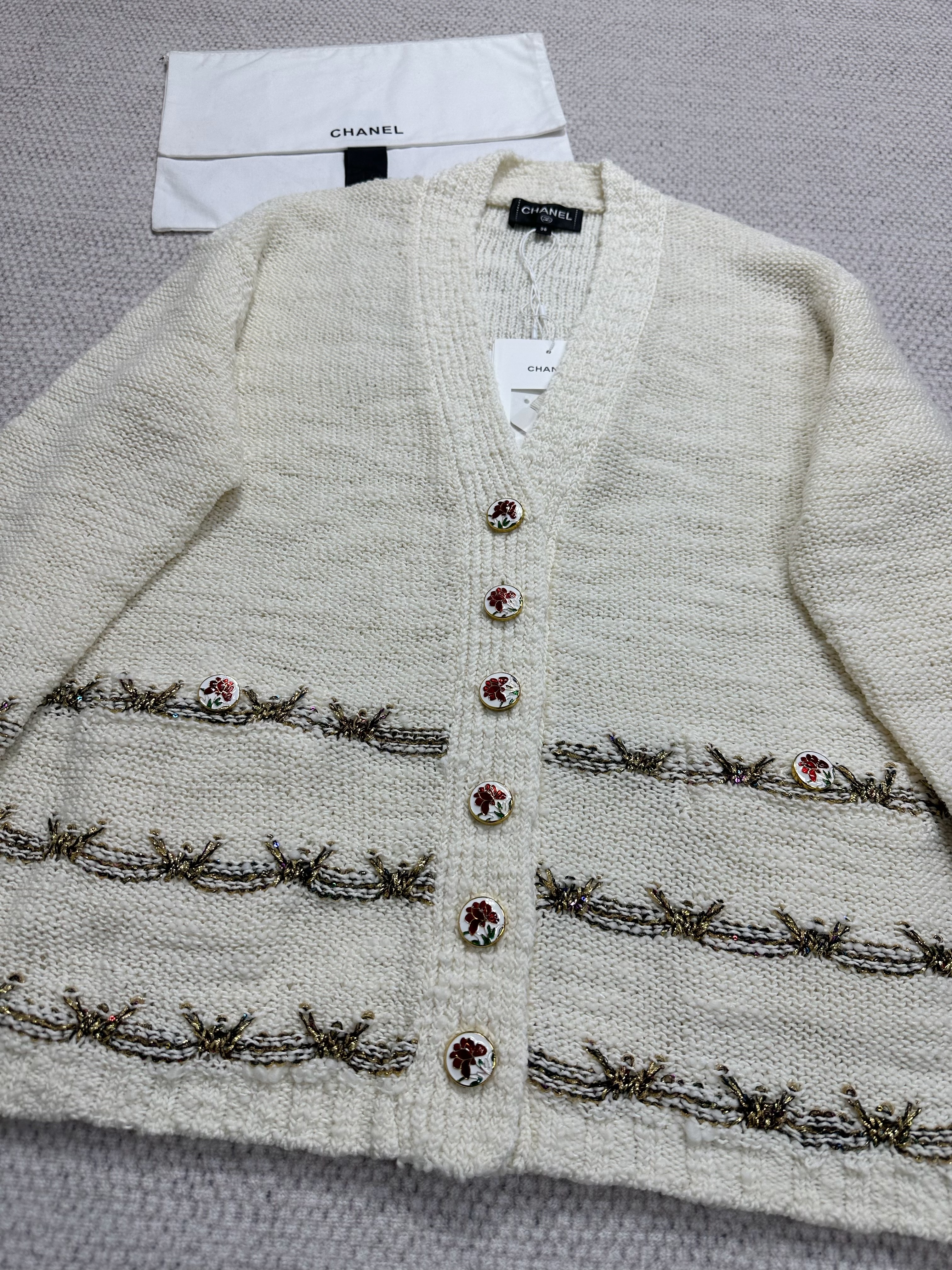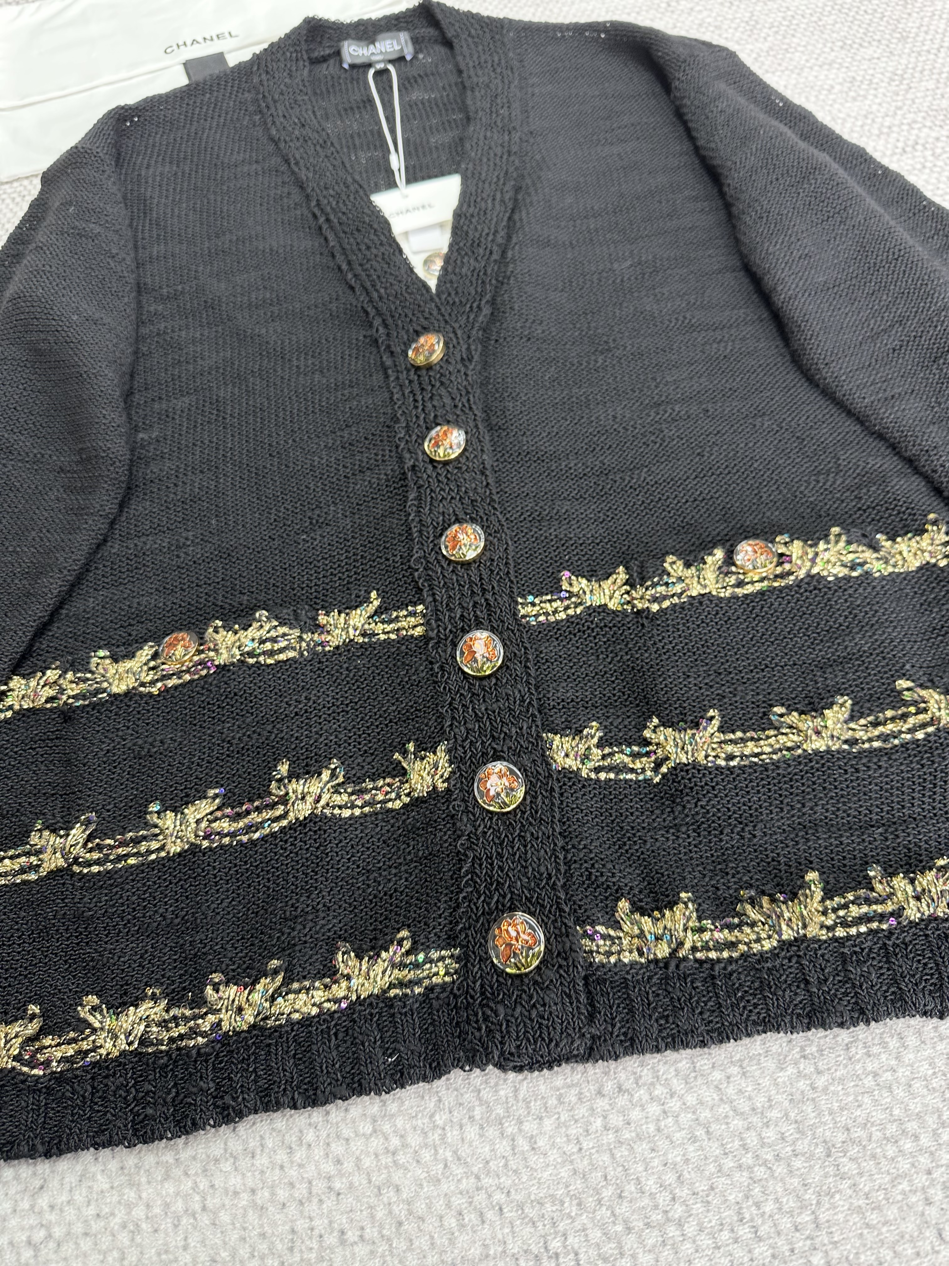 NIGO Chanel Women's Spring/Fall Vintage V-Neck Single-Breasted Gold-Thread Knit Wool-Blend Cardigan Ngvp #nigo2562