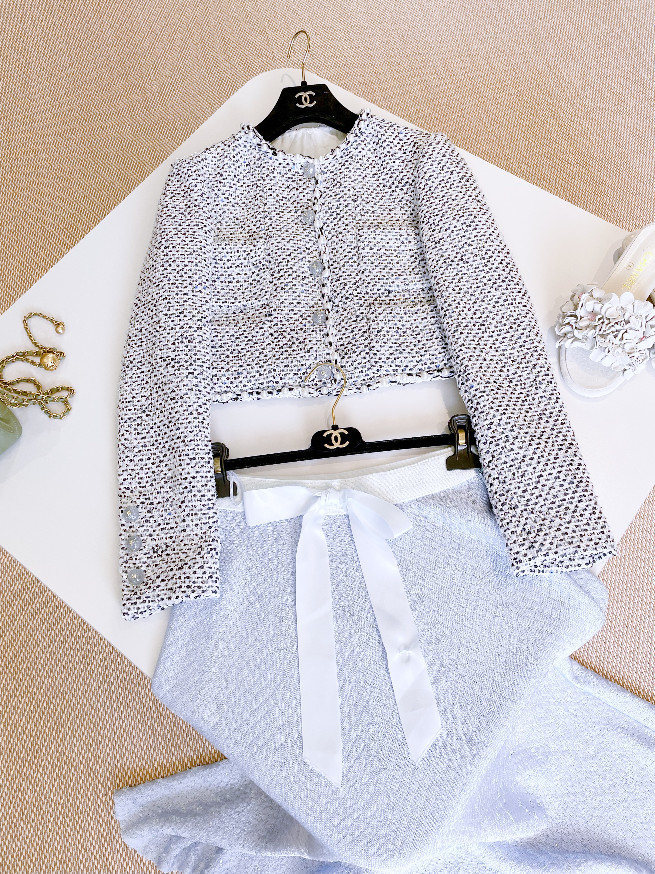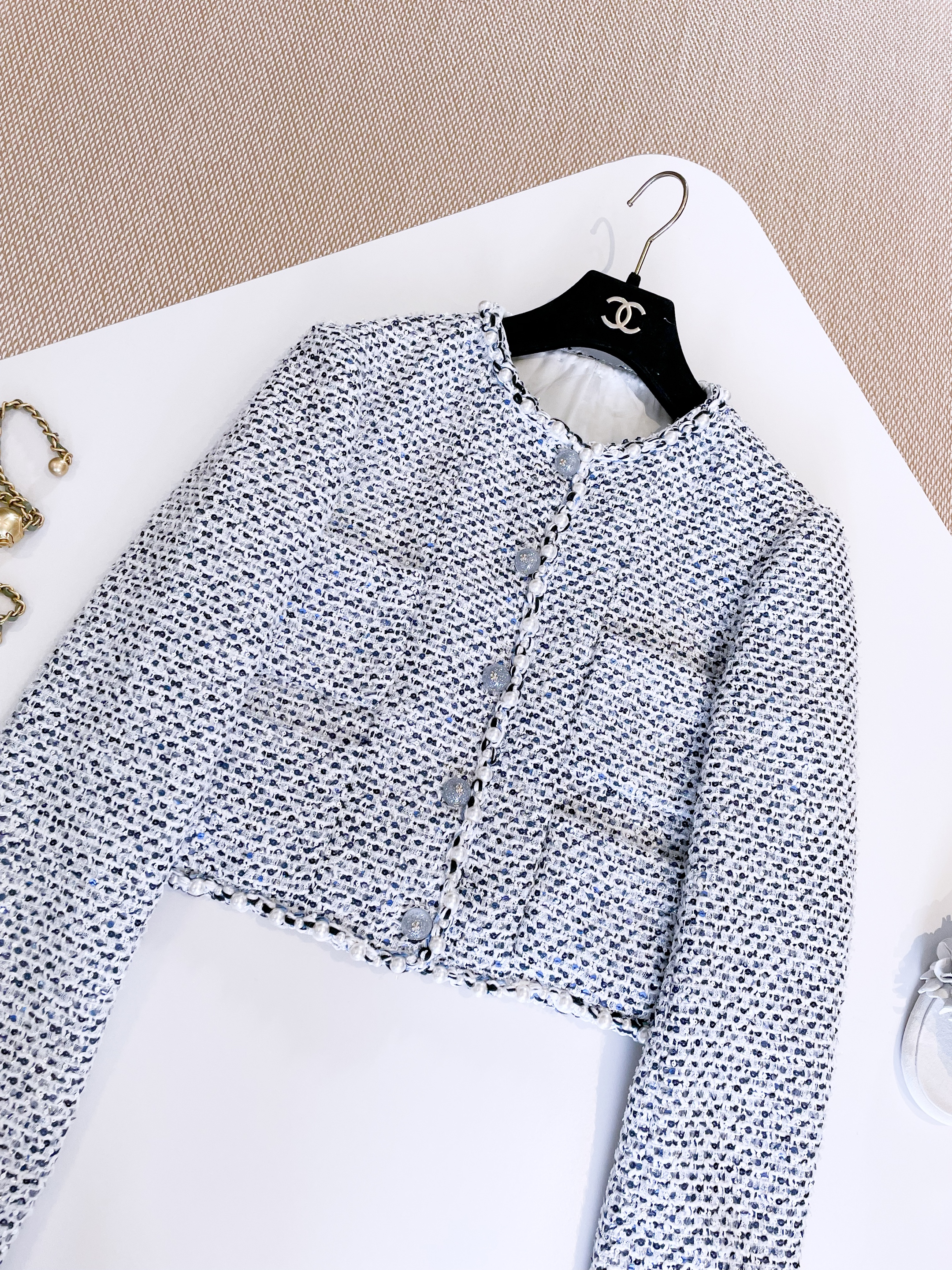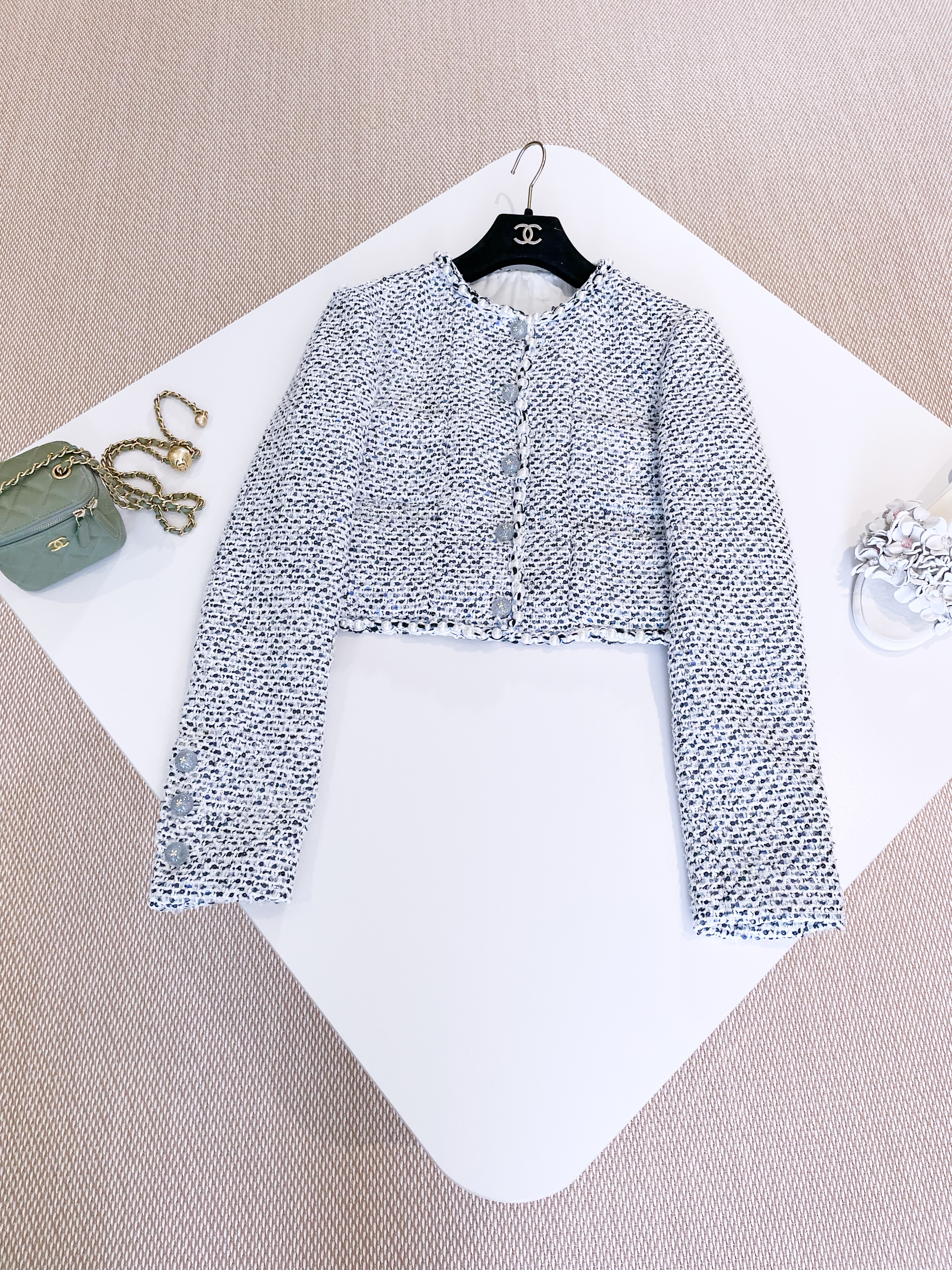 NIGO Chanel Women's Spring/Summer Shiny Twill Solid Color Tweed Pearl Button Round Collar Single Breasted Short Jacket Ngvp #nigo1458