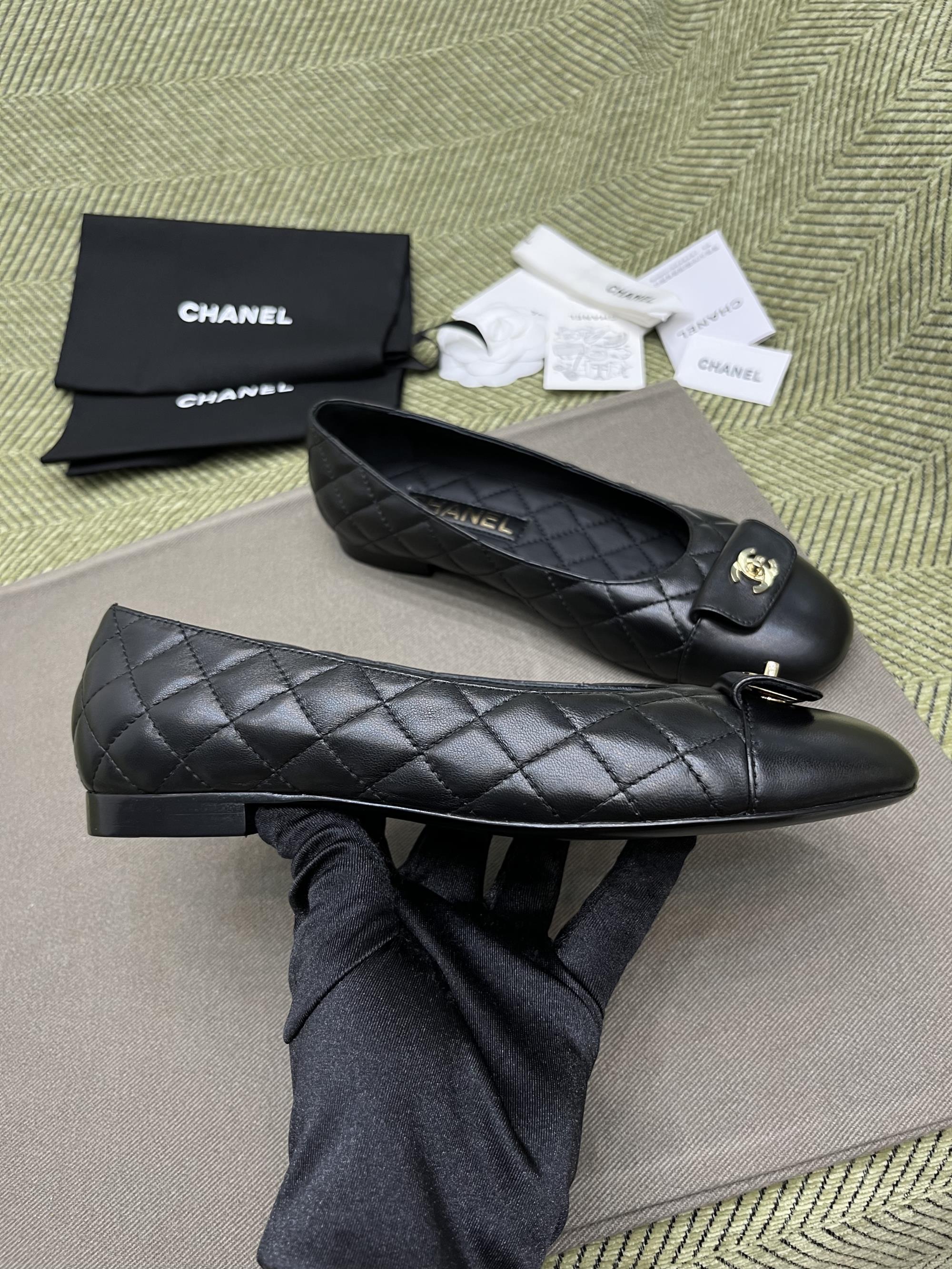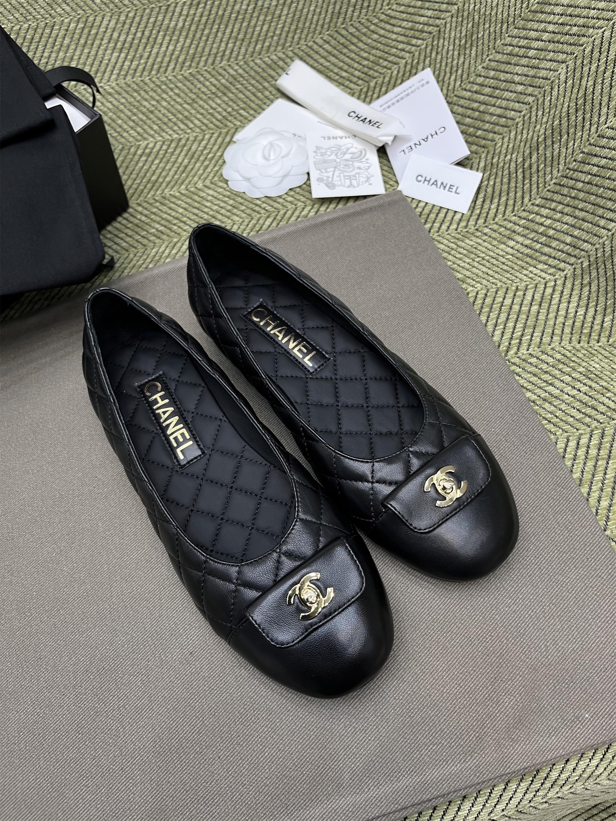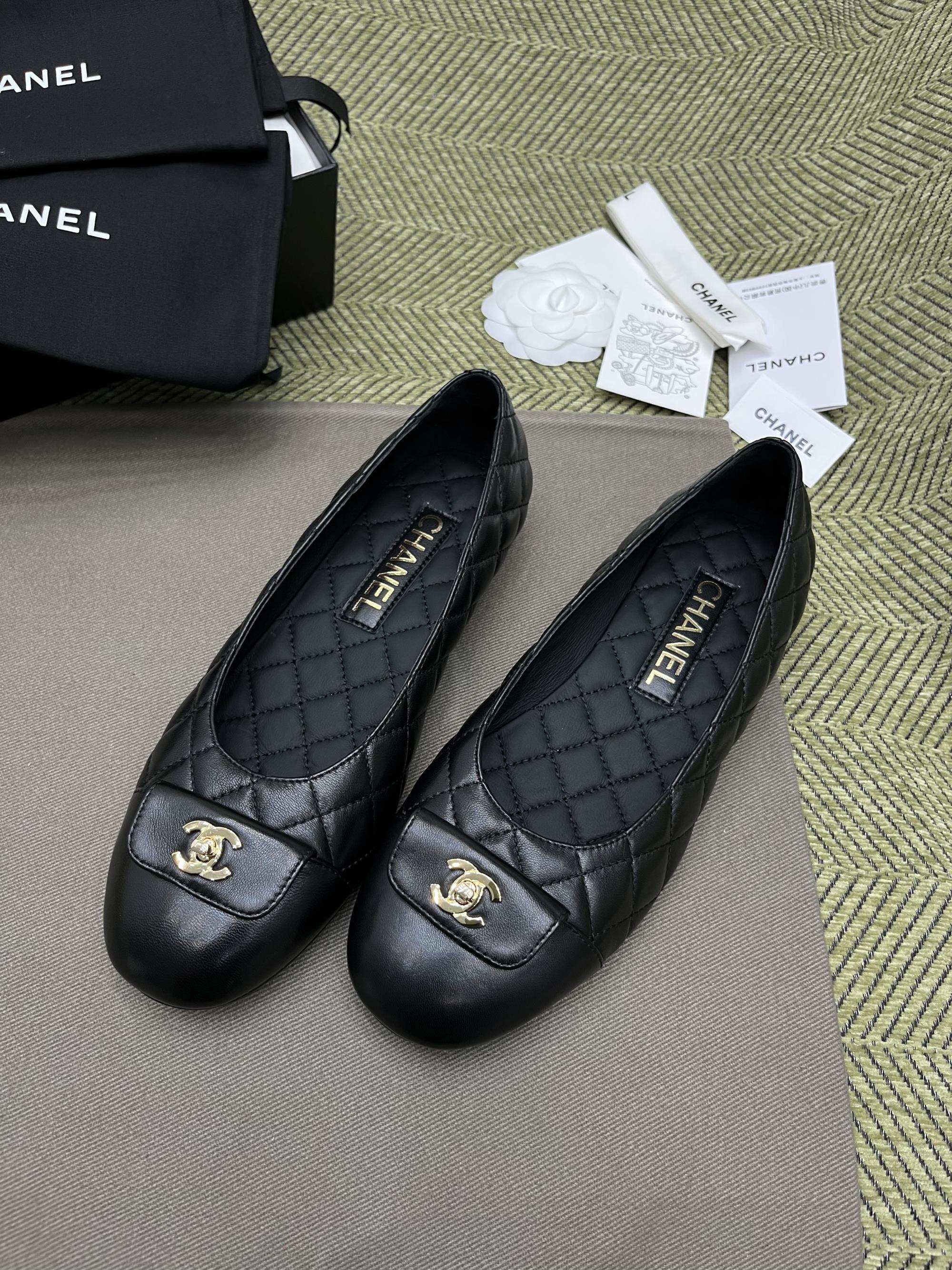 NIGO Chanel Women's Spring/Summer Solid Color Diamond Textured Leather Ballet Shoes #nigo76276