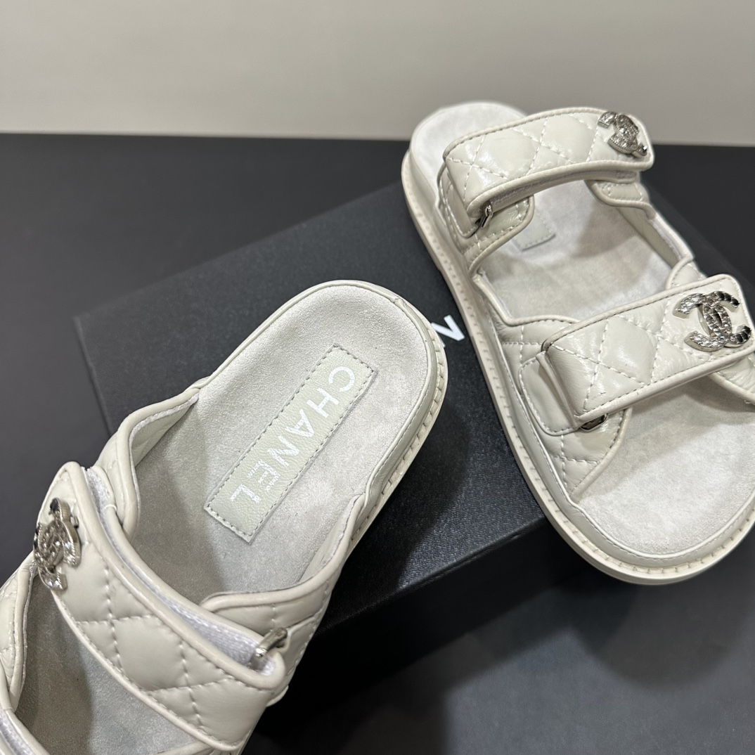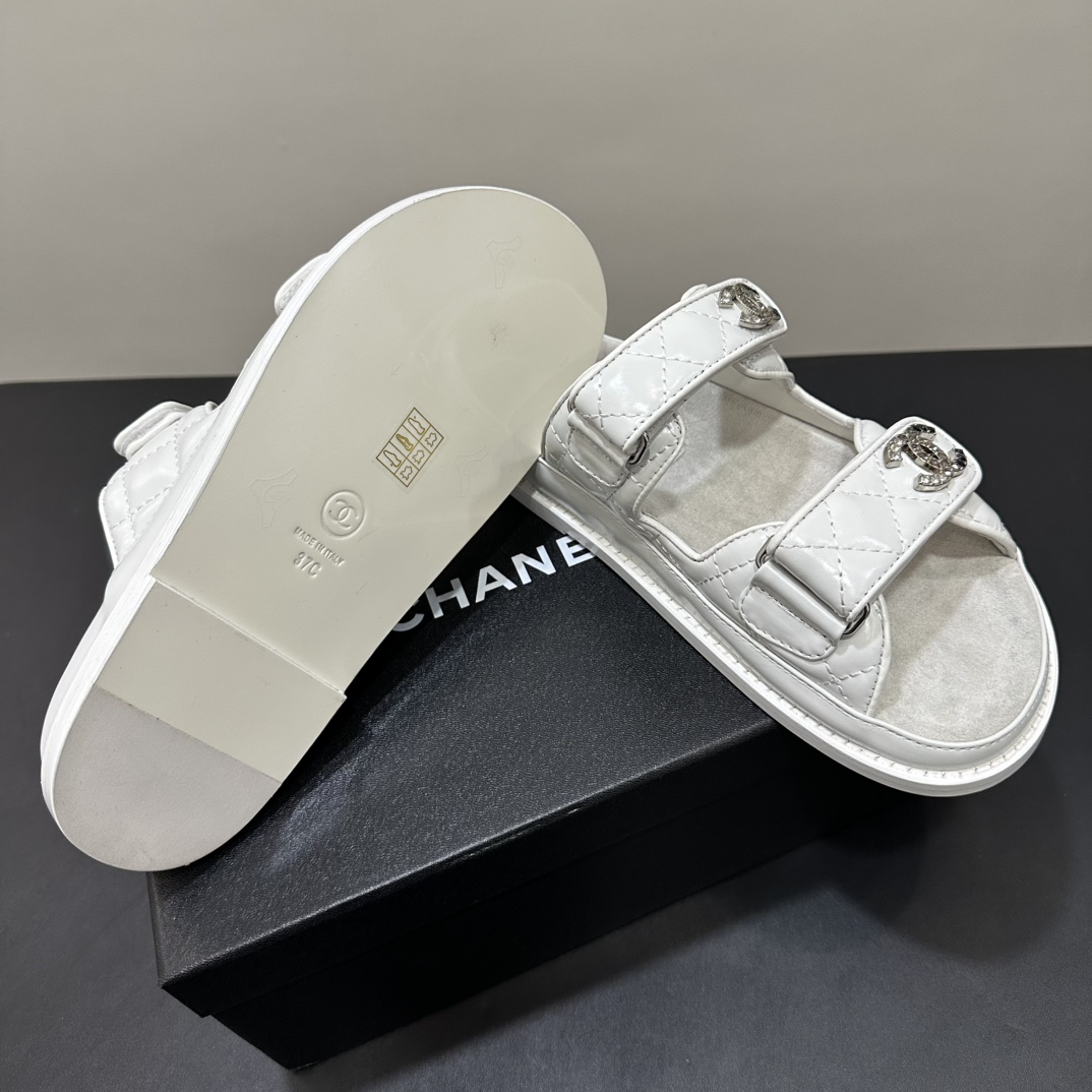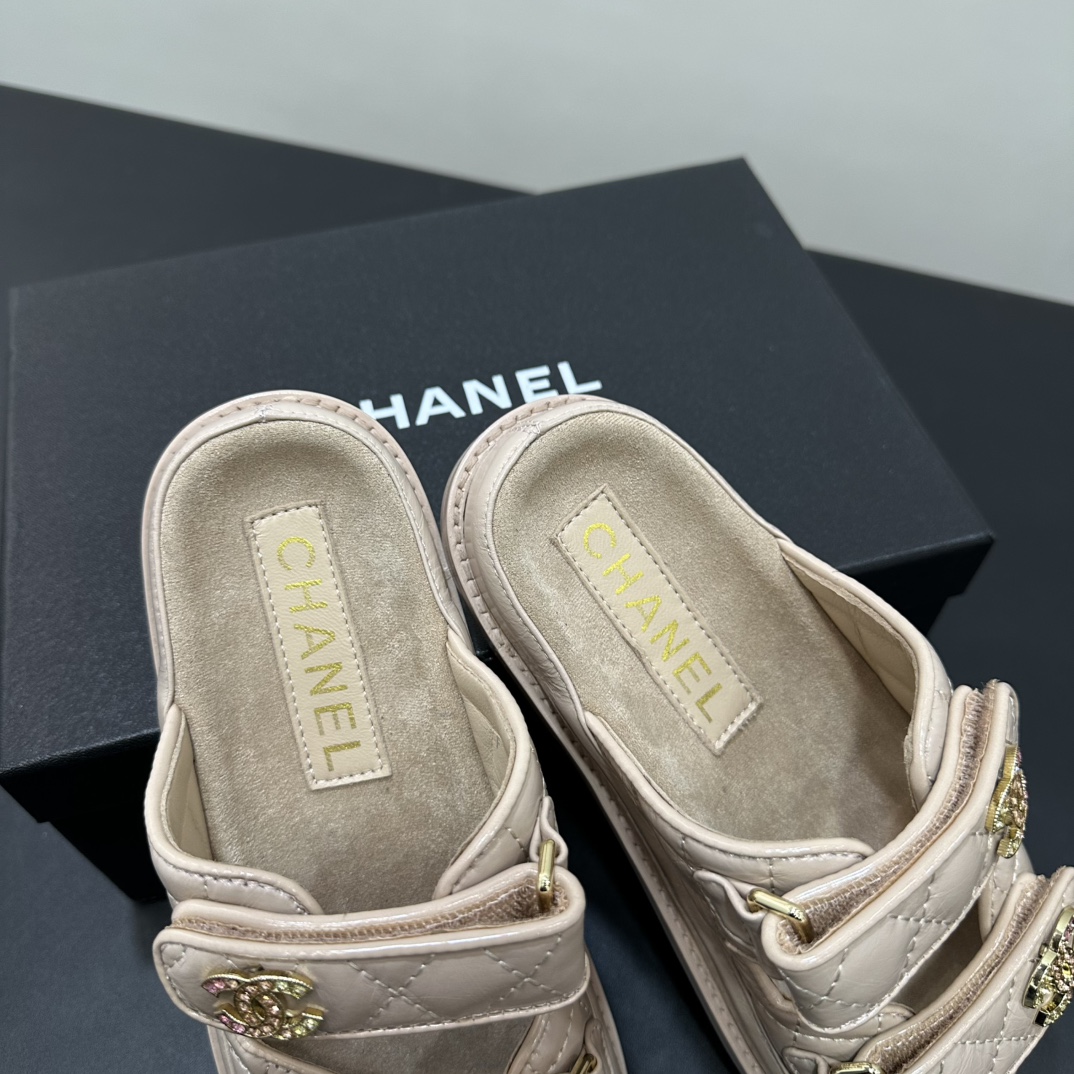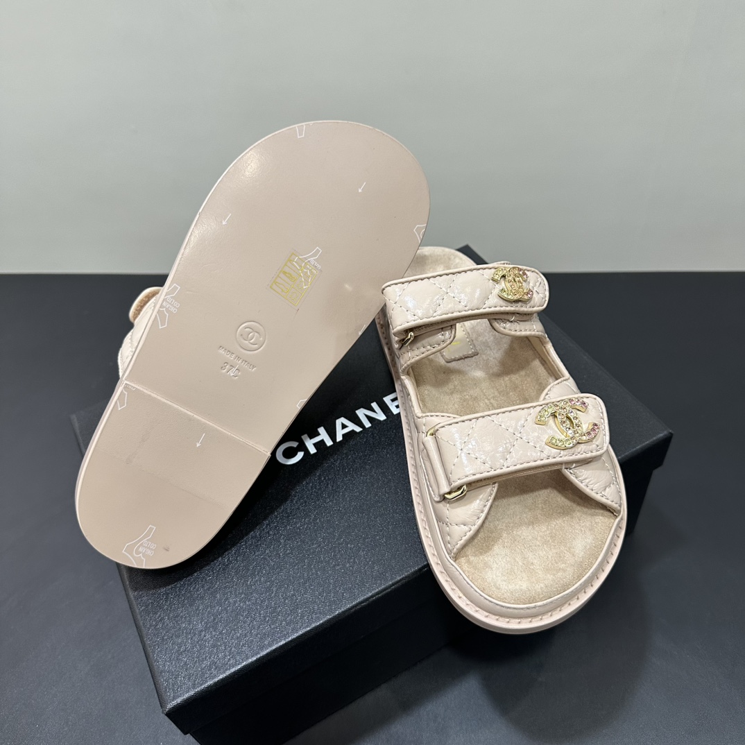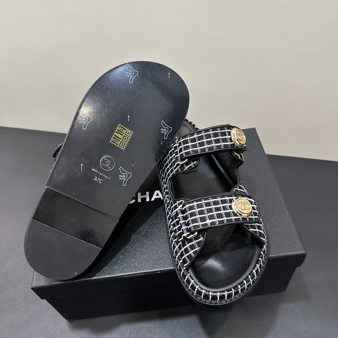 NIGO Chanel Women's Summer Solid Color Leather Round Toe Velcro Sandals Shoes #nigo75837