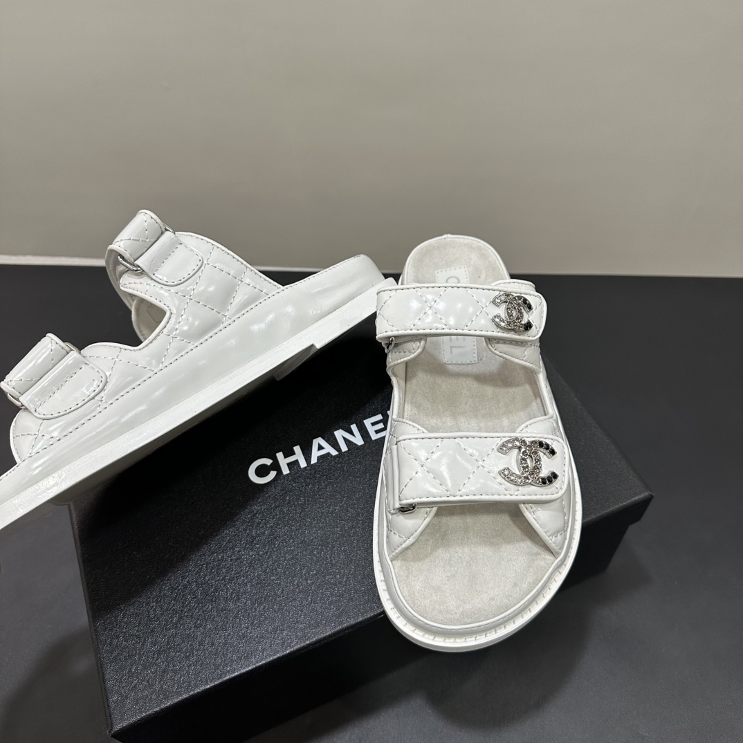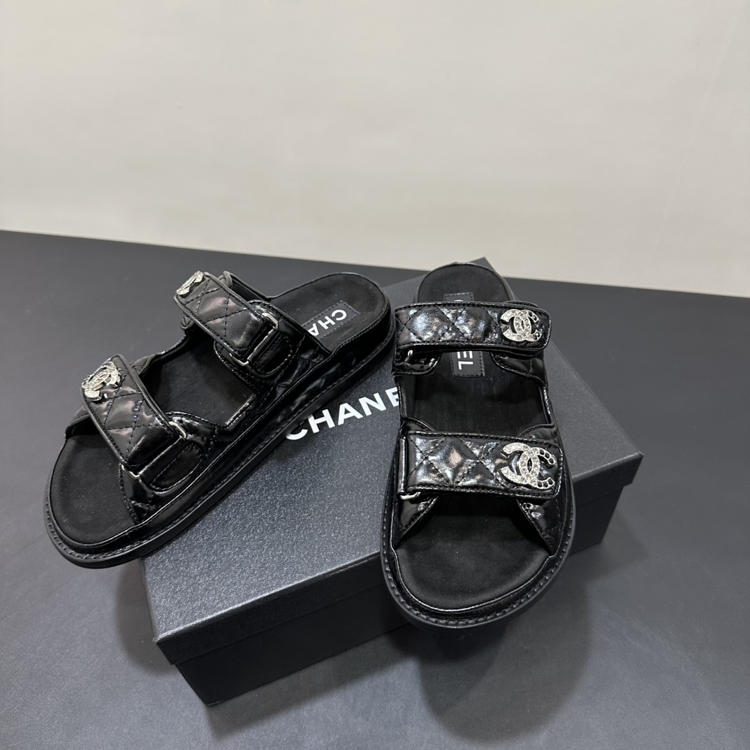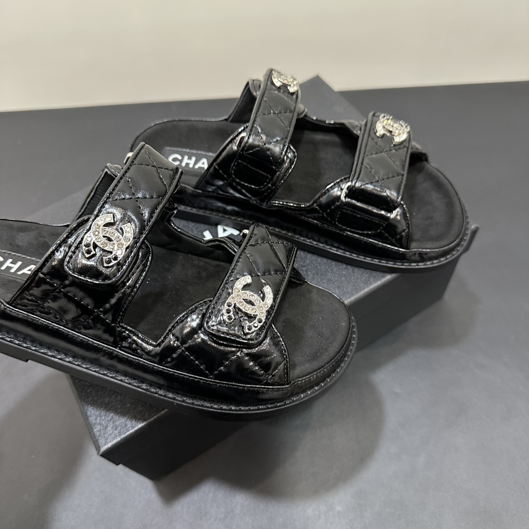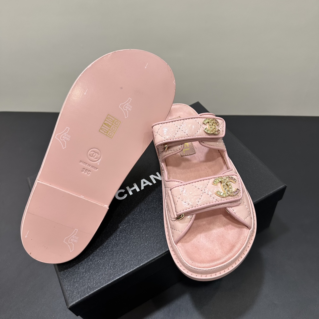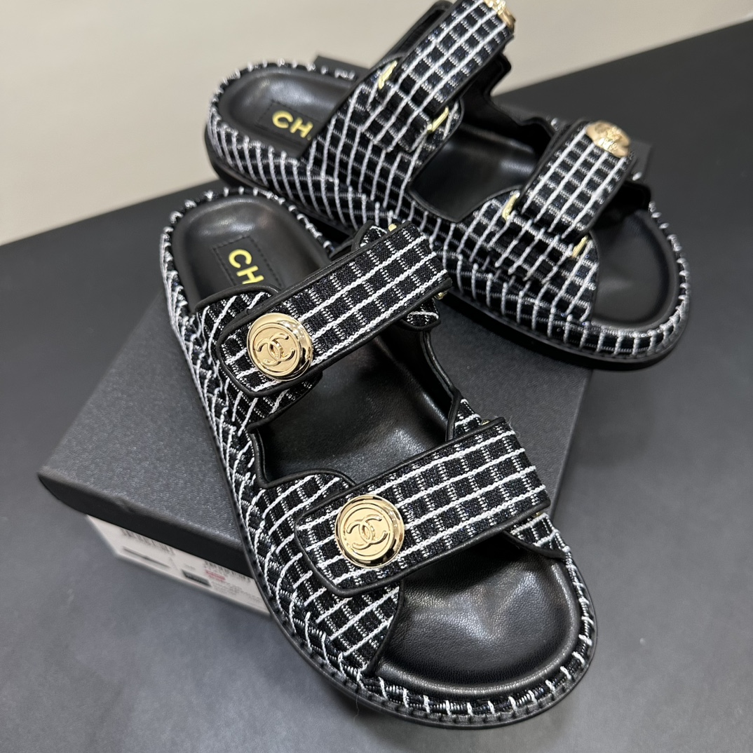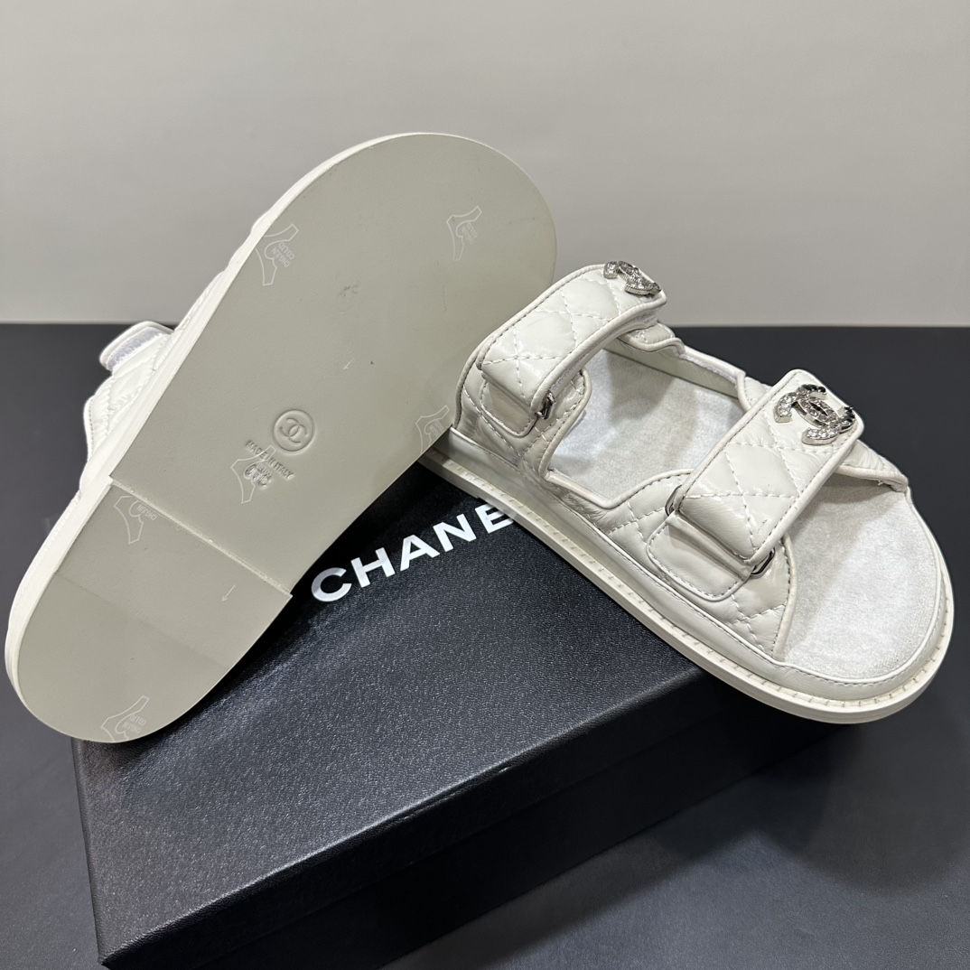 NIGO Chanel Women's Summer Solid Color Leather Round Toe Velcro Sandals Shoes #nigo75837