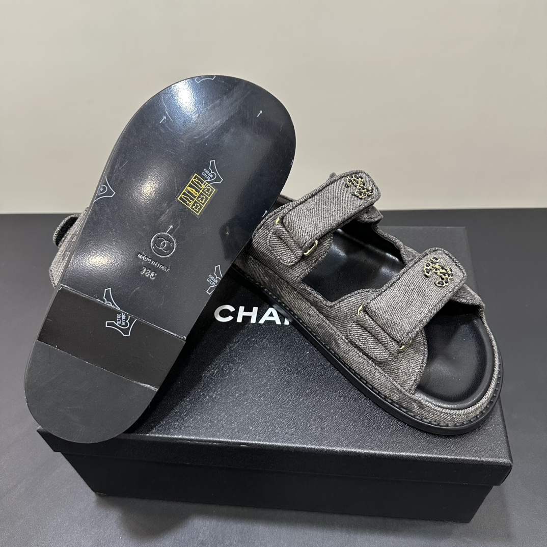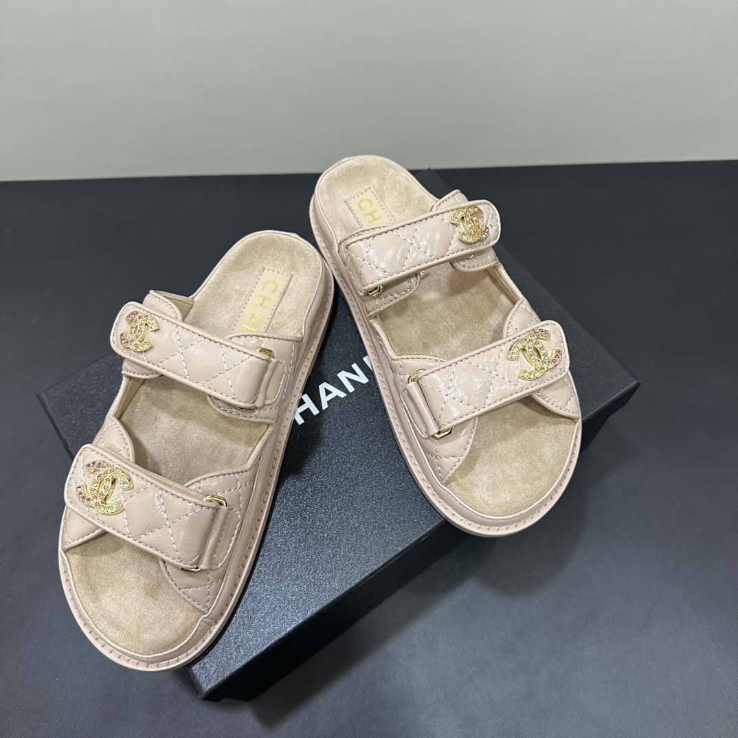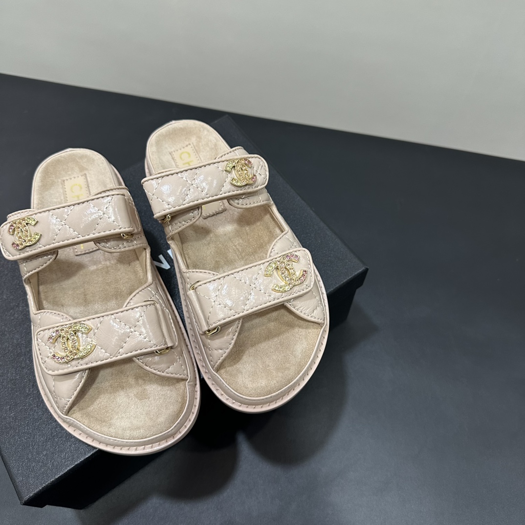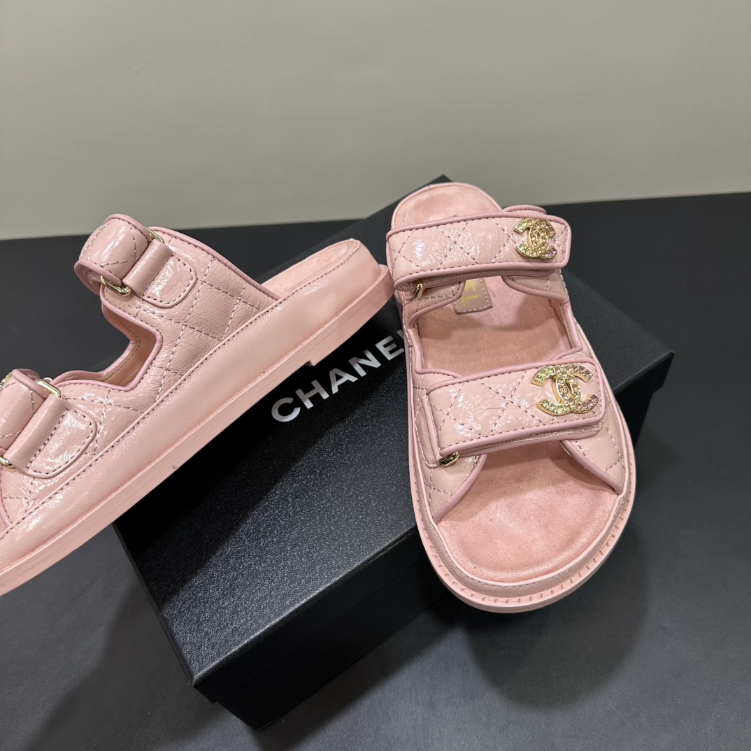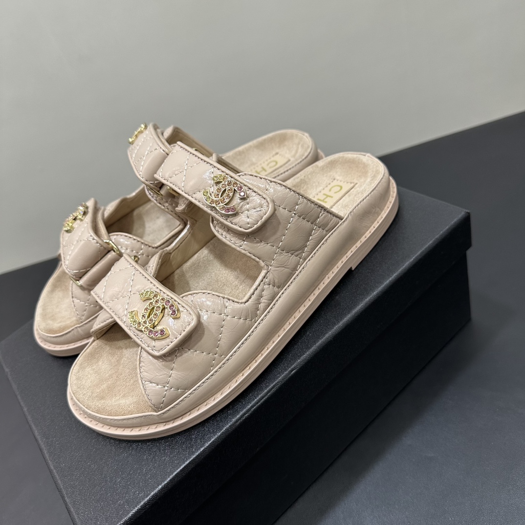 NIGO Chanel Women's Summer Solid Color Leather Round Toe Velcro Sandals Shoes #nigo75837