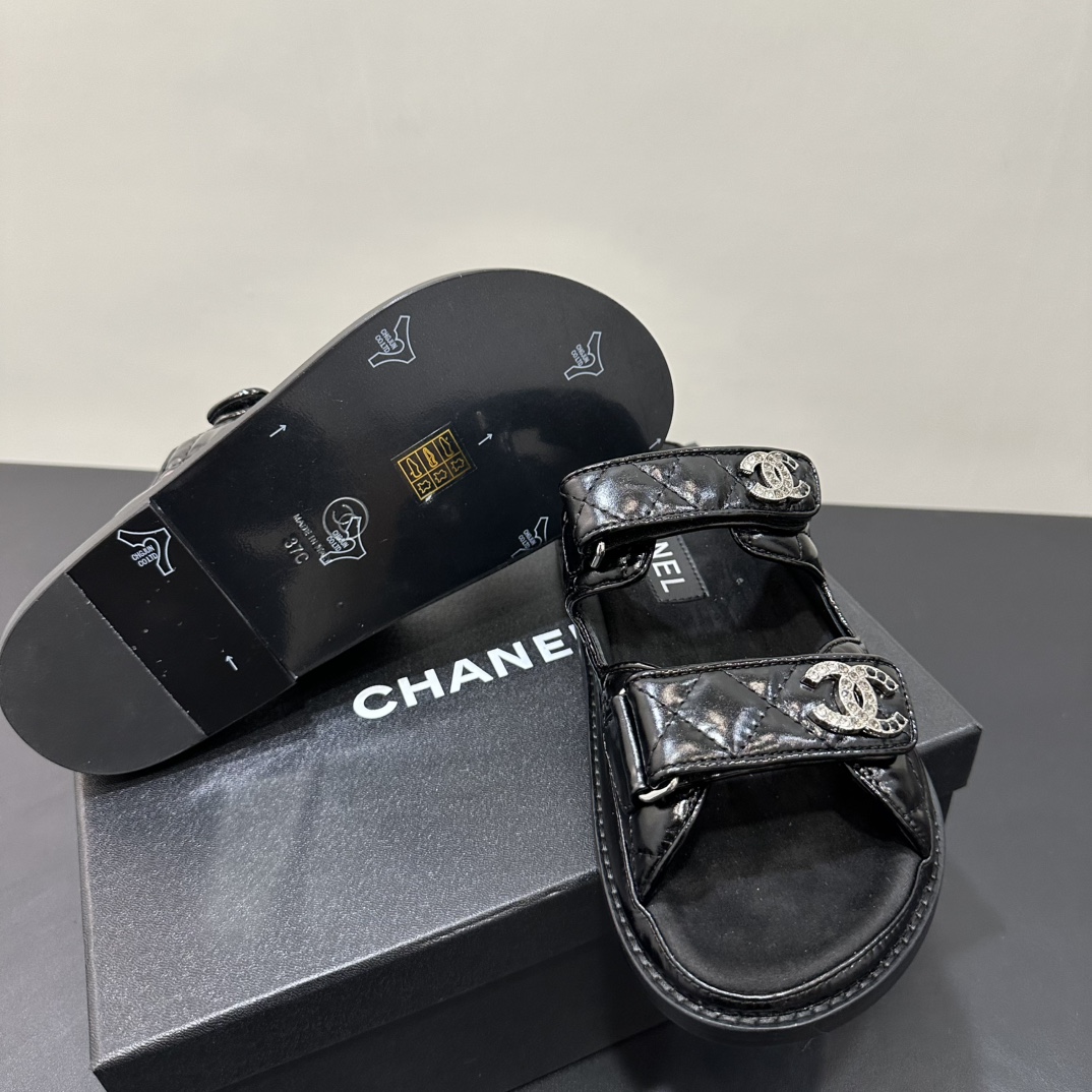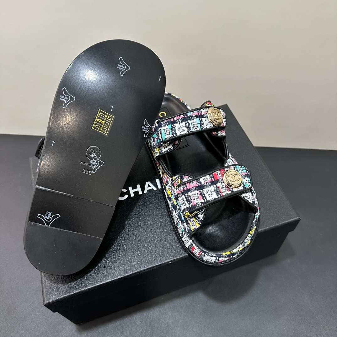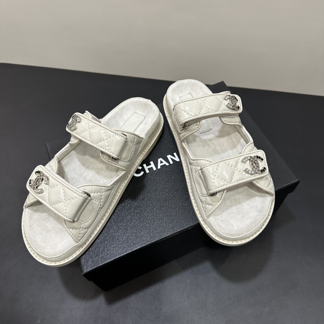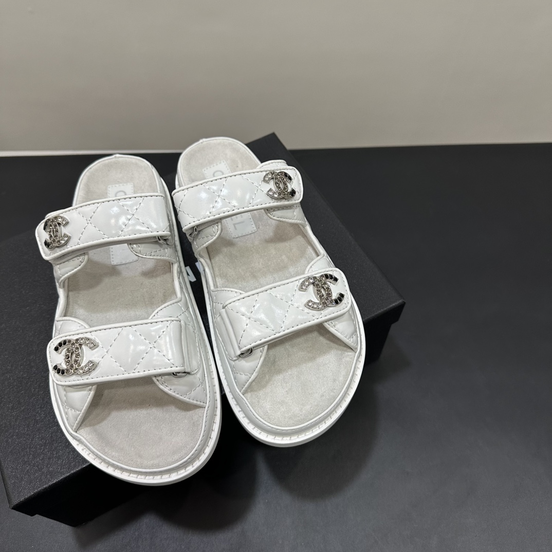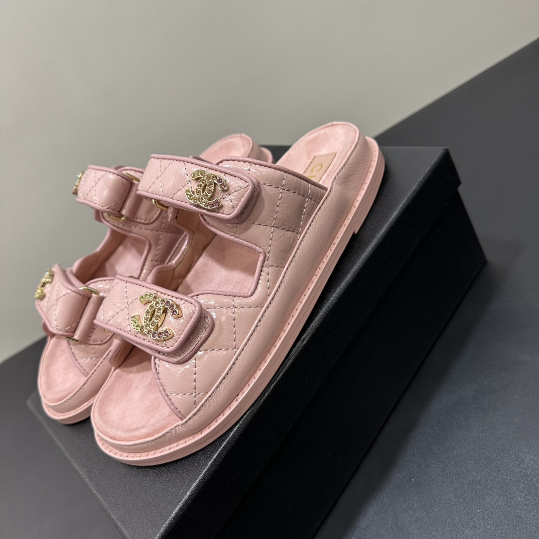 NIGO Chanel Women's Summer Solid Color Leather Round Toe Velcro Sandals Shoes #nigo75837
