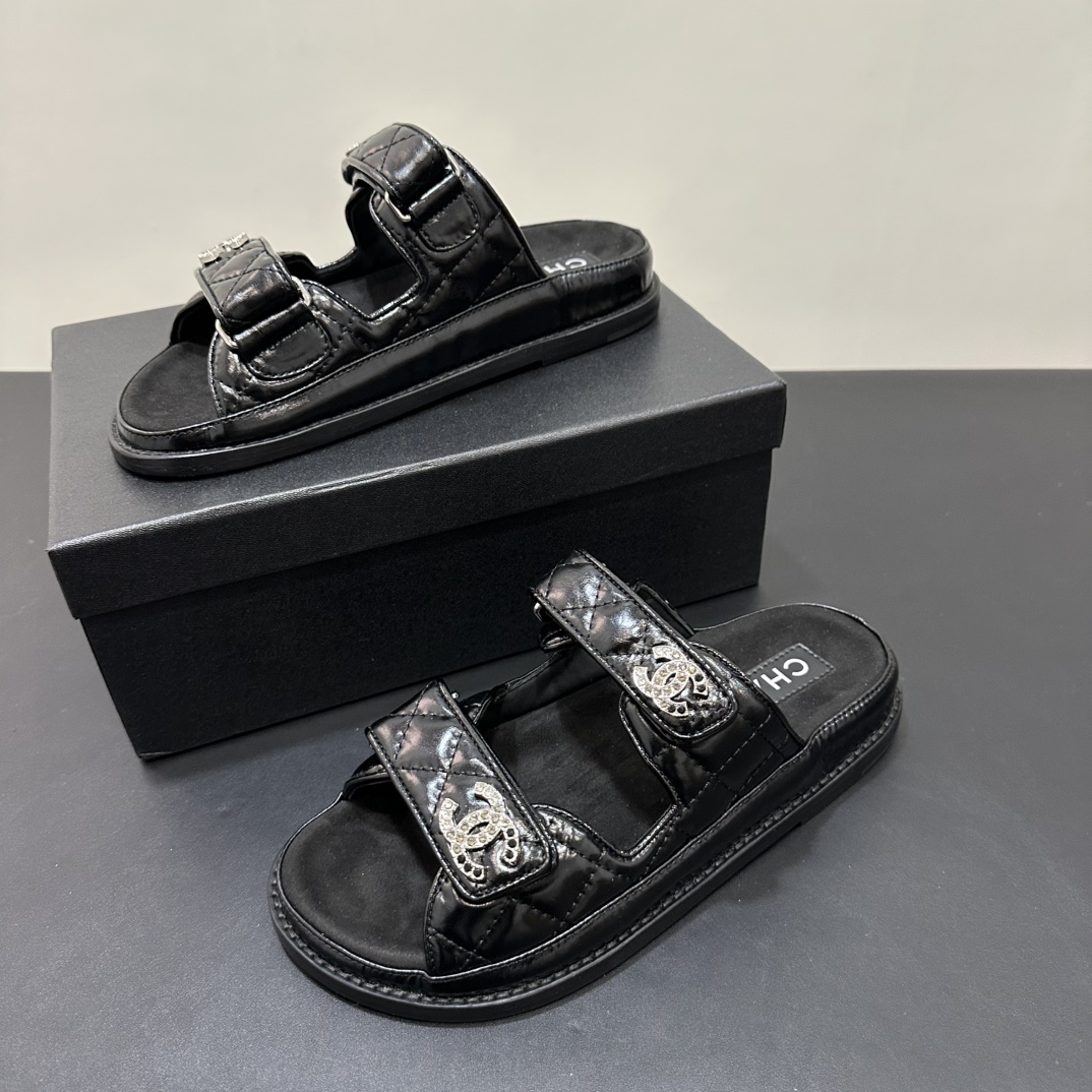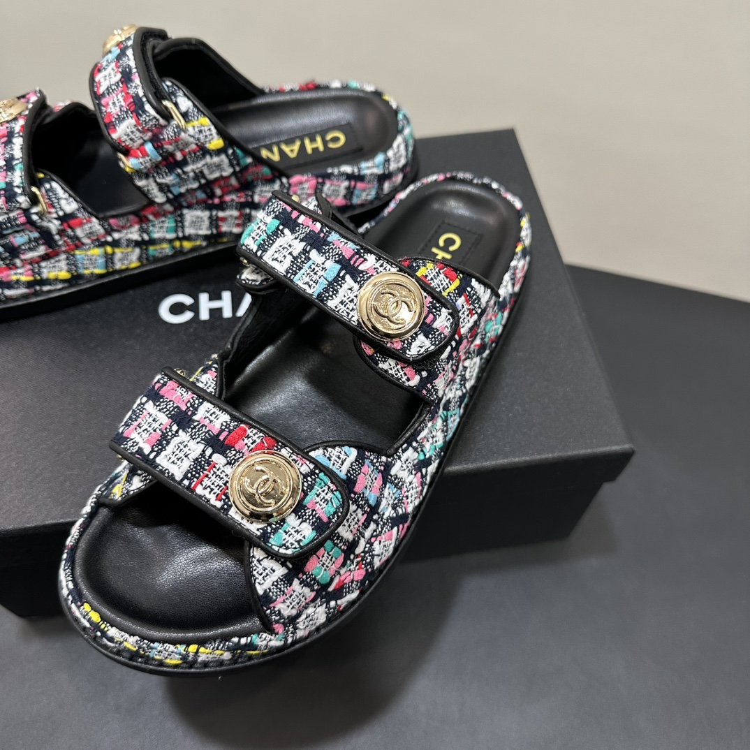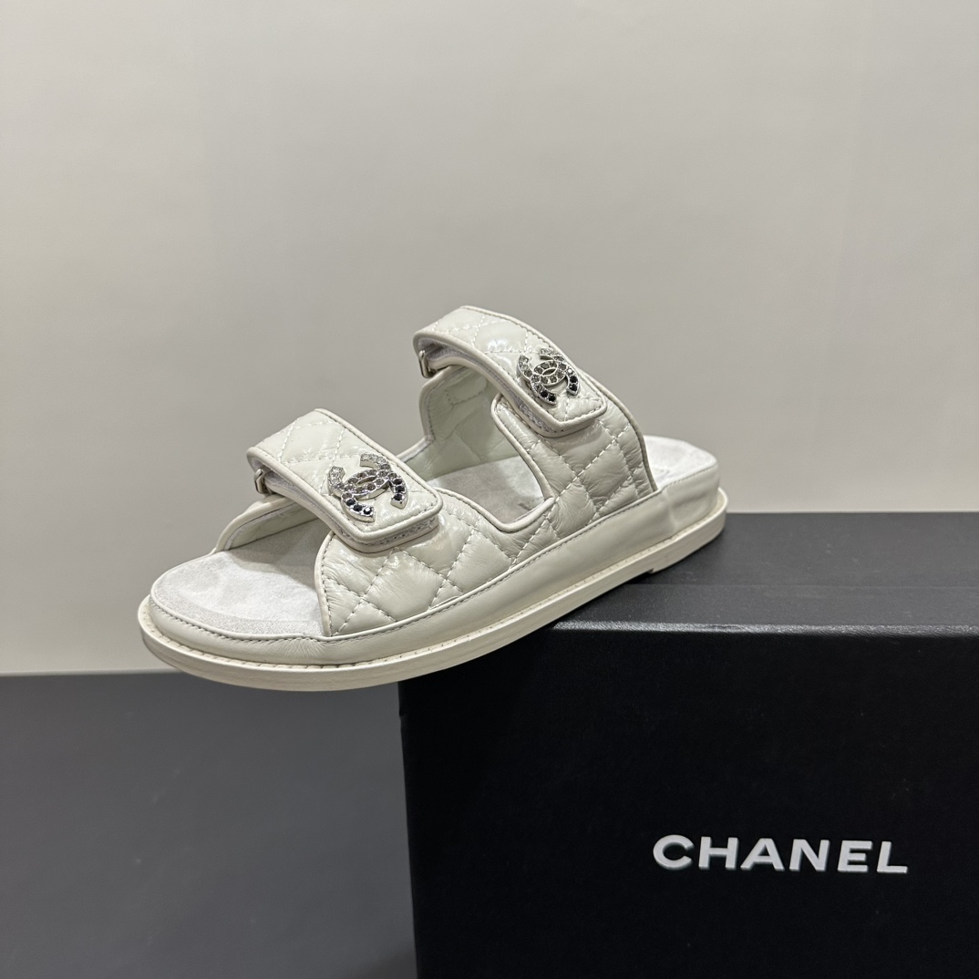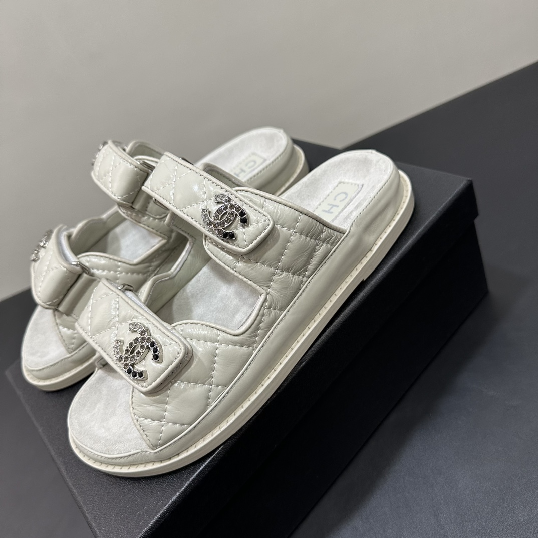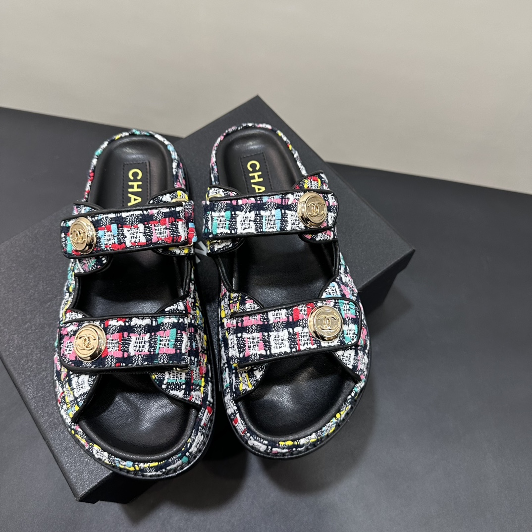 NIGO Chanel Women's Summer Solid Color Leather Round Toe Velcro Sandals Shoes #nigo75837