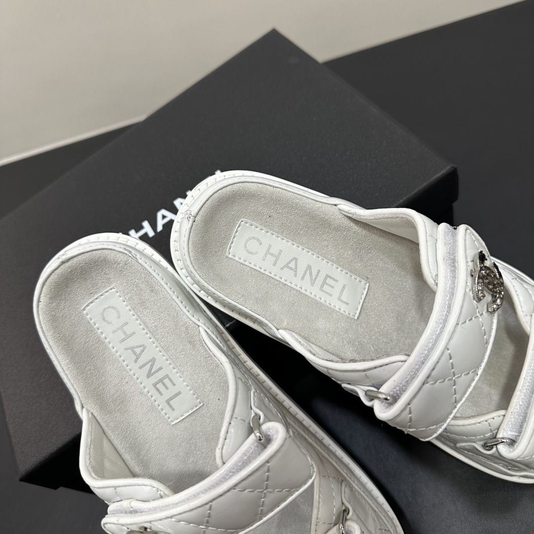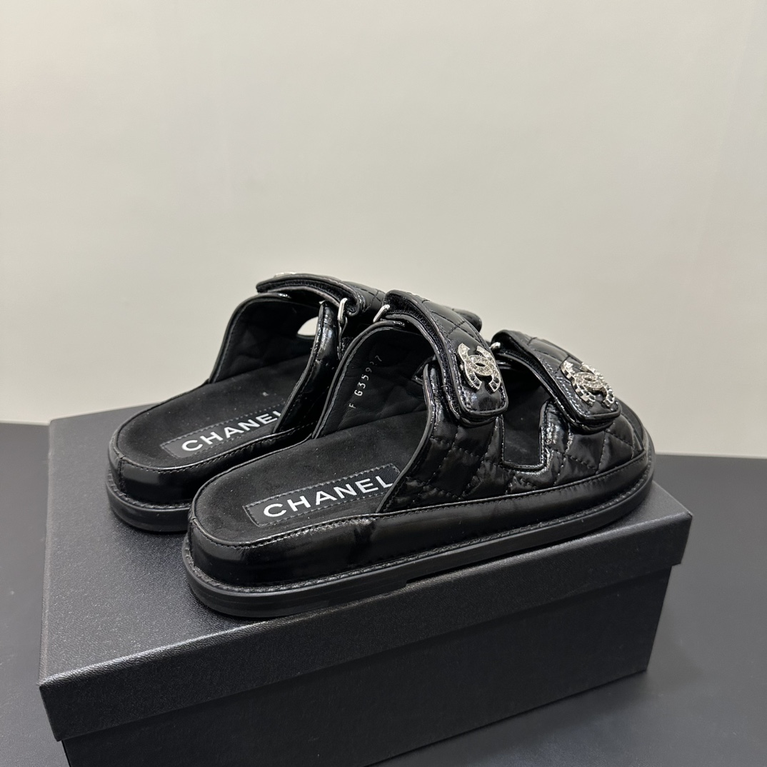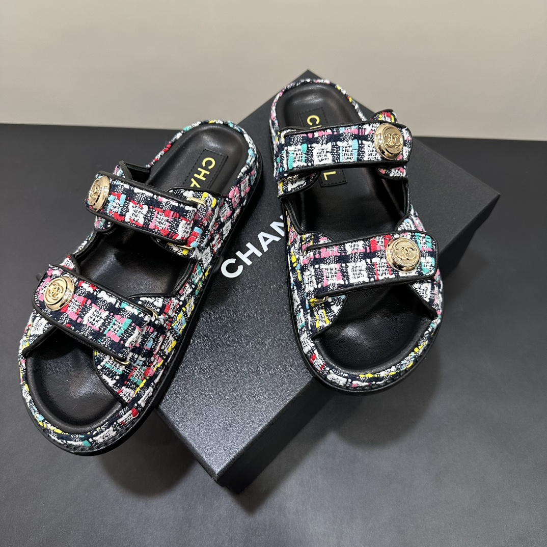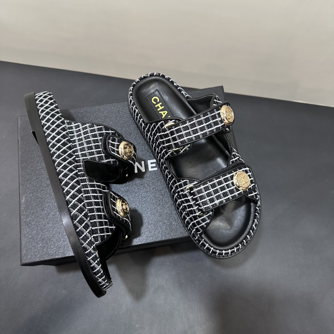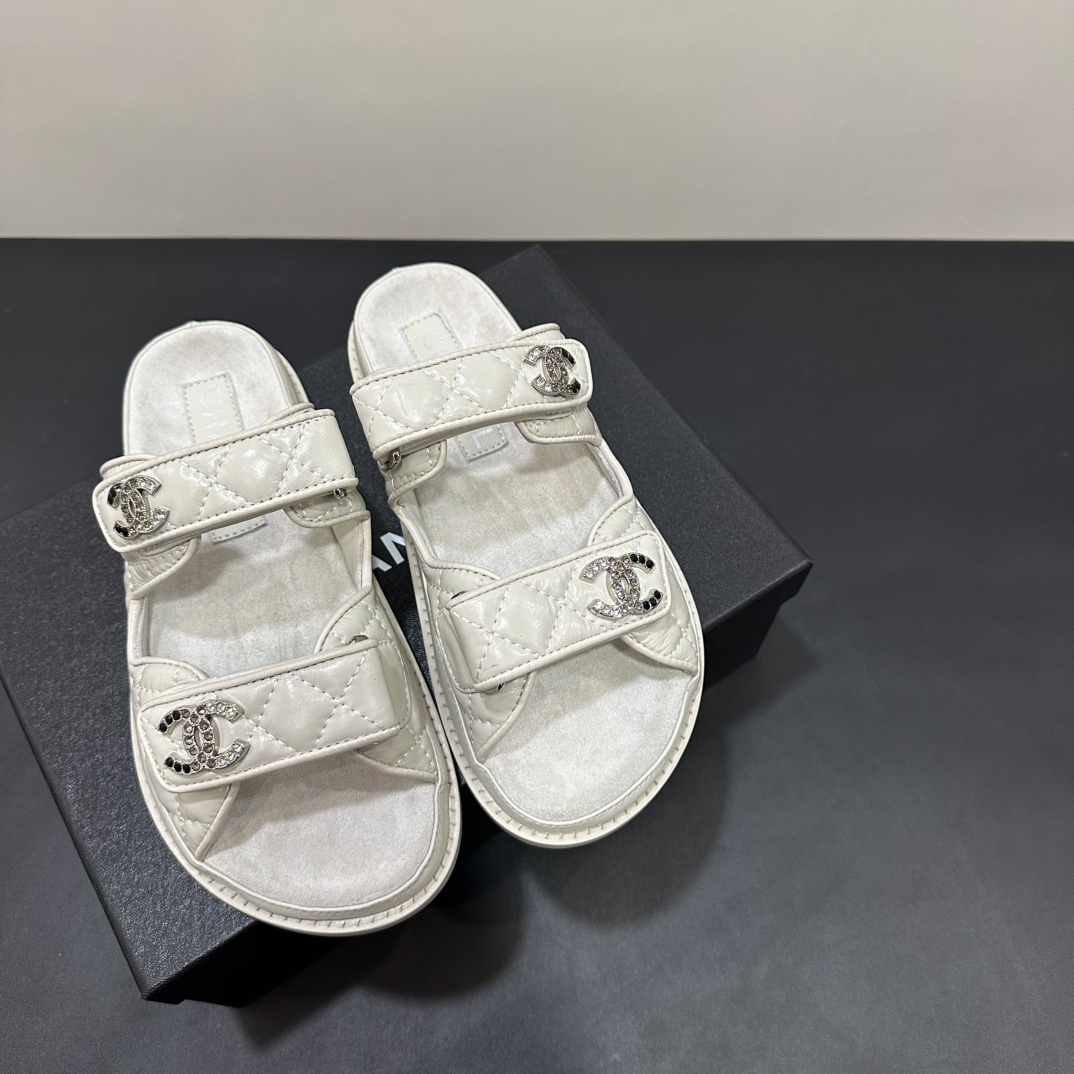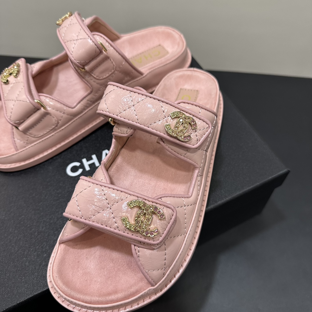 NIGO Chanel Women's Summer Solid Color Leather Round Toe Velcro Sandals Shoes #nigo75837