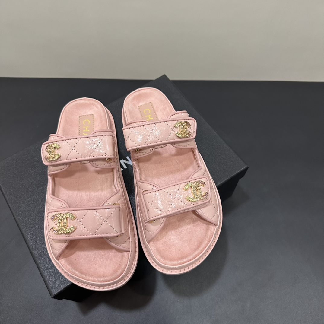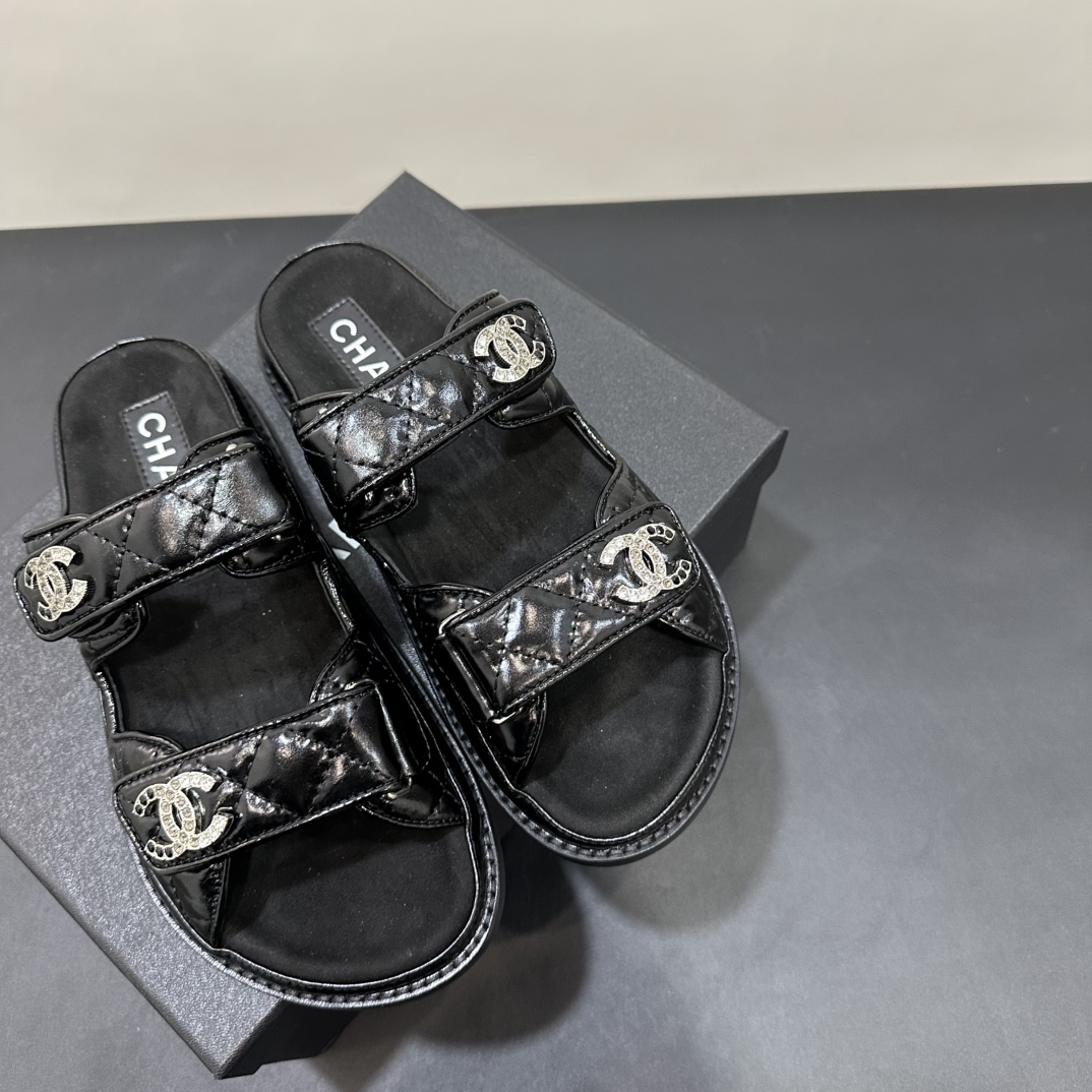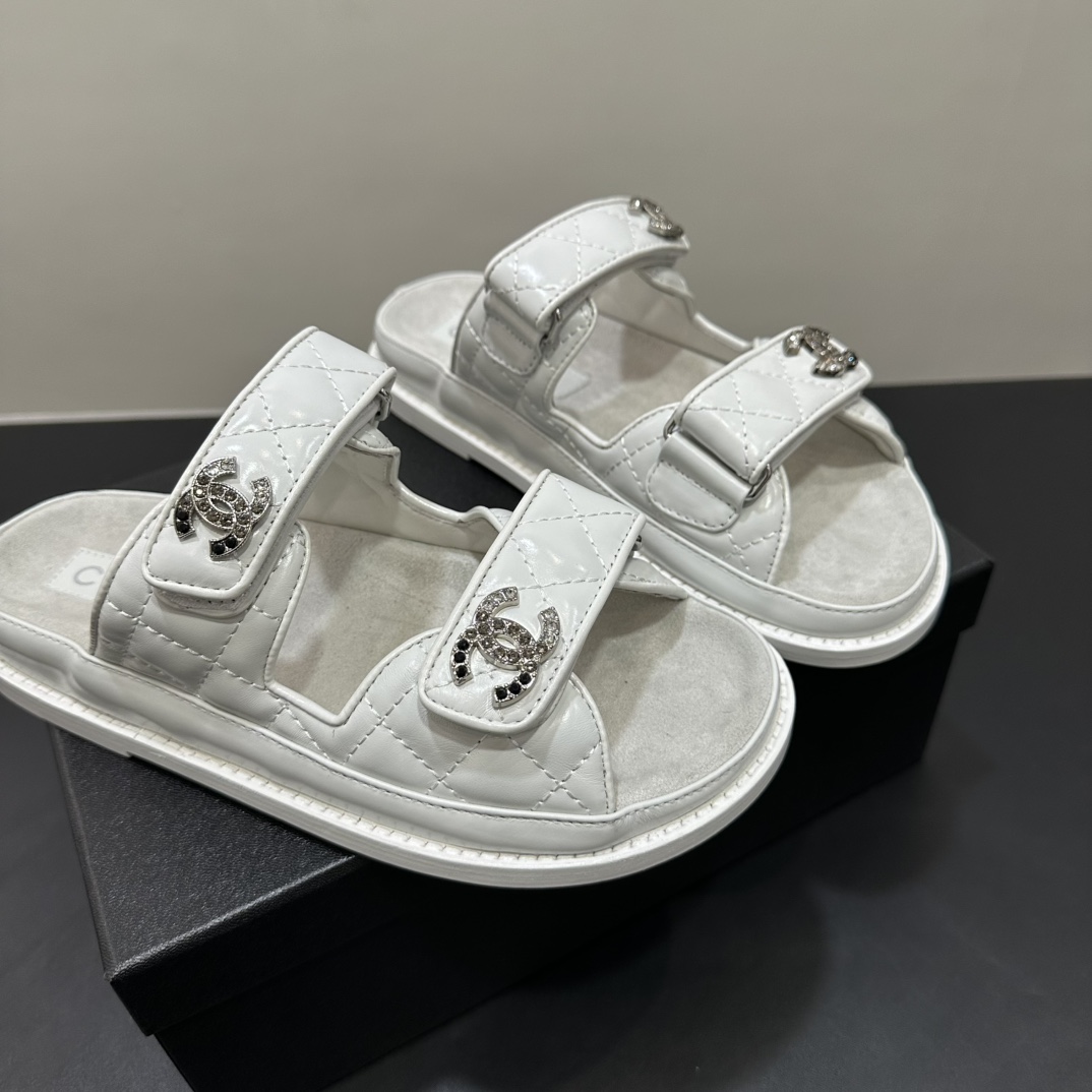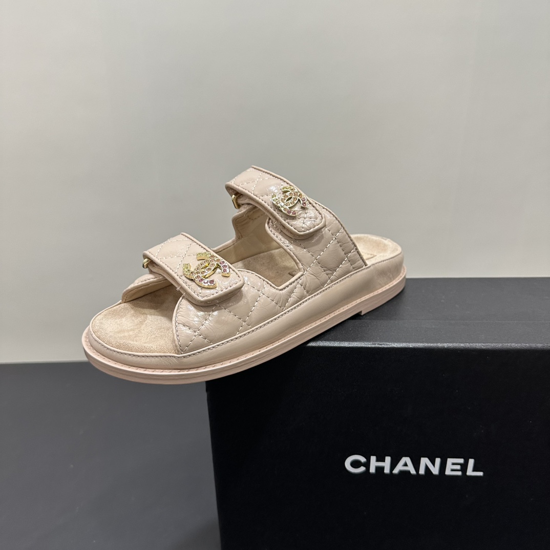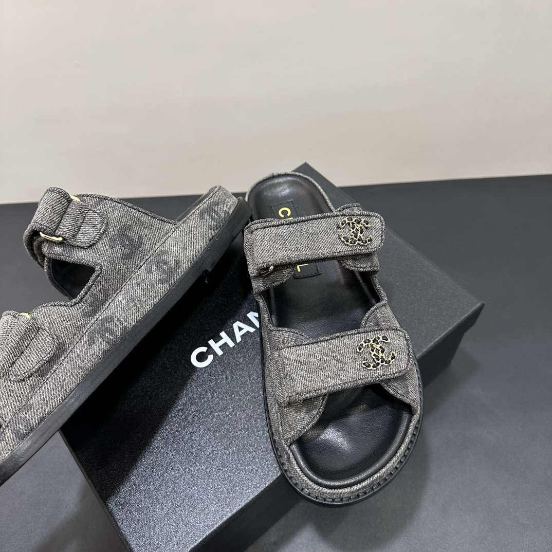 NIGO Chanel Women's Summer Solid Color Leather Round Toe Velcro Sandals Shoes #nigo75837