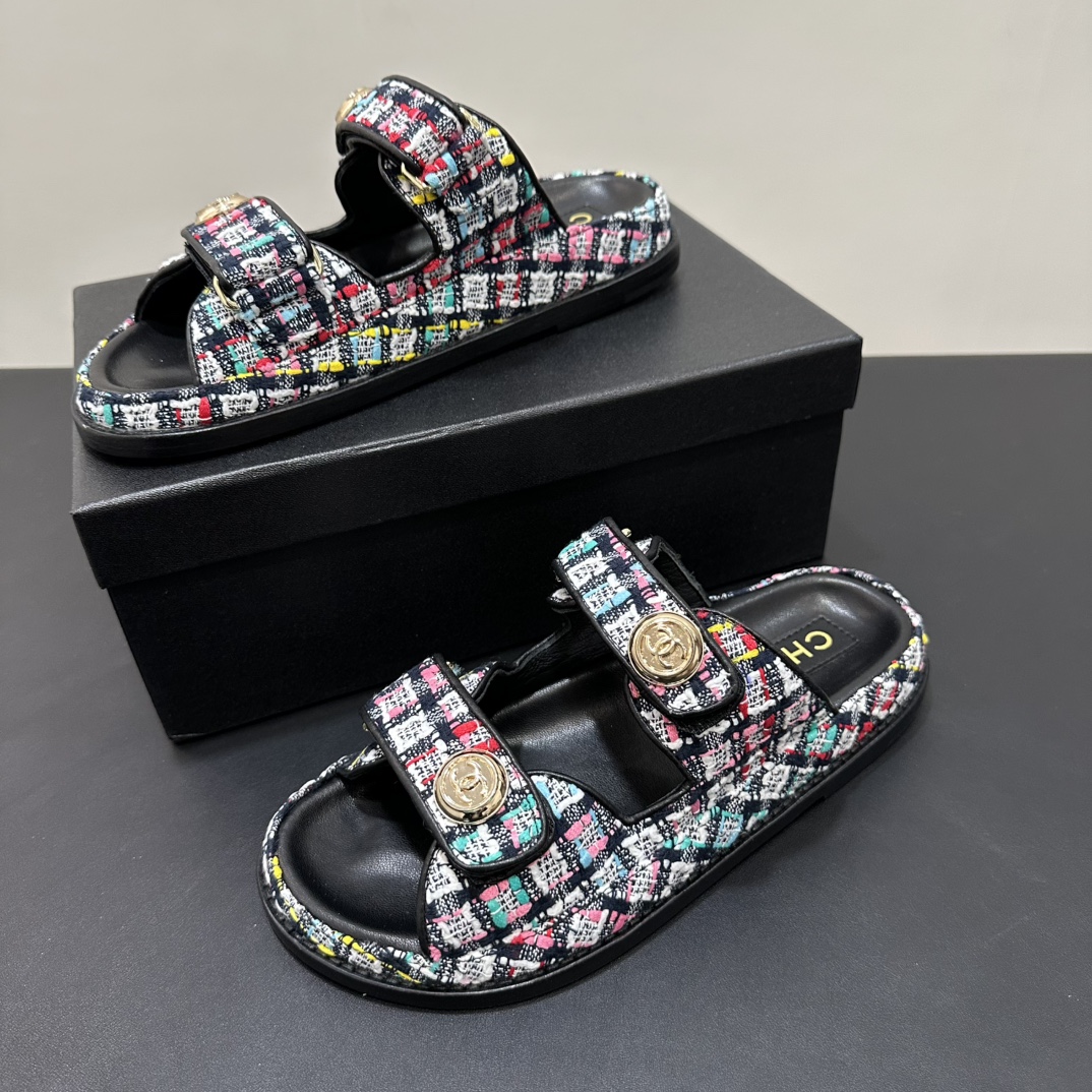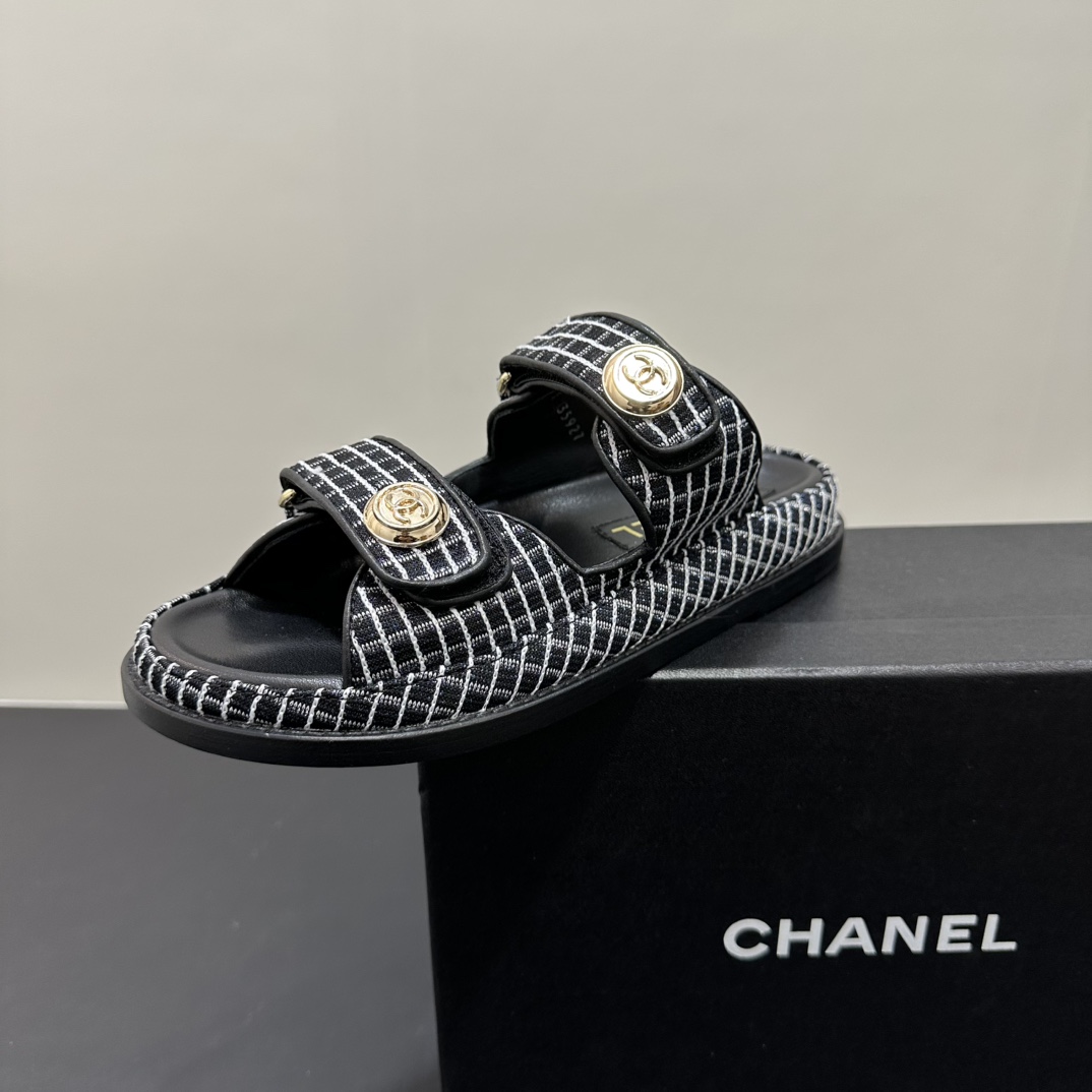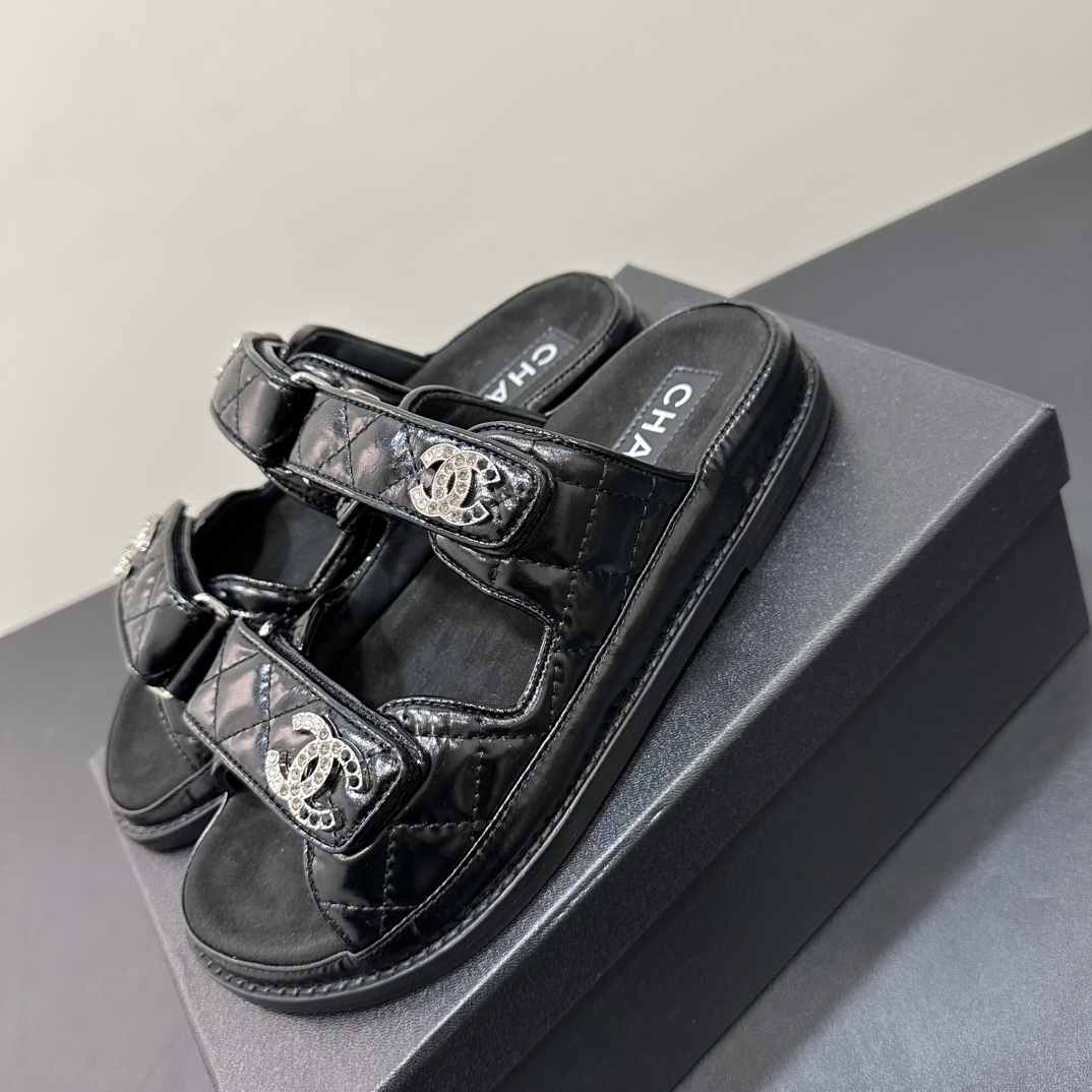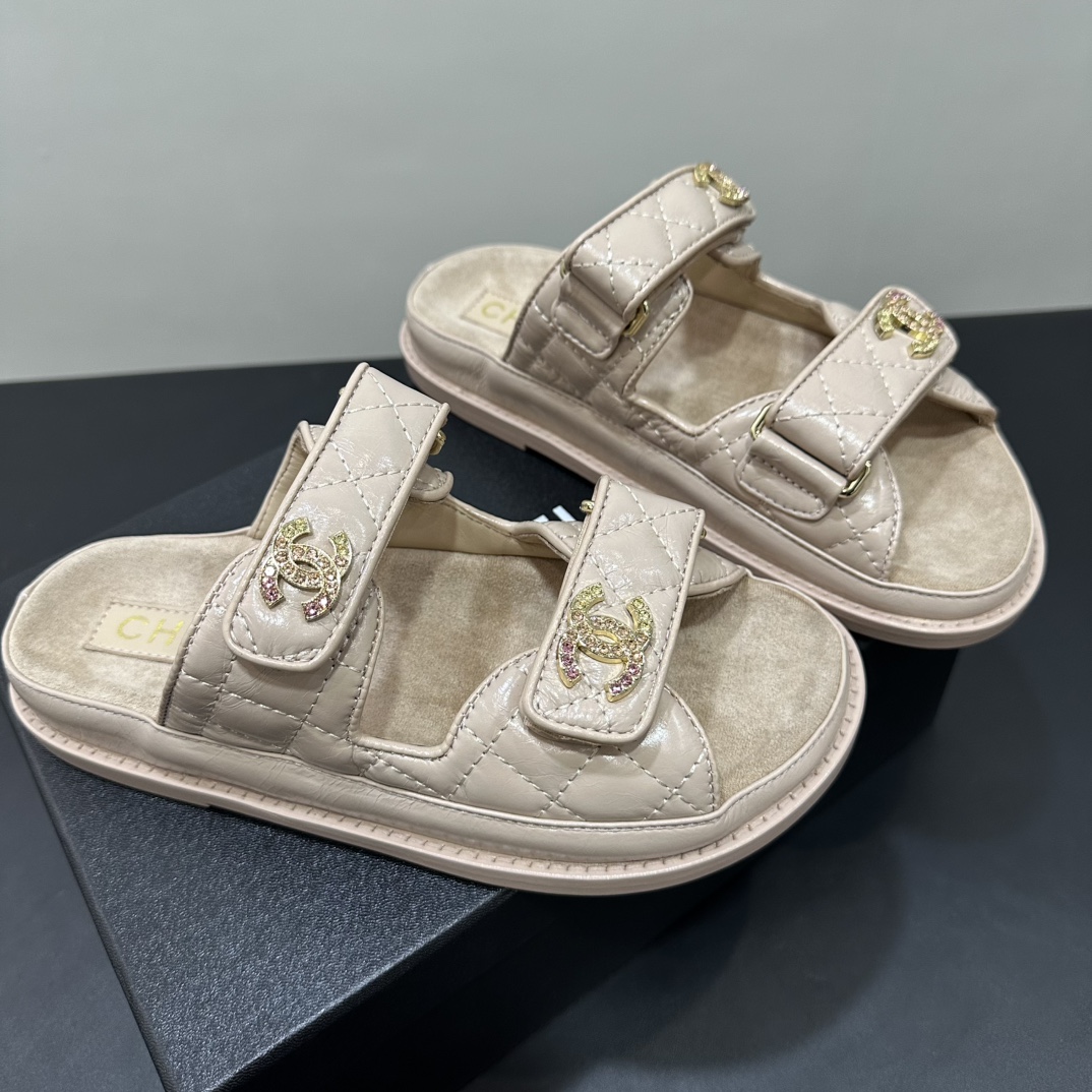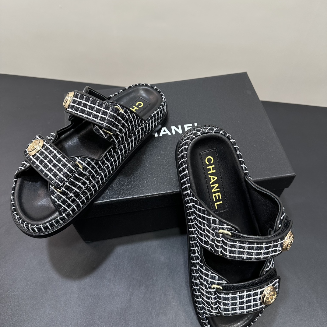 NIGO Chanel Women's Summer Solid Color Leather Round Toe Velcro Sandals Shoes #nigo75837