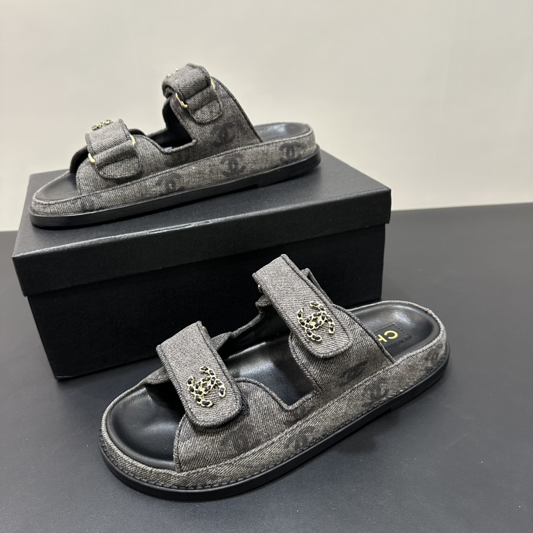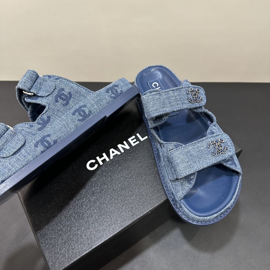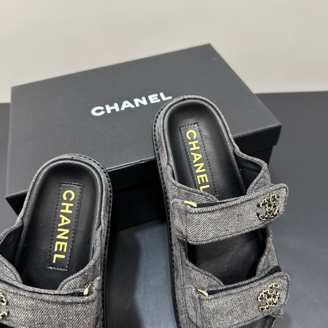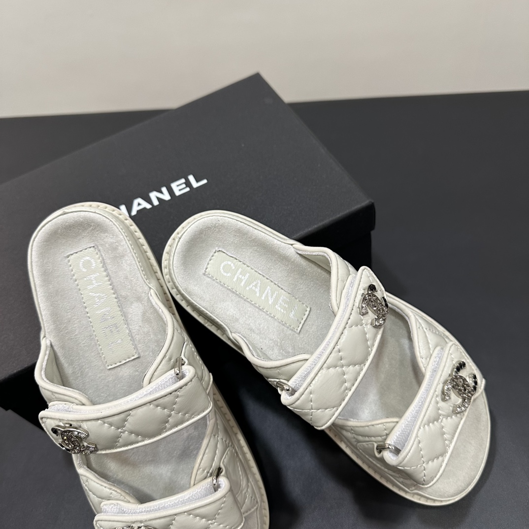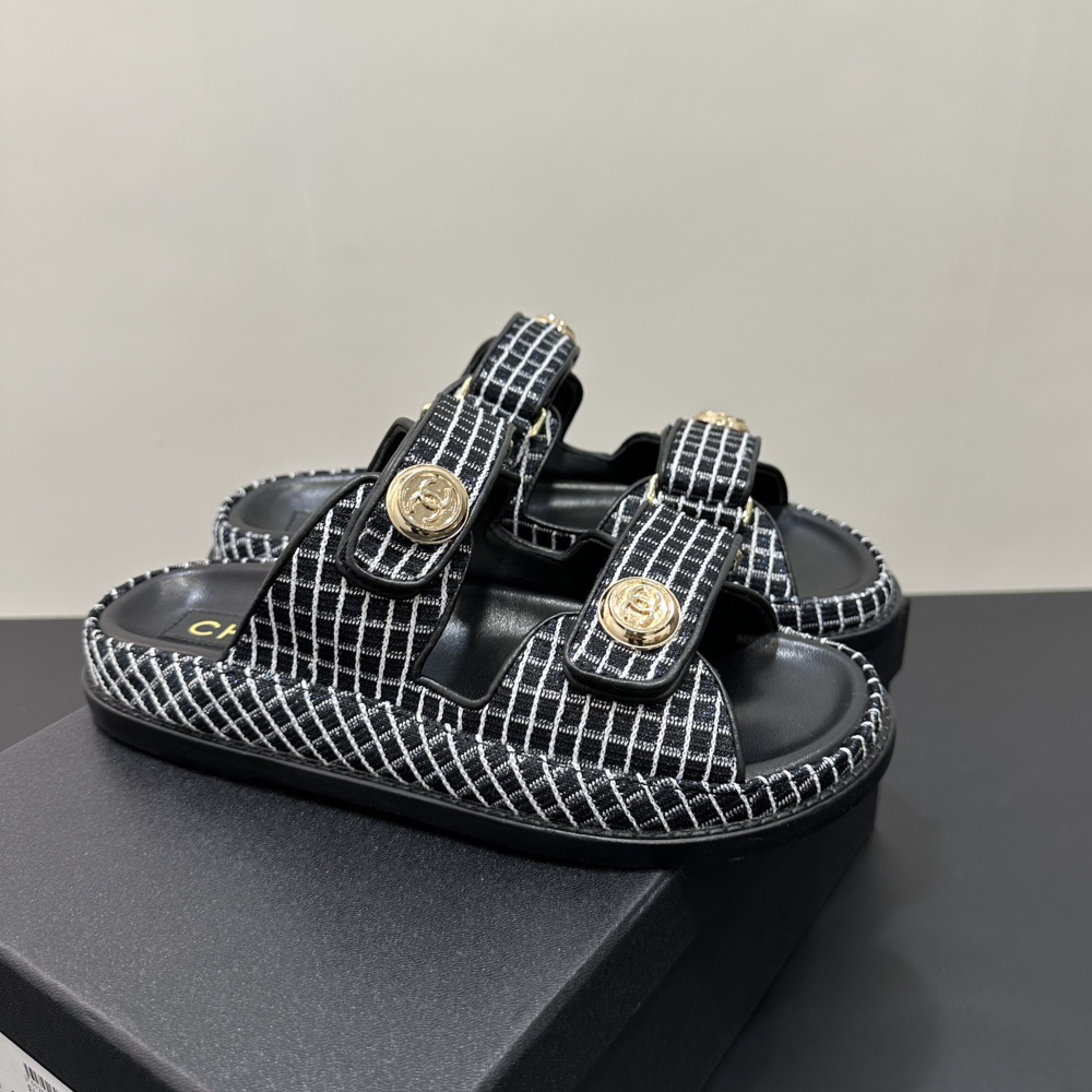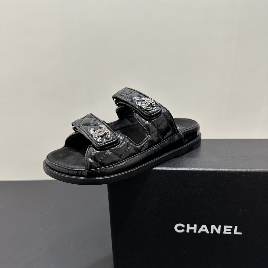 NIGO Chanel Women's Summer Solid Color Leather Round Toe Velcro Sandals Shoes #nigo75837
