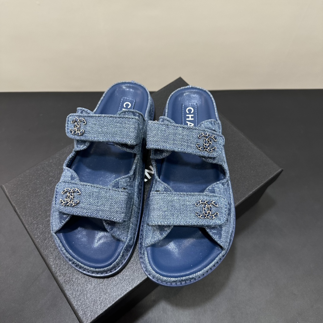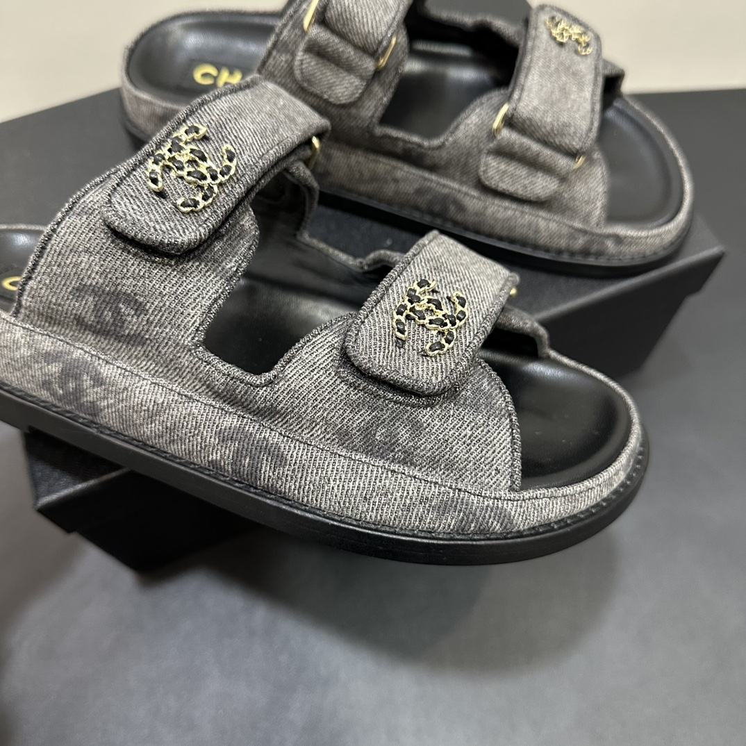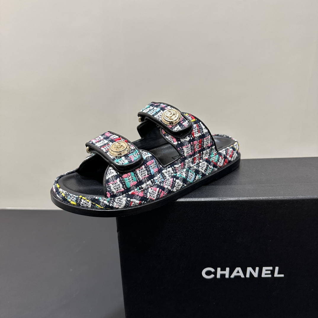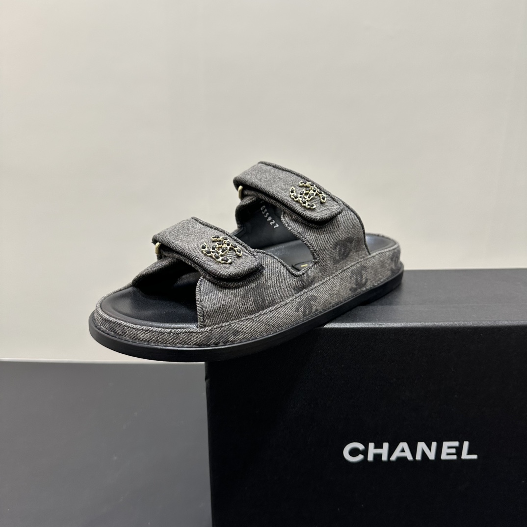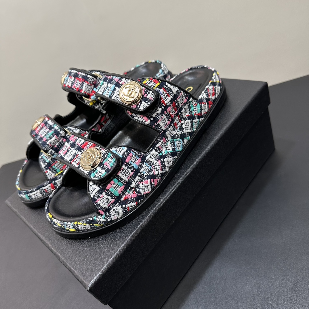NIGO Chanel Women's Summer Solid Color Leather Round Toe Velcro Sandals Shoes #nigo75837