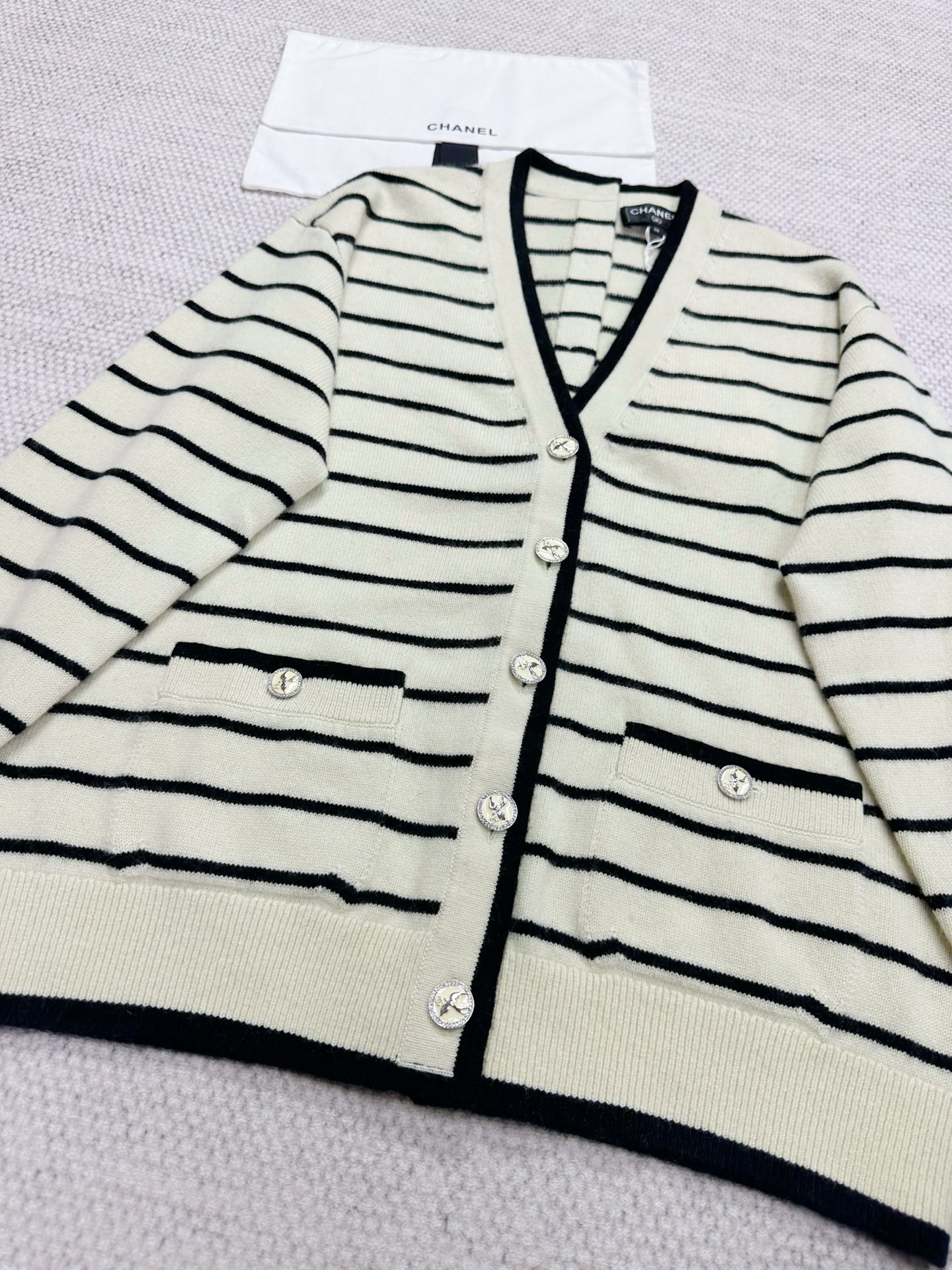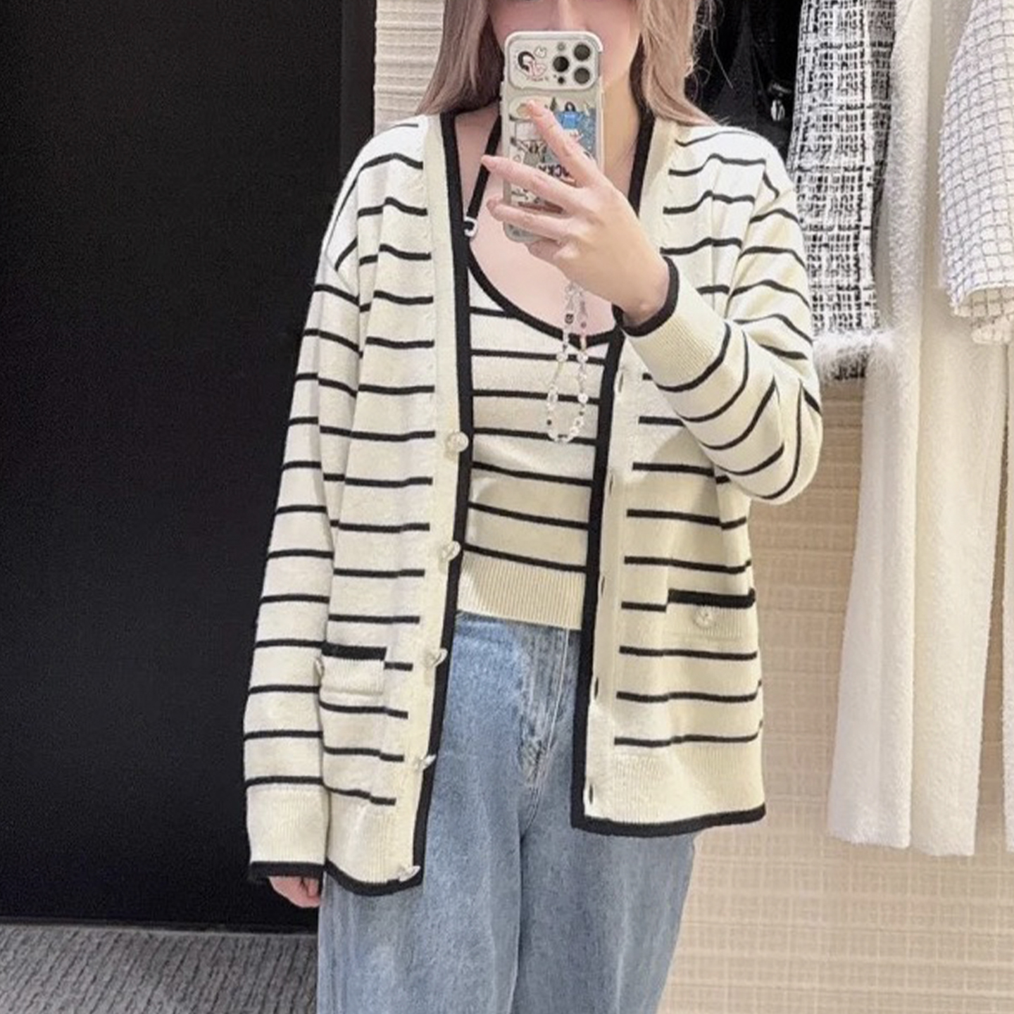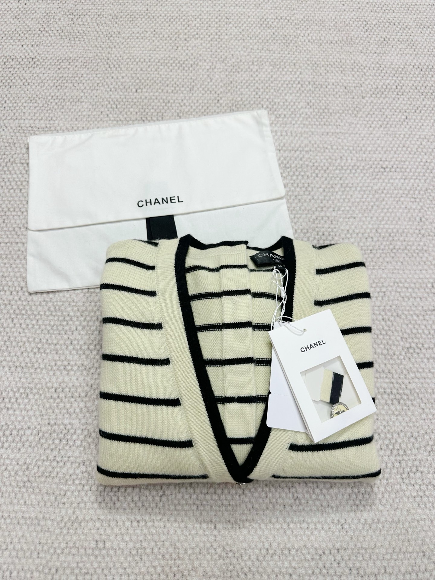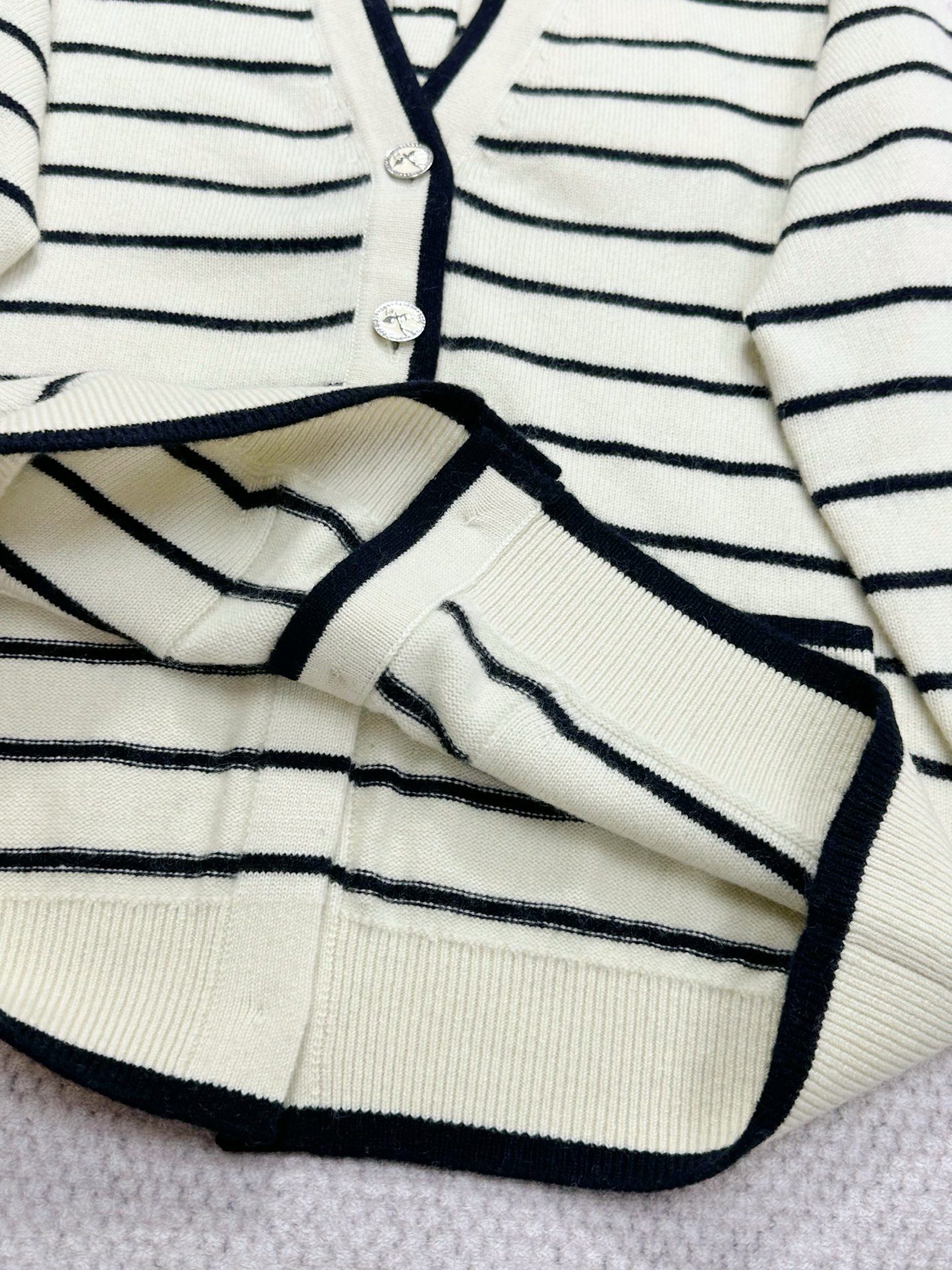 NIGO Chanel Women's V-Neck Striped Spring, Autumn And Winter Long Solid Color Cashmere Knitted Cardigan Ngvp #nigo1981