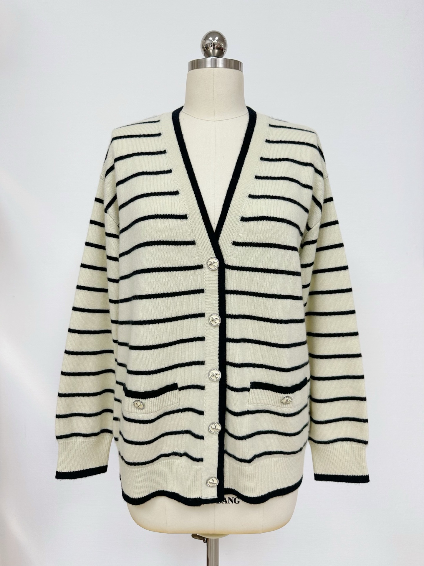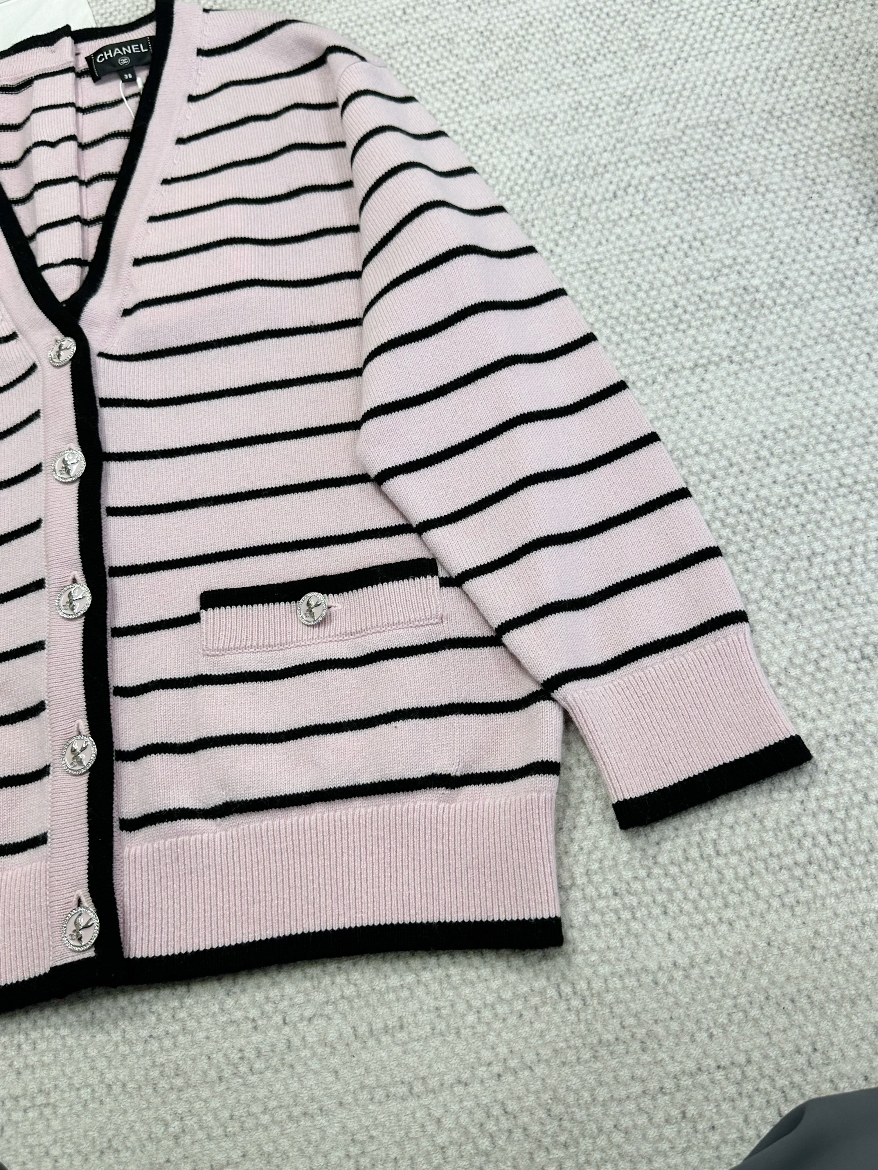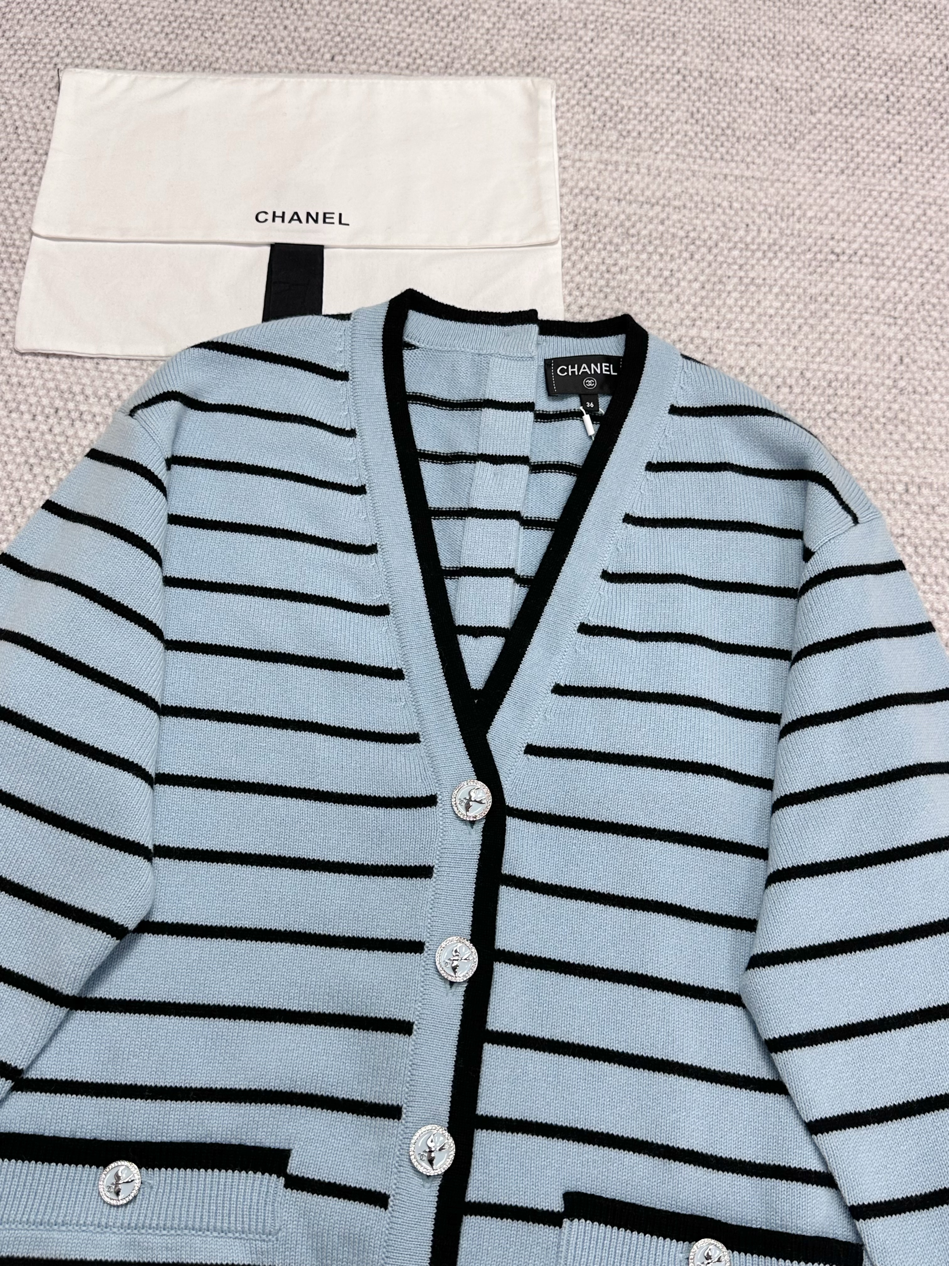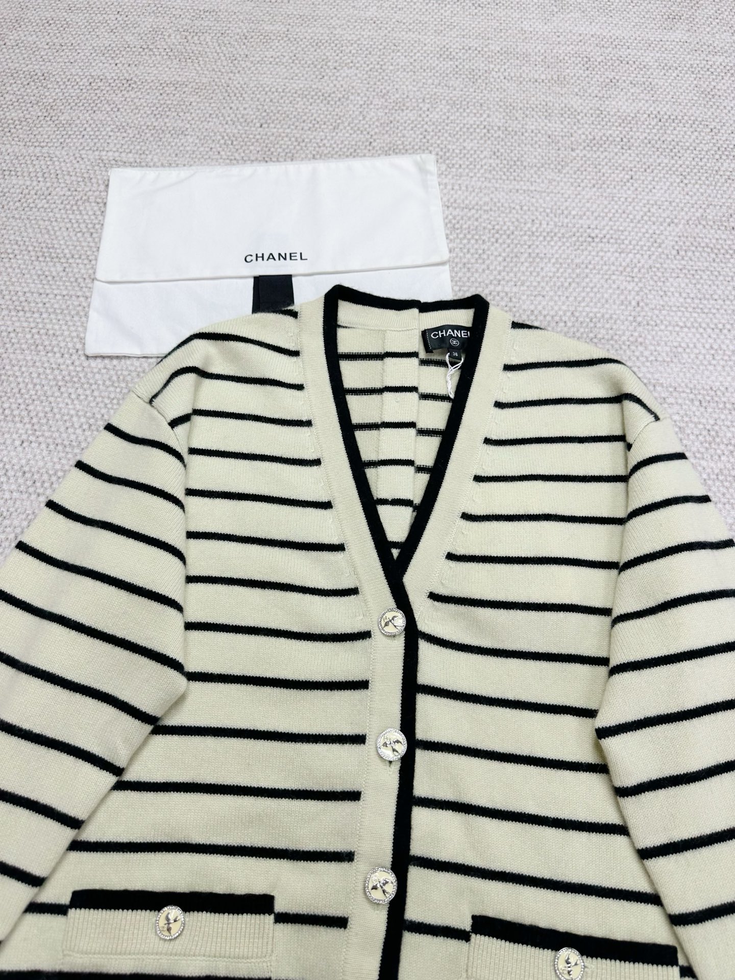 NIGO Chanel Women's V-Neck Striped Spring, Autumn And Winter Long Solid Color Cashmere Knitted Cardigan Ngvp #nigo1981