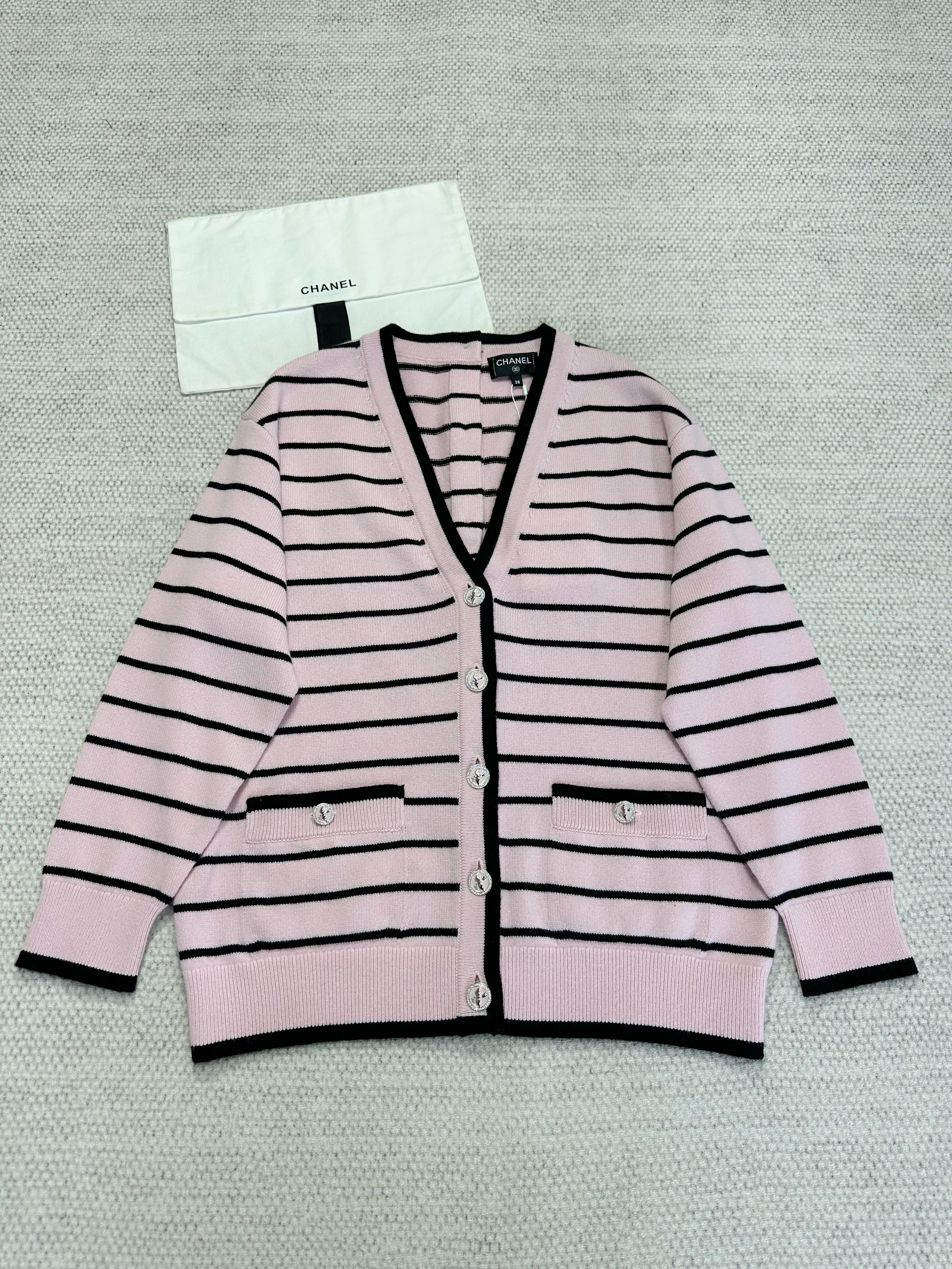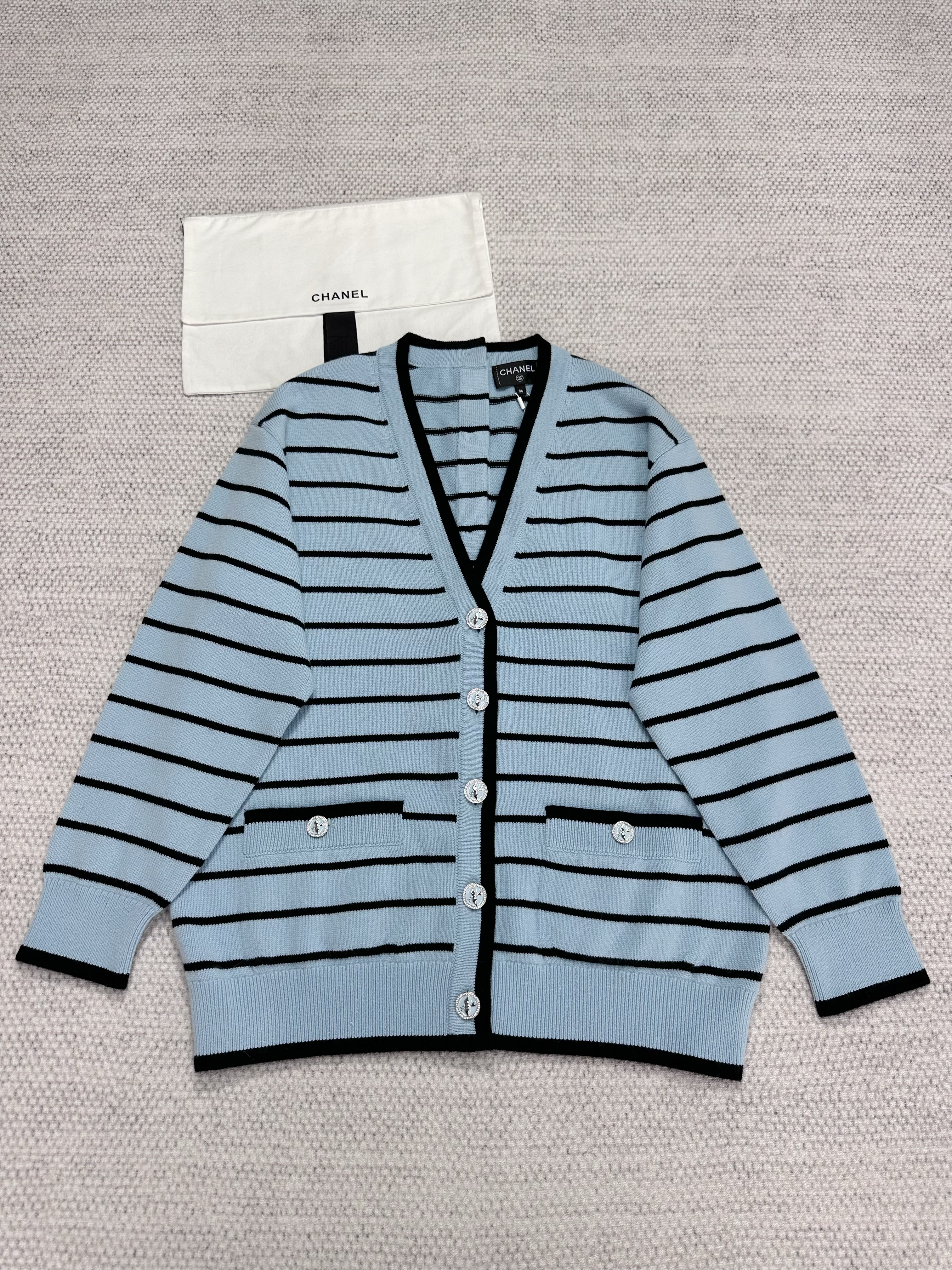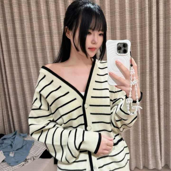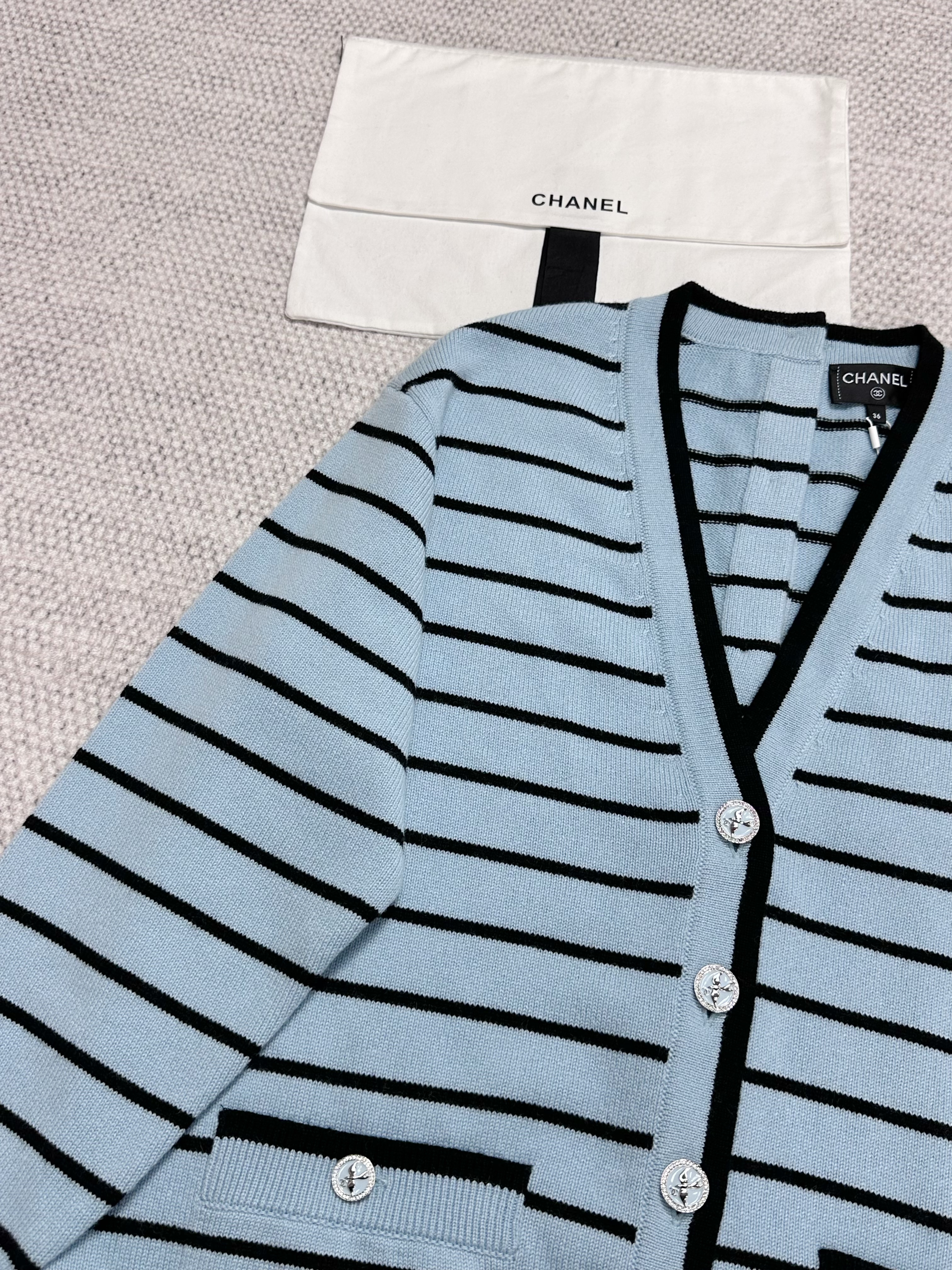 NIGO Chanel Women's V-Neck Striped Spring, Autumn And Winter Long Solid Color Cashmere Knitted Cardigan Ngvp #nigo1981
