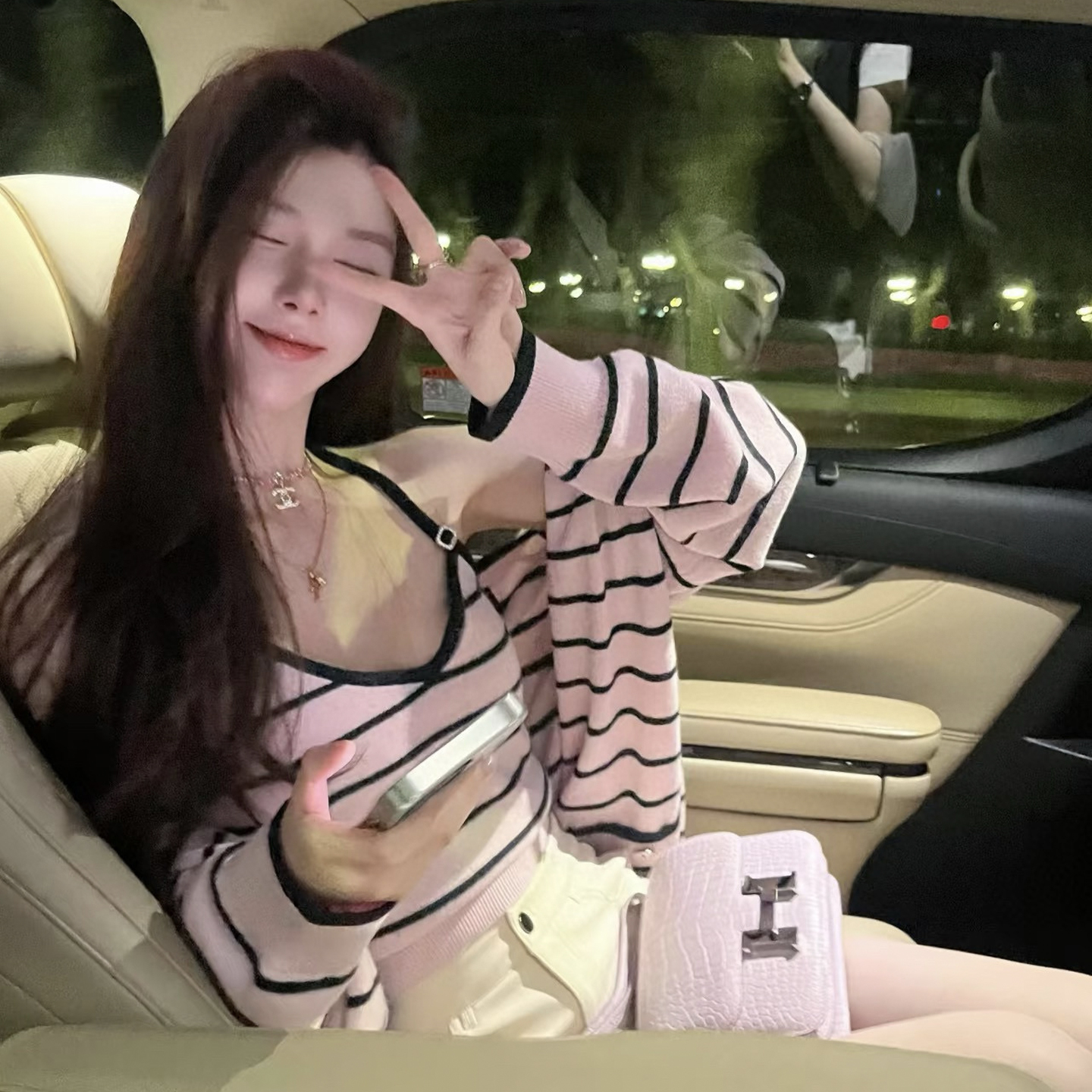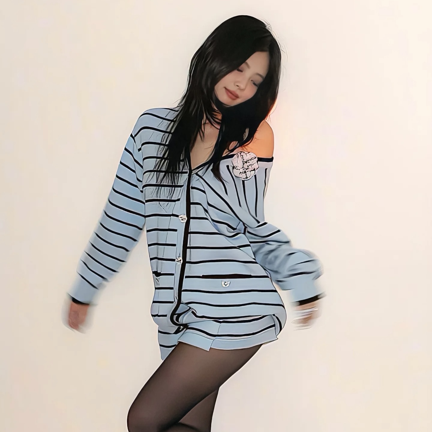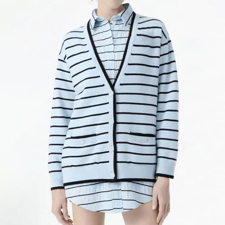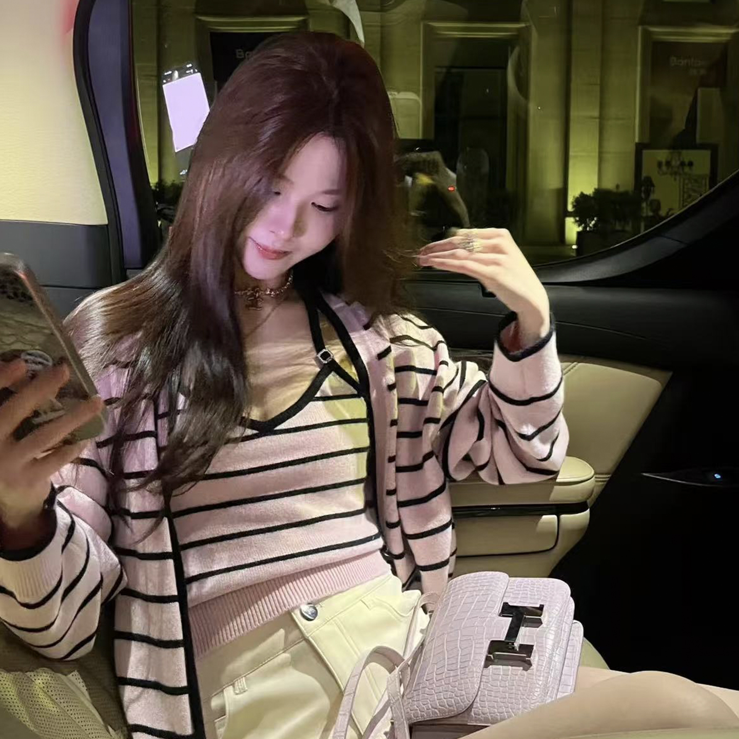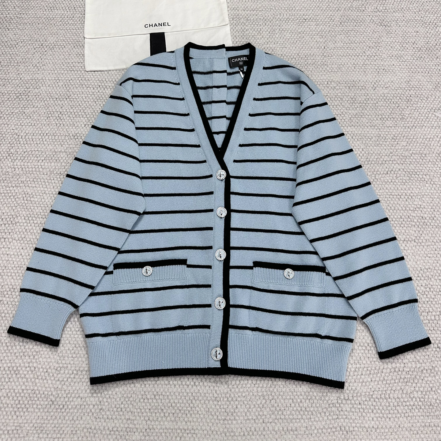 NIGO Chanel Women's V-Neck Striped Spring, Autumn And Winter Long Solid Color Cashmere Knitted Cardigan Ngvp #nigo1981