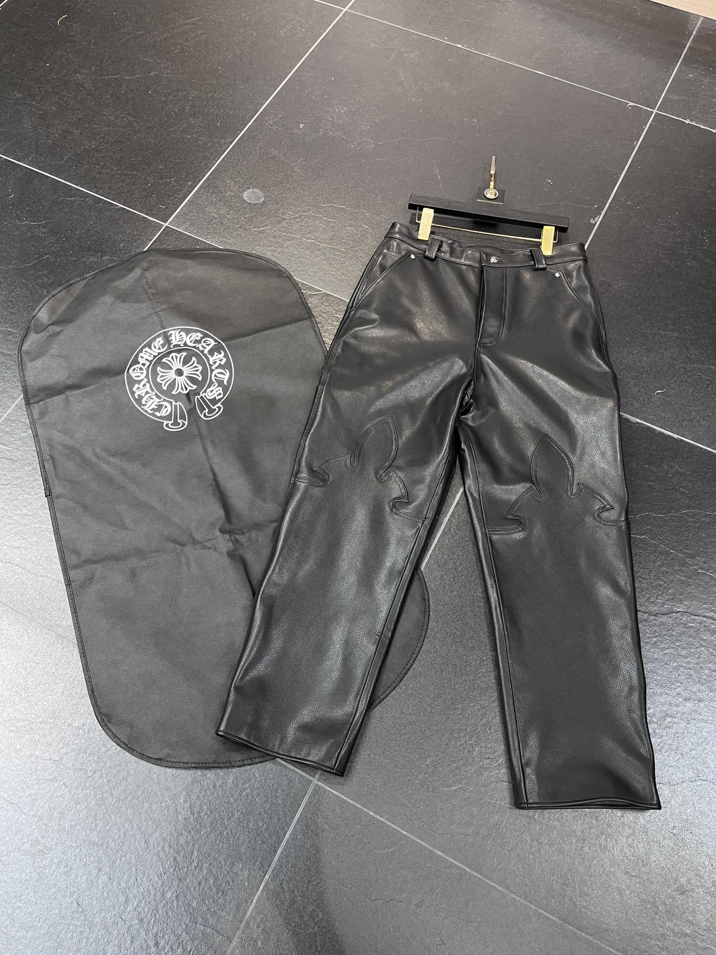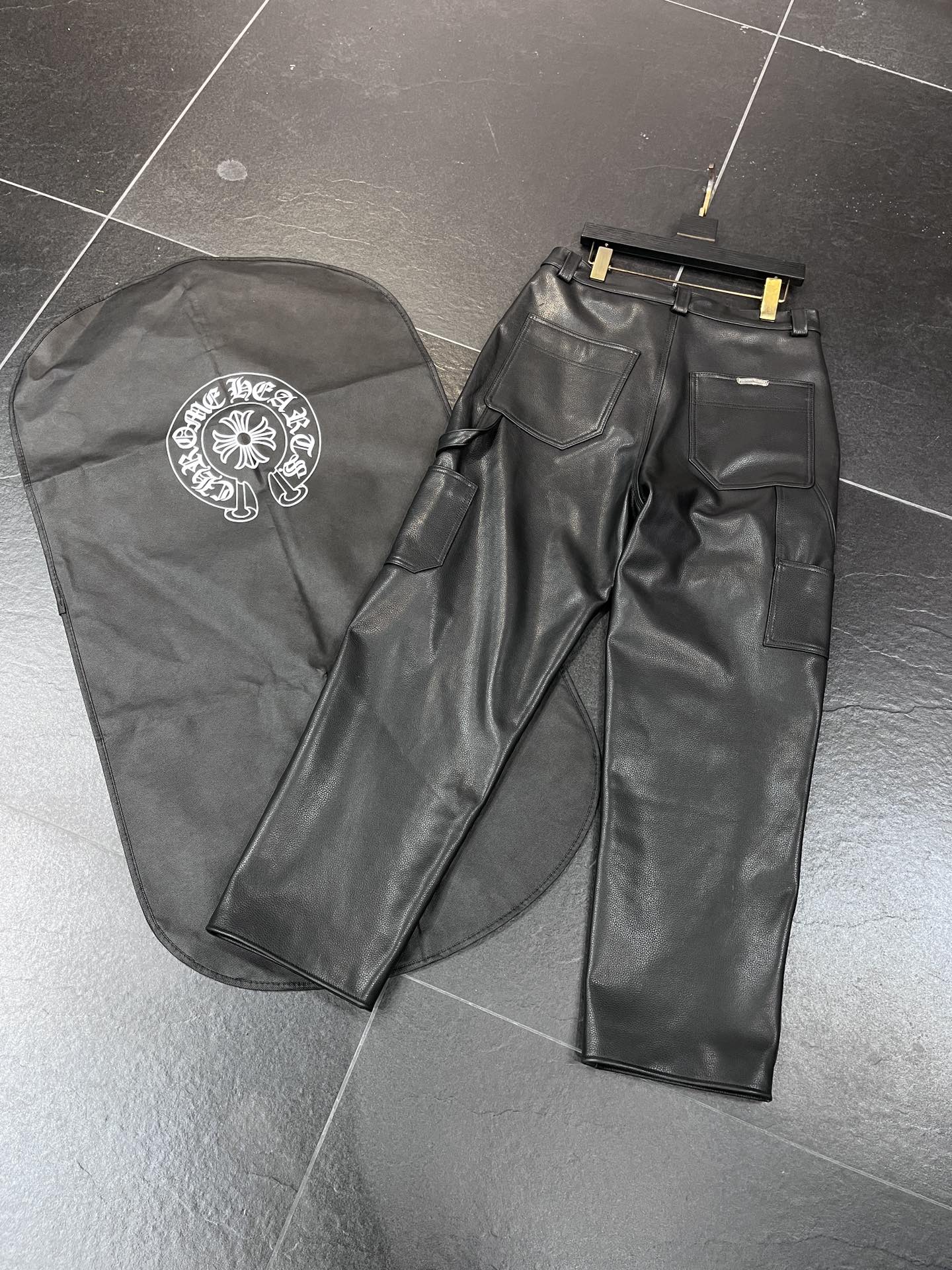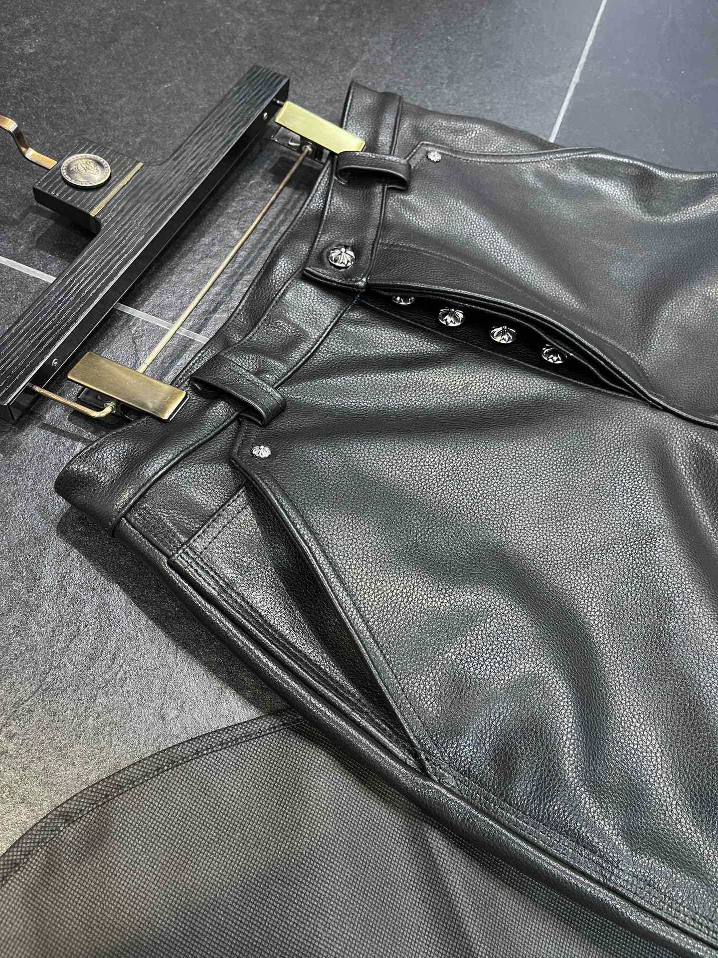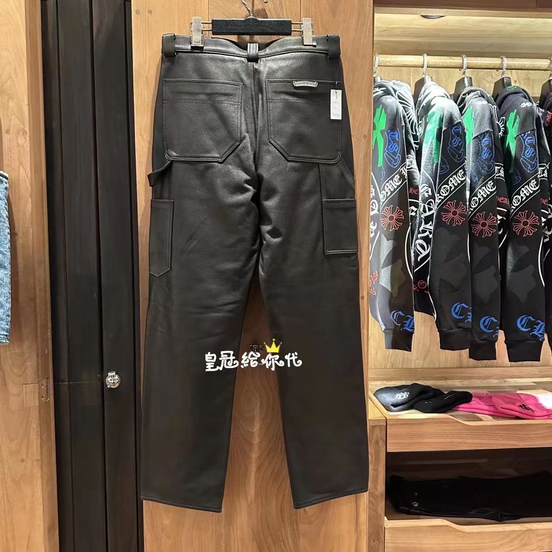 NIGO Chrome Hearts Men's And Women's Autumn/Winter Fashion Casual Pants With Dust Bag Plain Color Calfskin Leather Pants #nigo78266