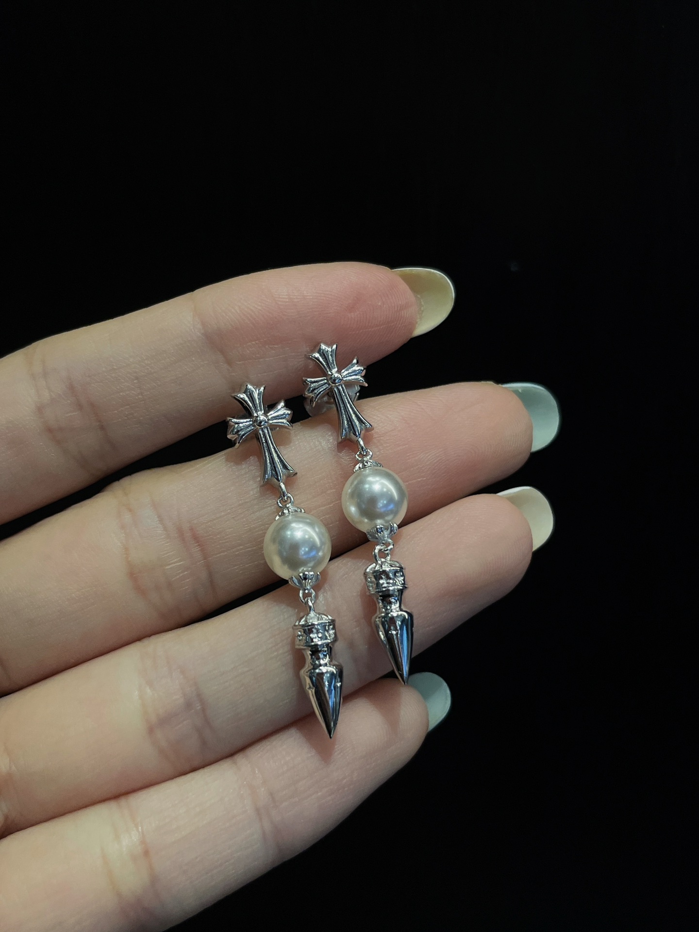 NIGO Chrome Hearts Men's and Women's Solid Color Cross Bullet Tassel Earrings Jewelry Accessories #nigo76642