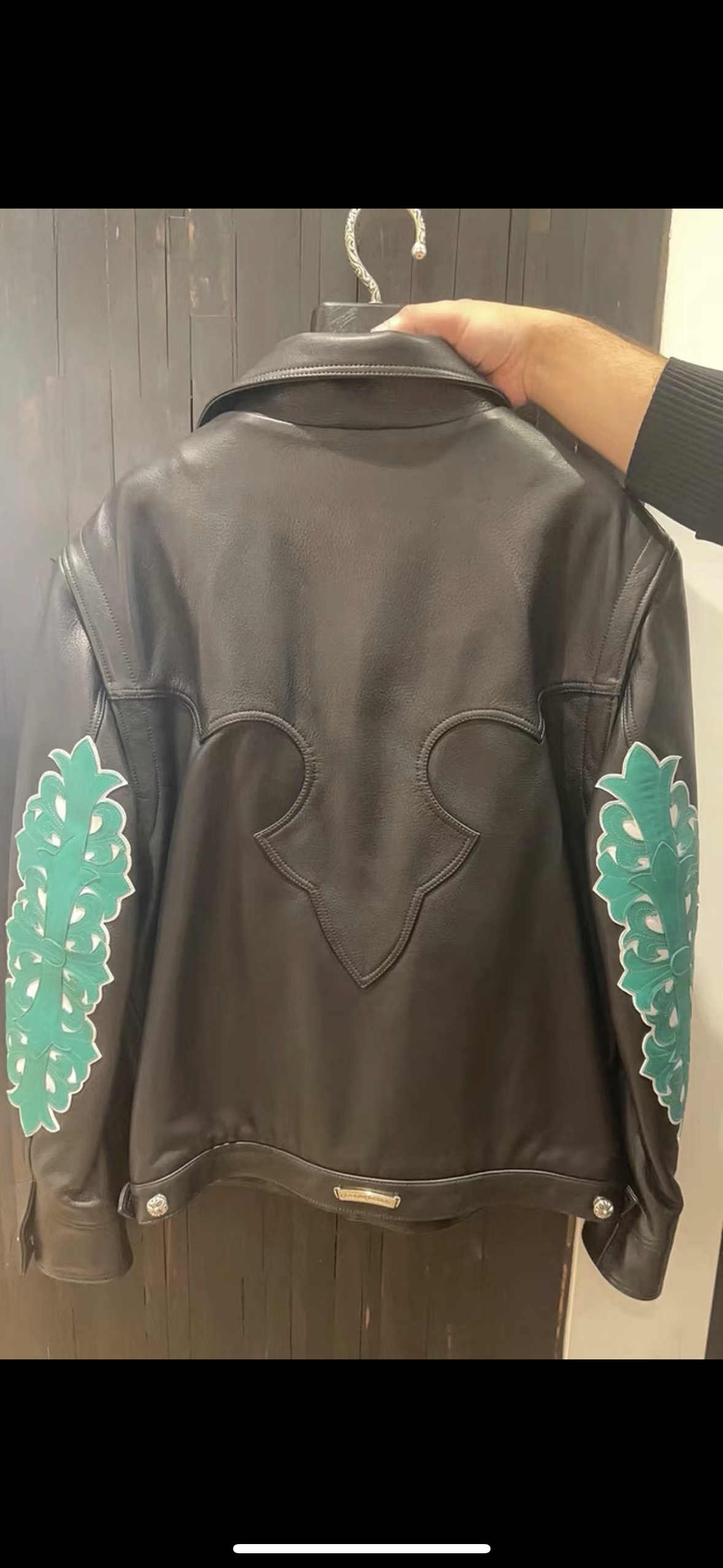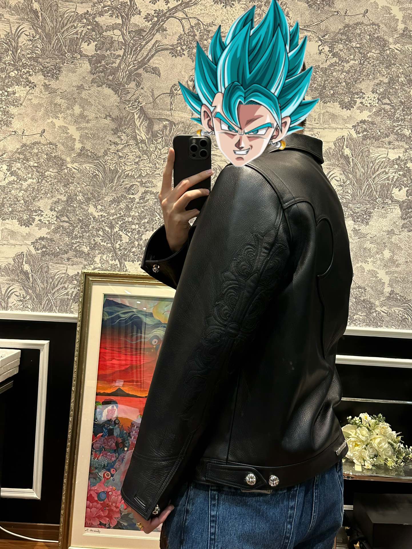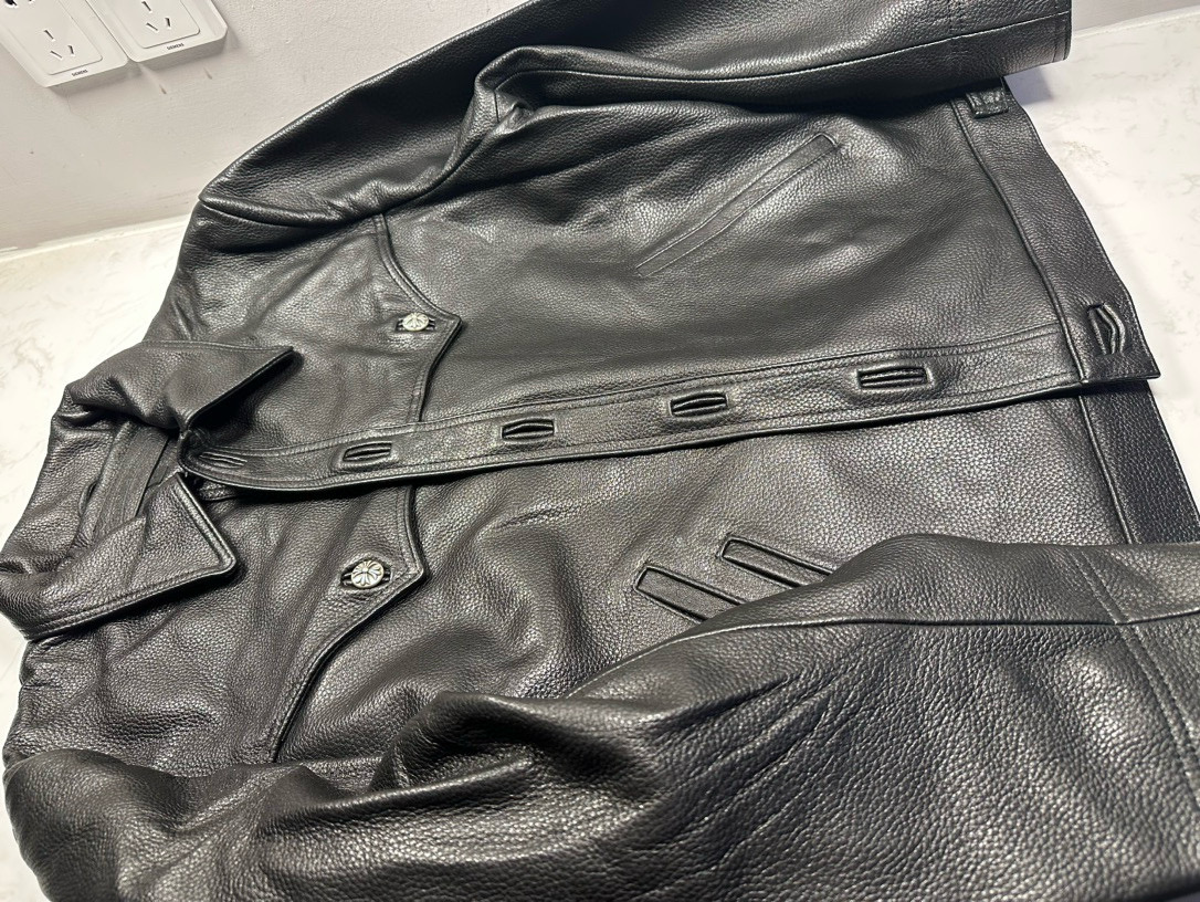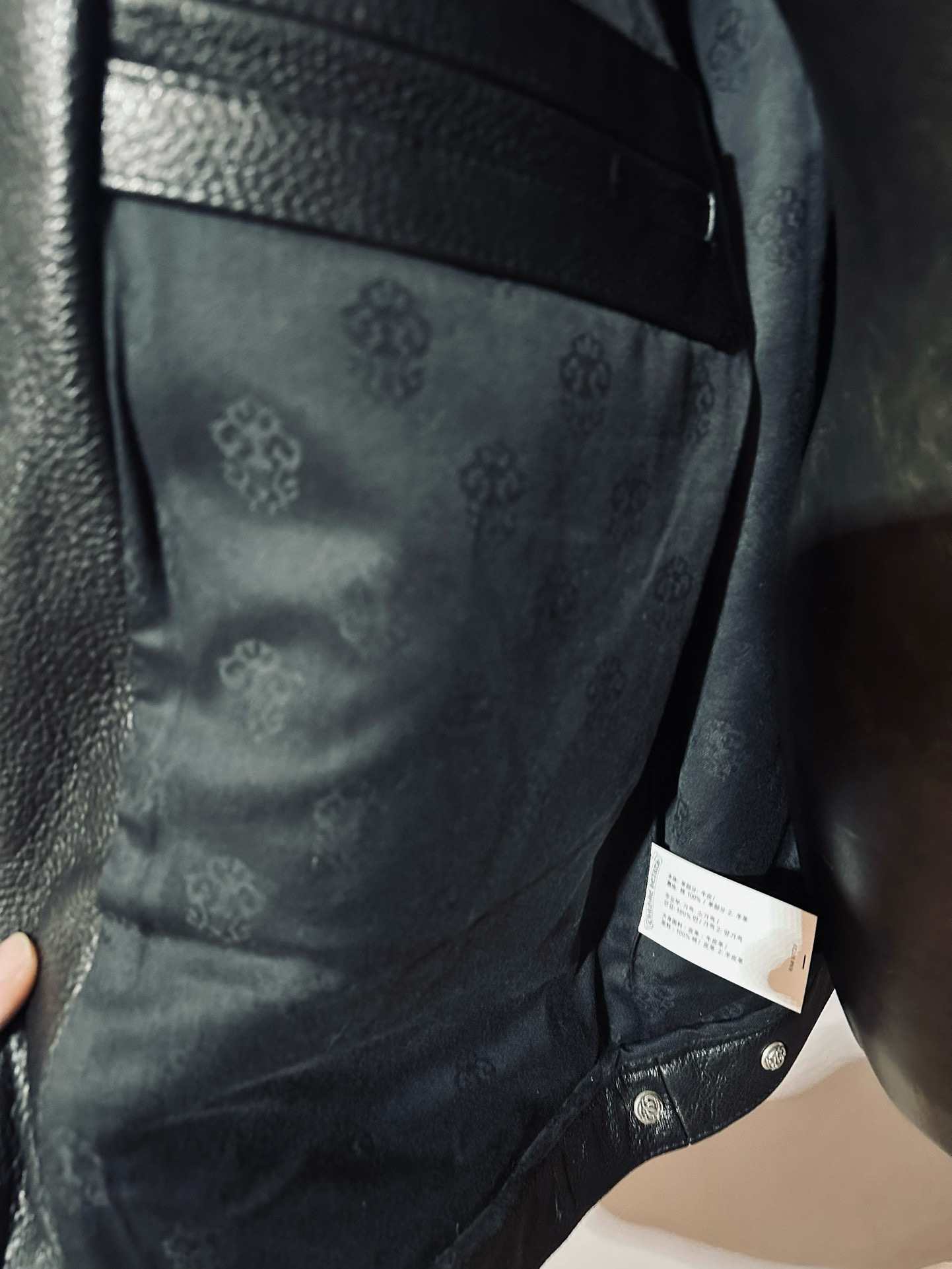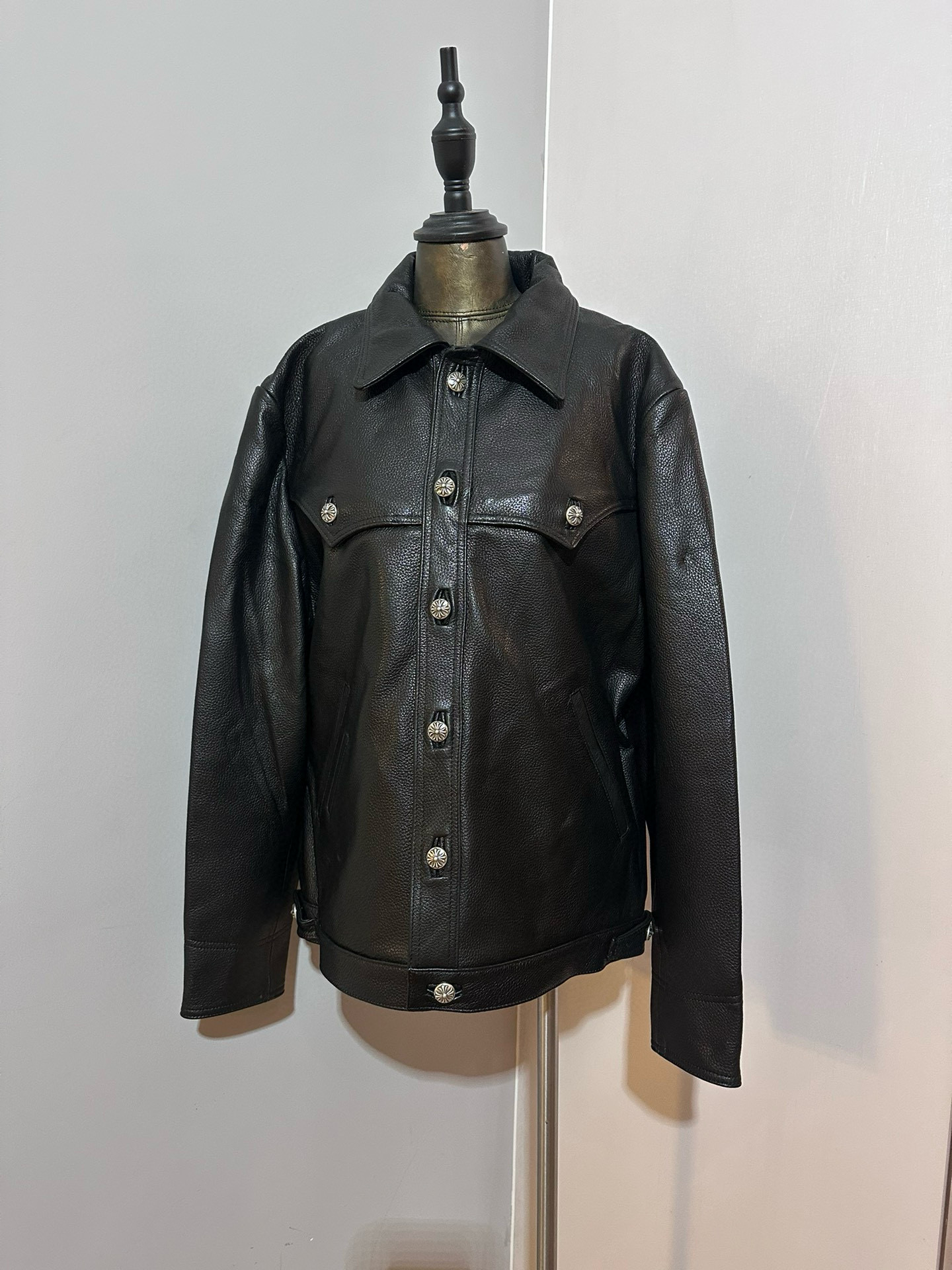 NIGO Chrome Hearts Men's Autumn and Winter Solid Color Cow Leather Single Breasted Long Sleeve Jacket #nigo73972