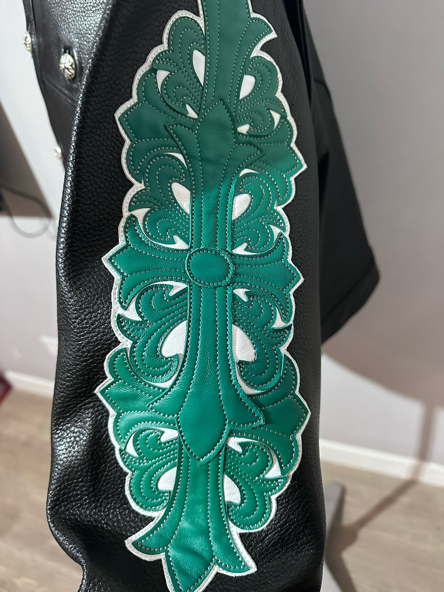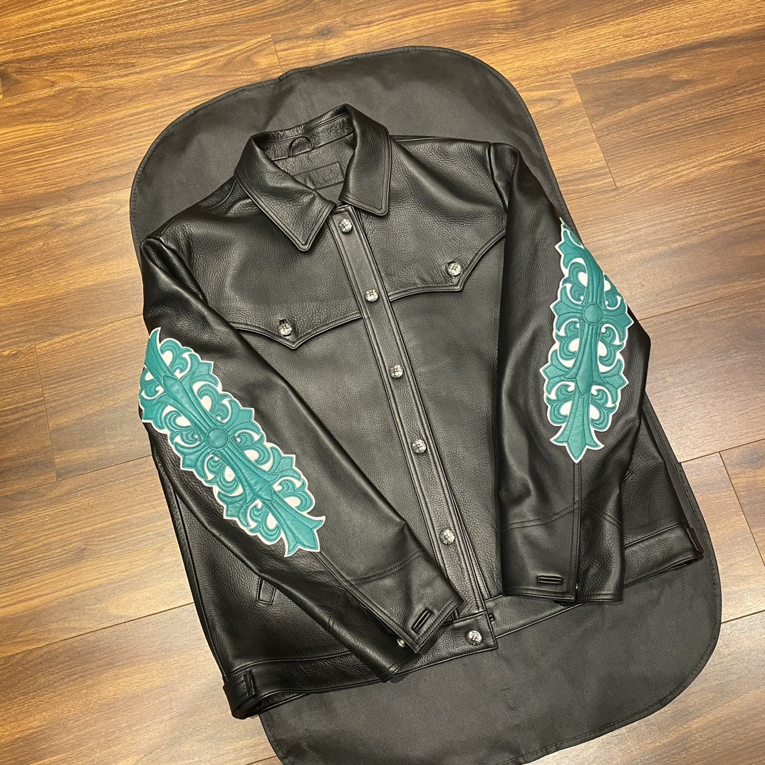 This Chrome Hearts clothing showcases the brand's exceptional craftsmanship and attention to detail. Crafted from premium leather, this piece combines timeless luxury with modern style.