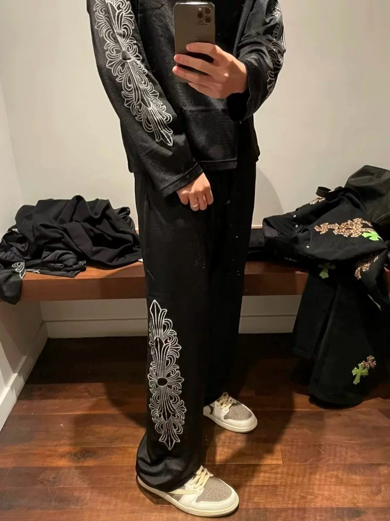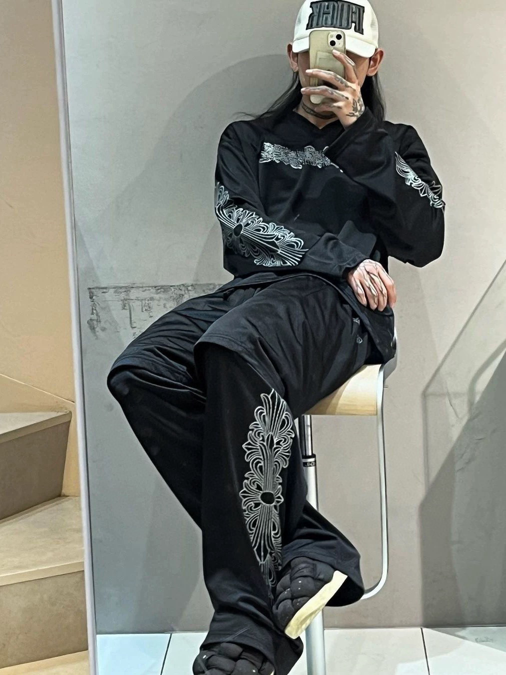 NIGO Chrome Hearts Men's Autumn and Winter Solid Color Long Sleeve T-Shirt Stretch Sweatpants Pants Set Suit #nigo76427