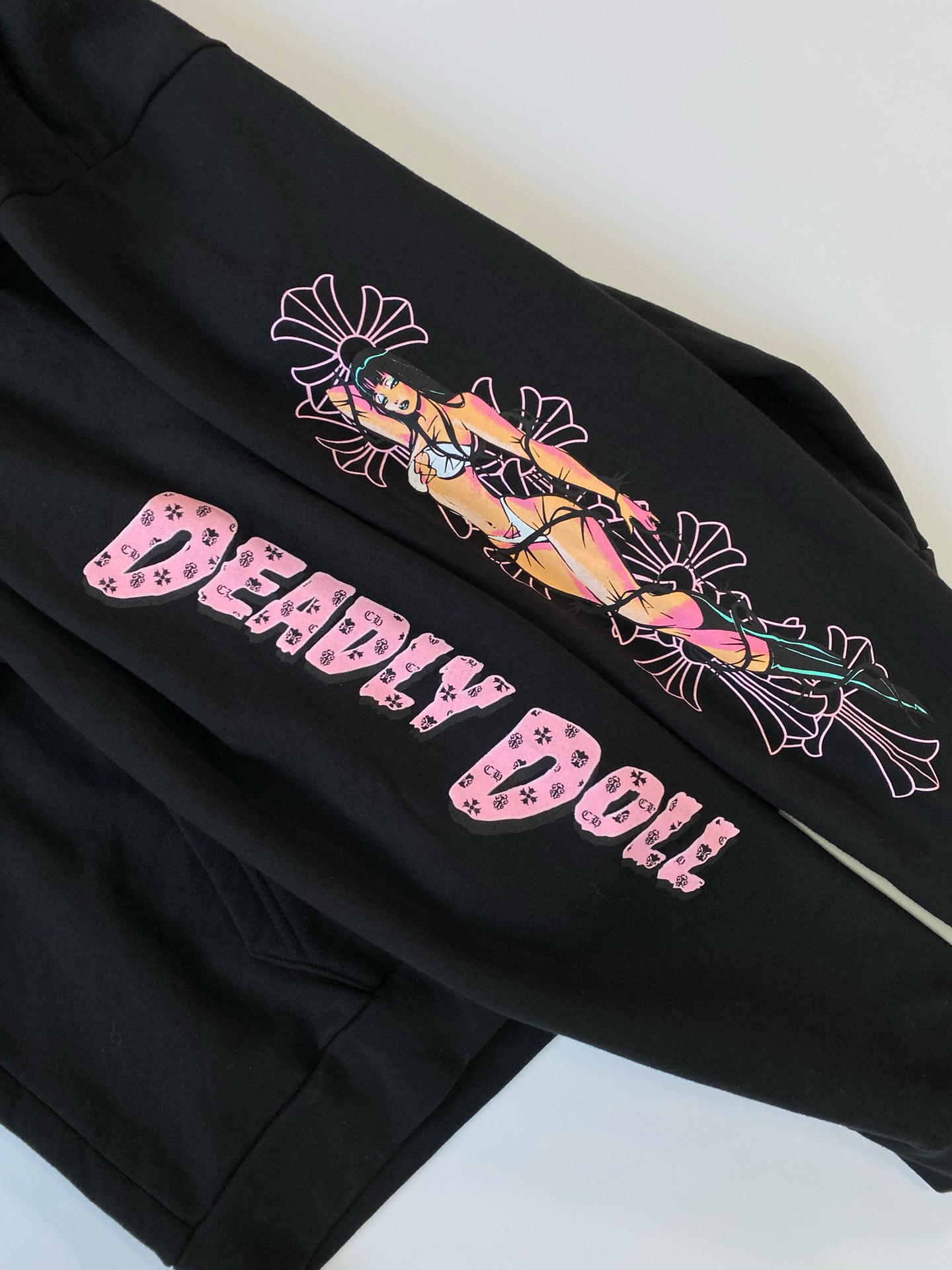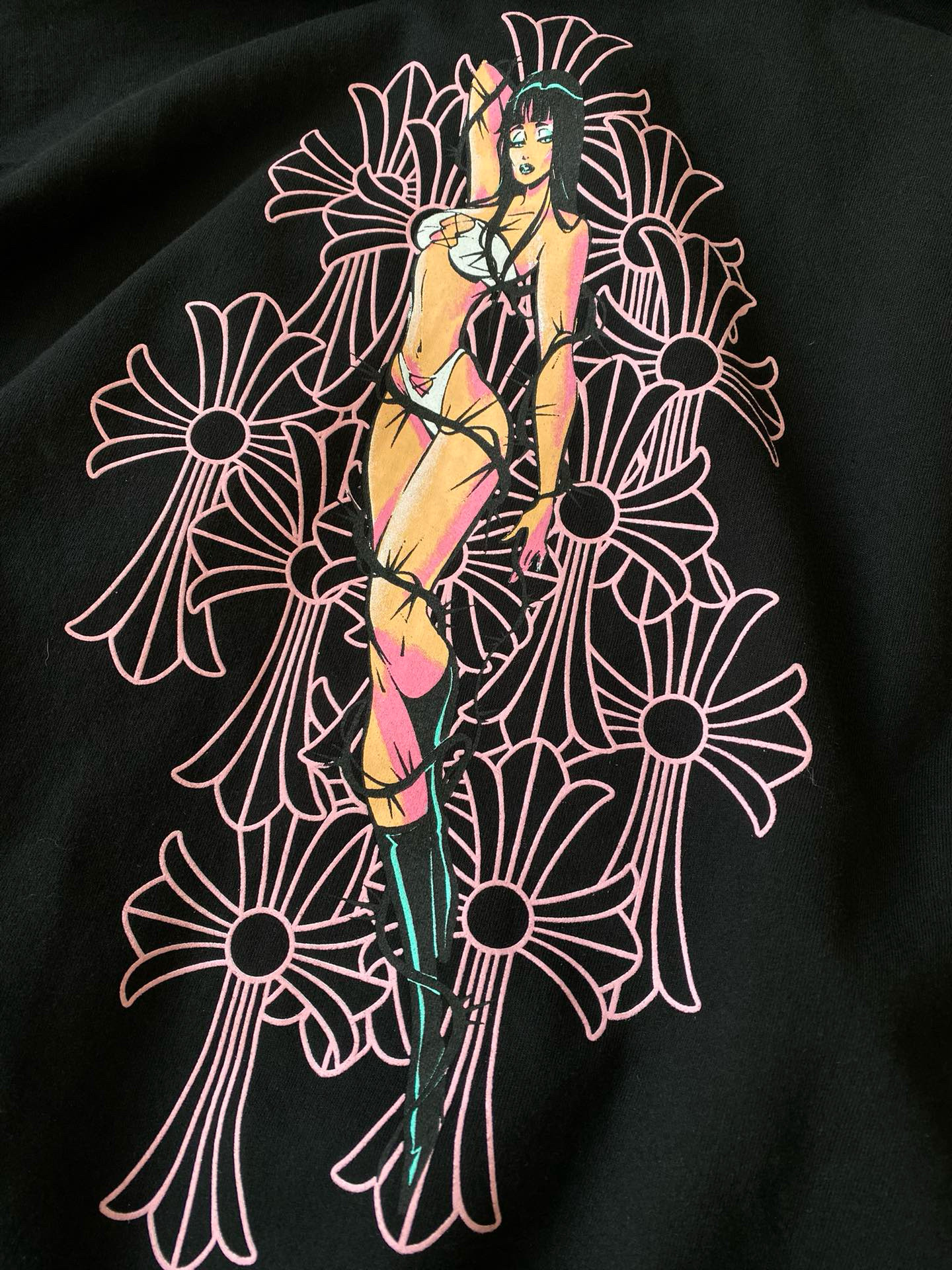 This Chrome Hearts clothing showcases the brand's exceptional craftsmanship and attention to detail. in a stunning black colorway, this piece combines timeless luxury with modern style.