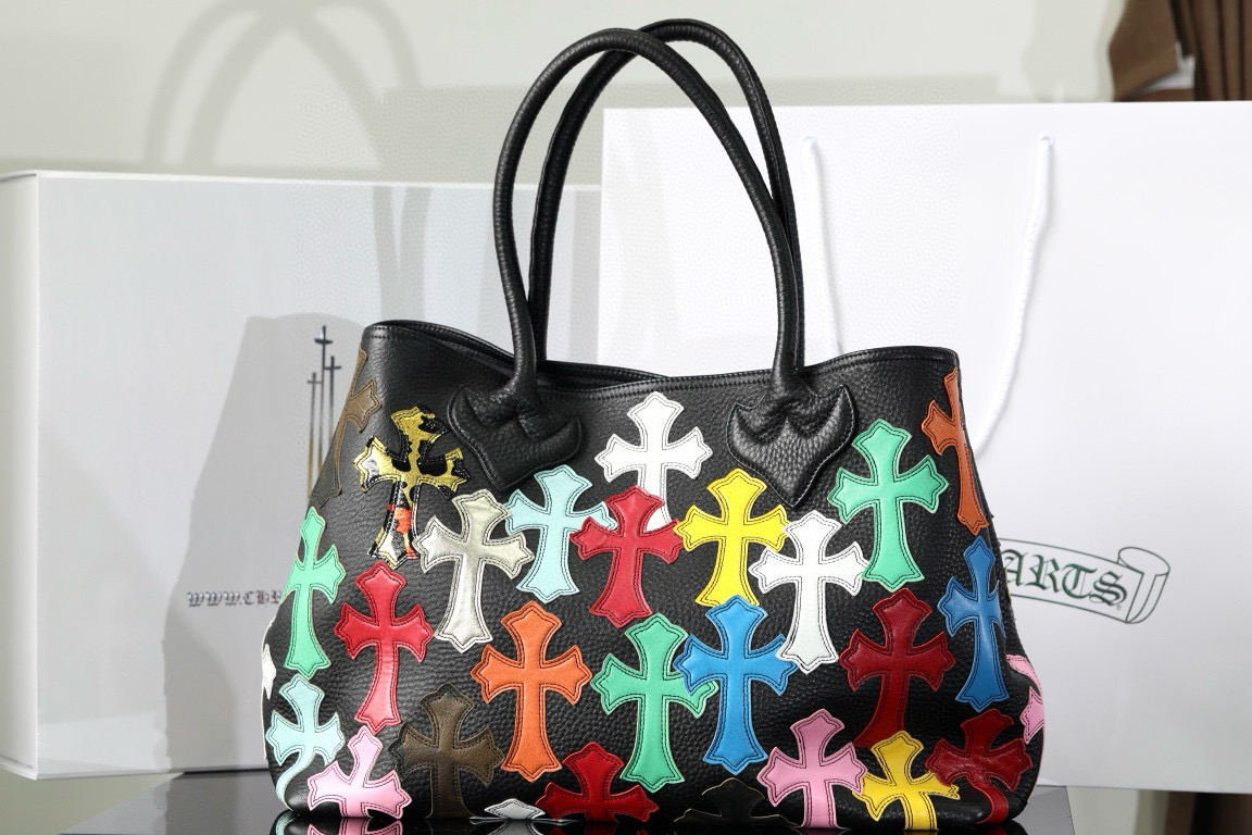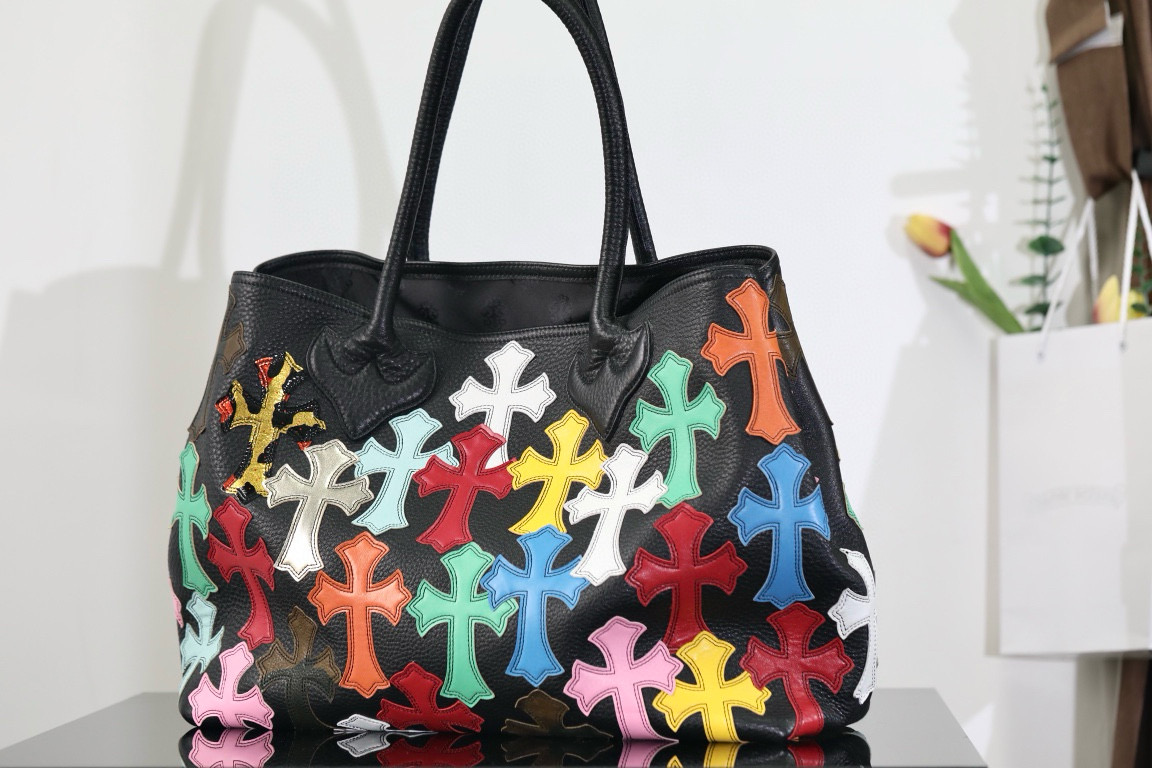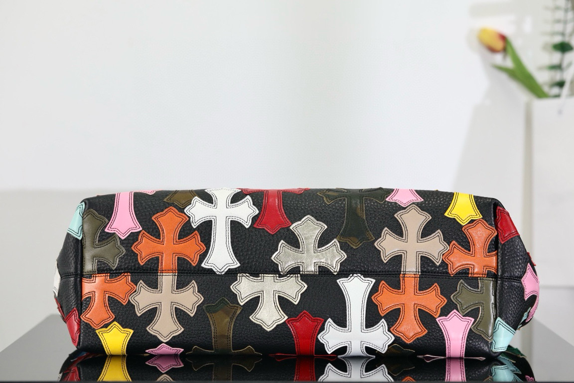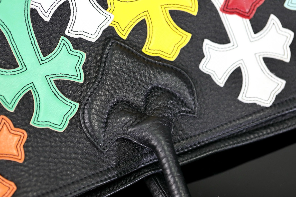 NIGO Chrome Hearts Men's Fashion Colorful Cross Shopping Bag Black Leather Handbag #nigo98516