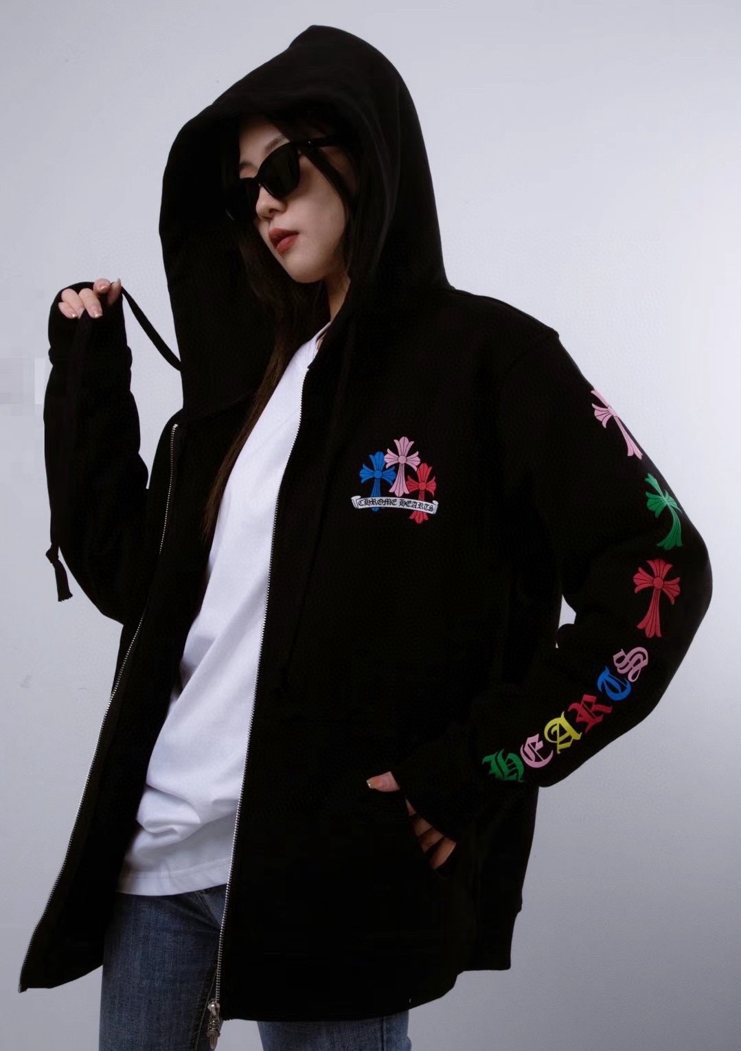 NIGO Chrome Hearts Men's Spring and Fall Solid Color Logo Printed Zipper Long Sleeve Hooded Jacket #nigo73629