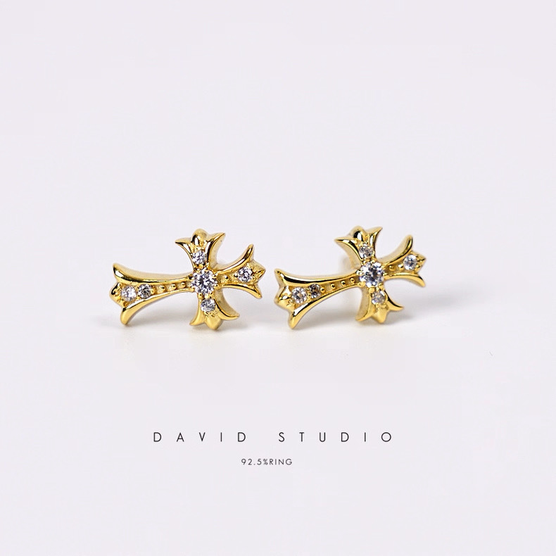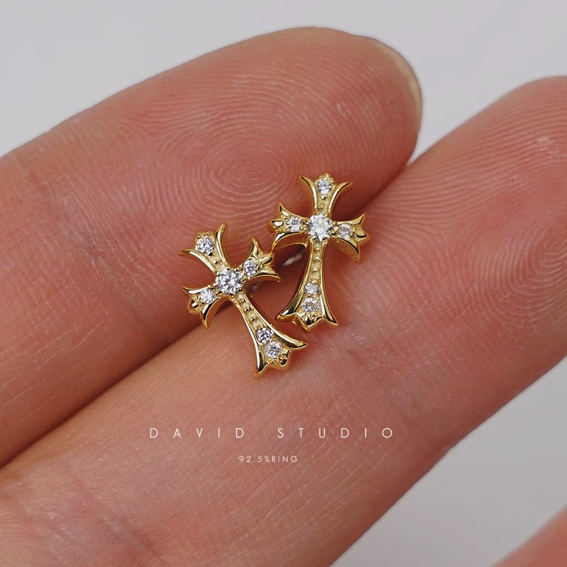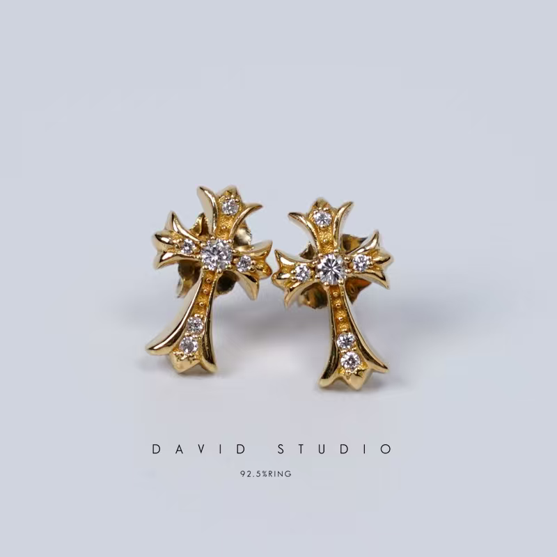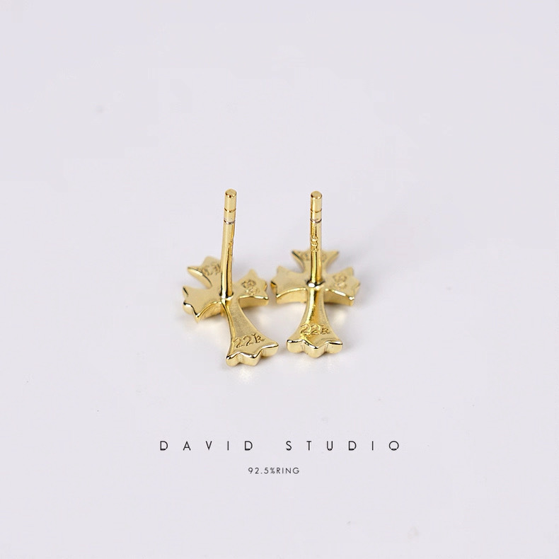 NIGO Chrome Hearts Sterling Silver Gold Plated Cross Earrings #nigo336940