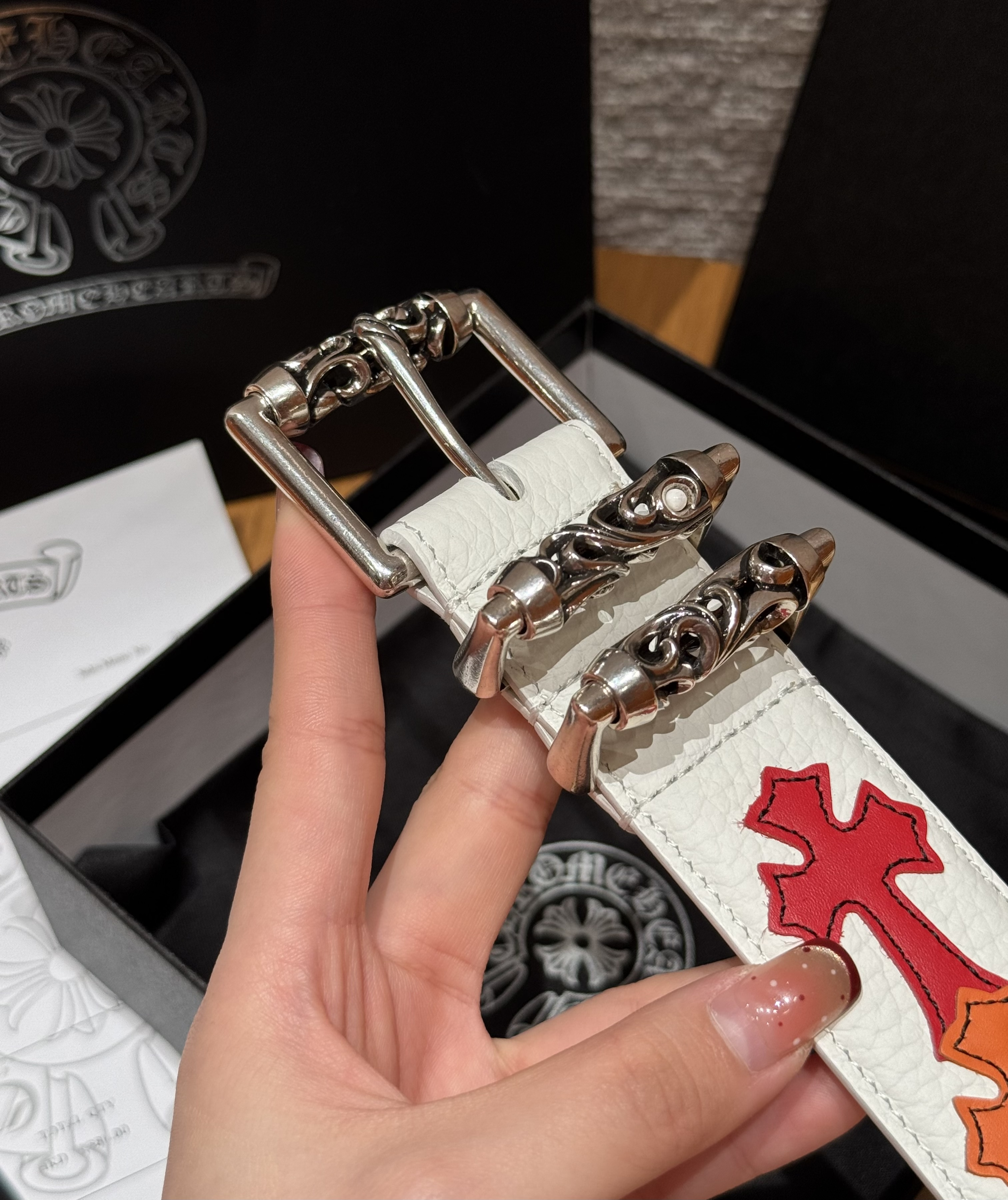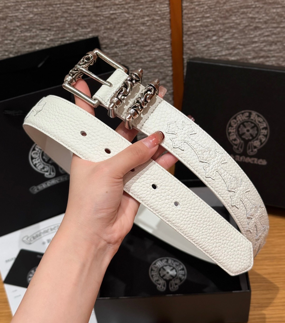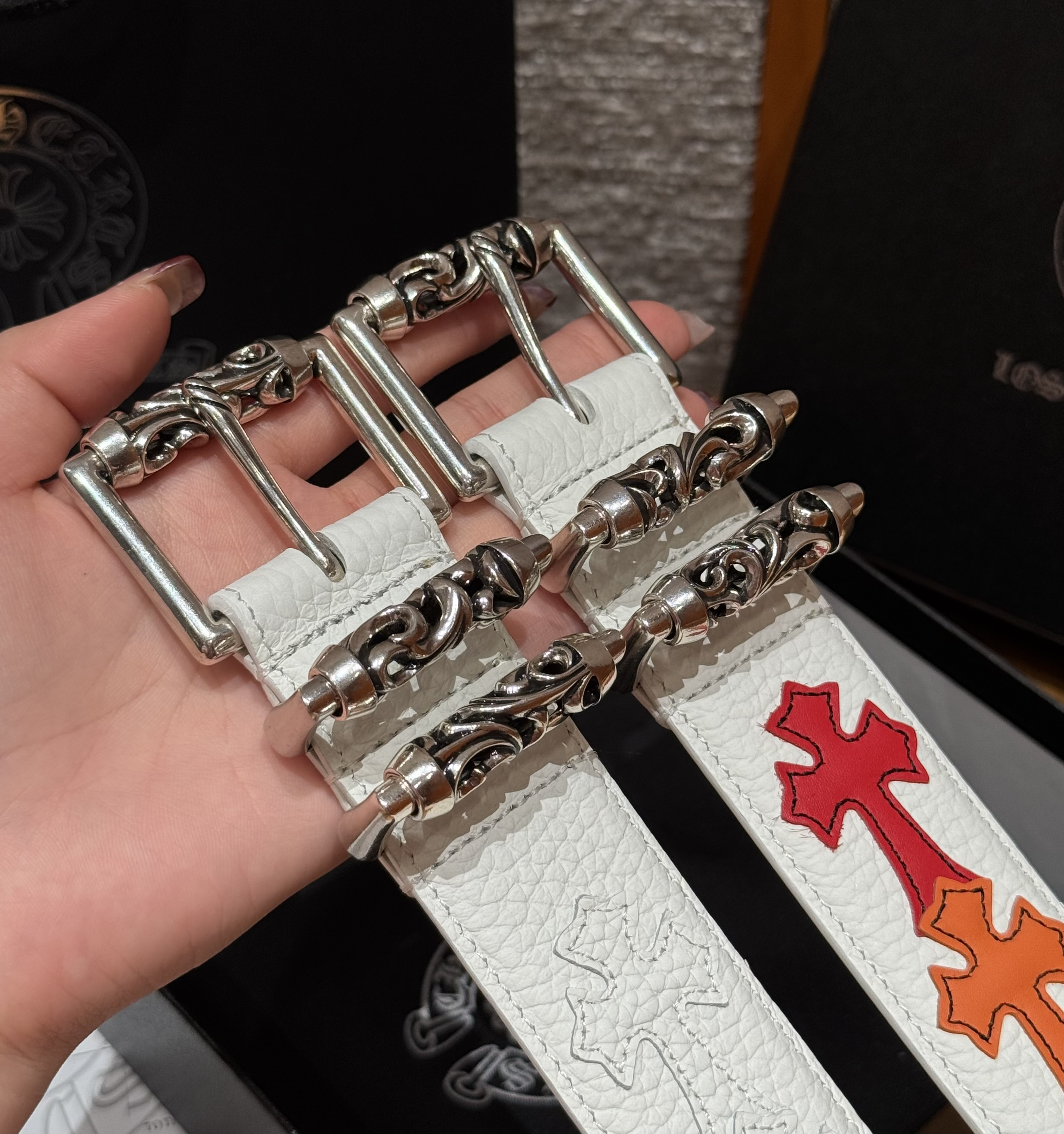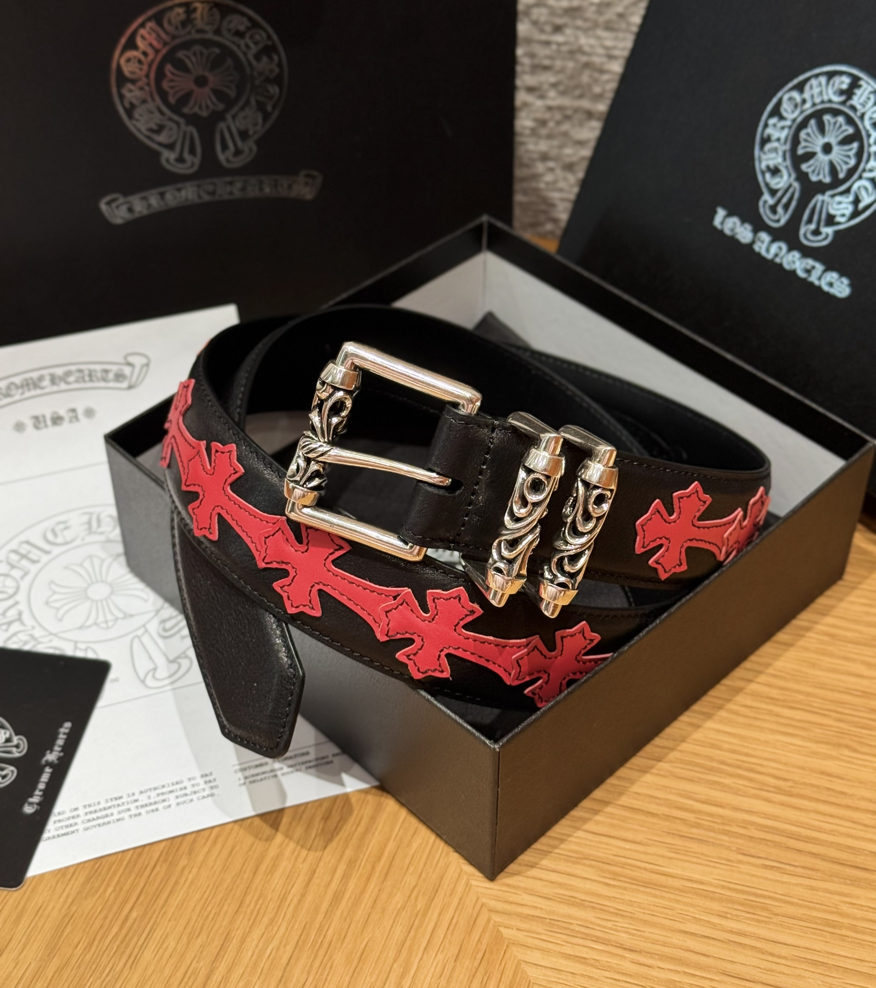 This Chrome Hearts belt showcases the brand's exceptional craftsmanship and attention to detail. this piece combines timeless luxury with modern style.