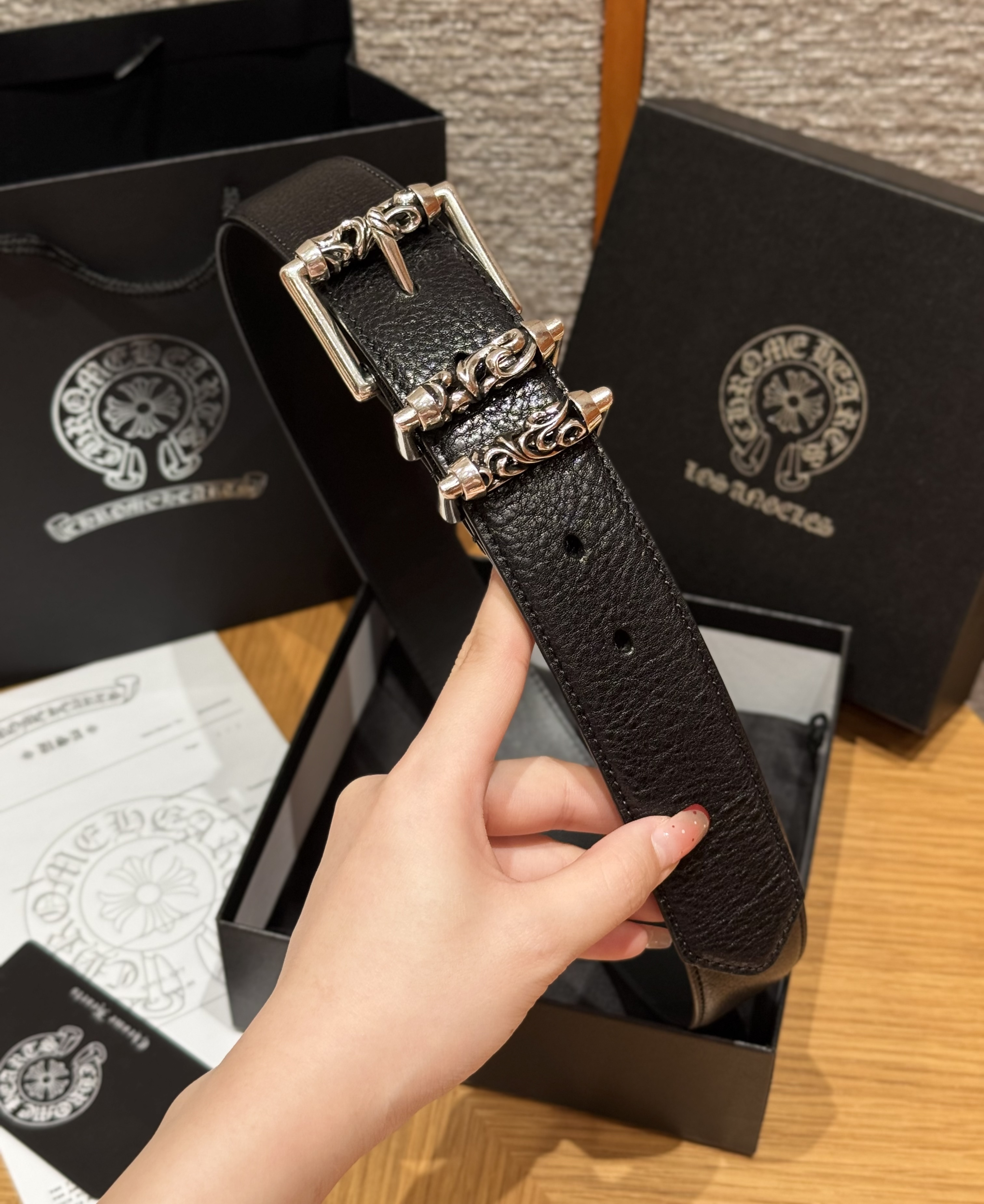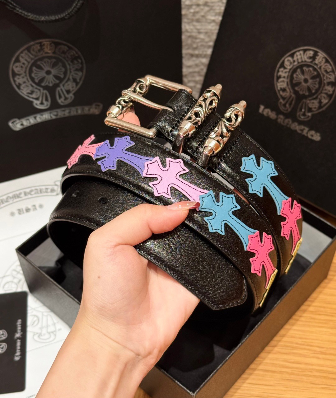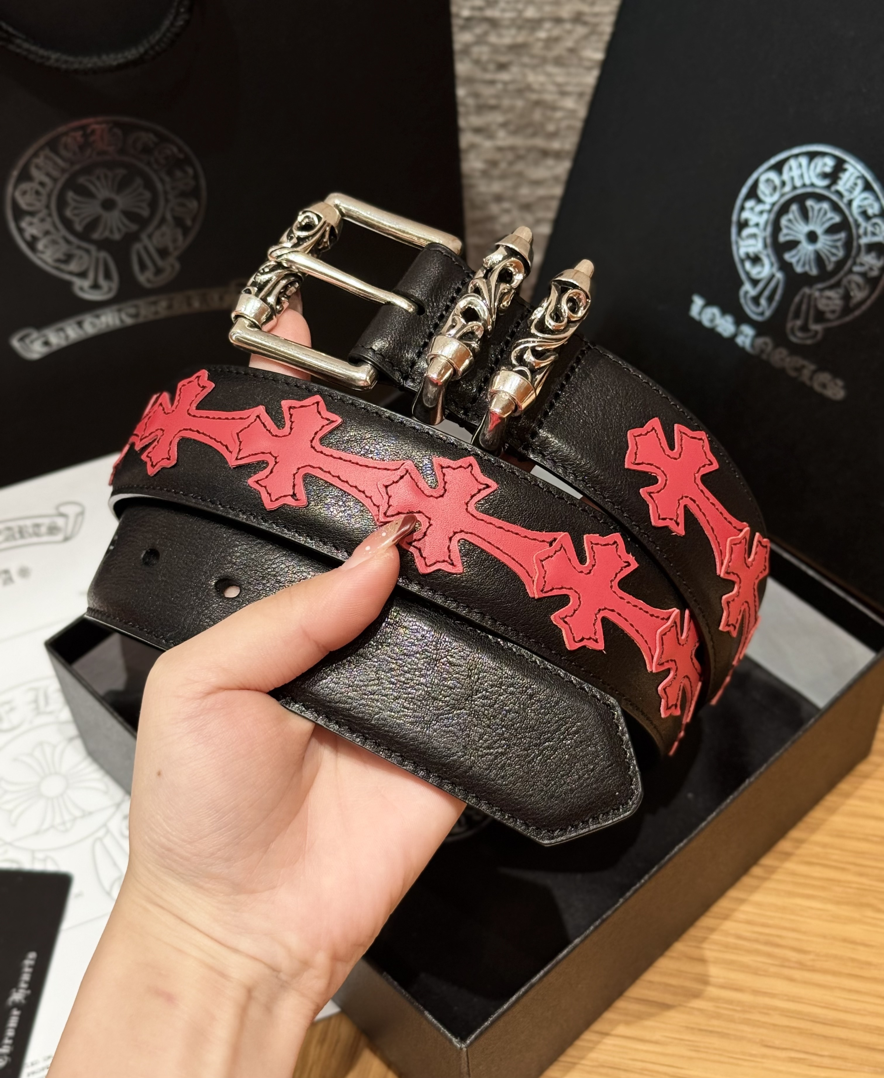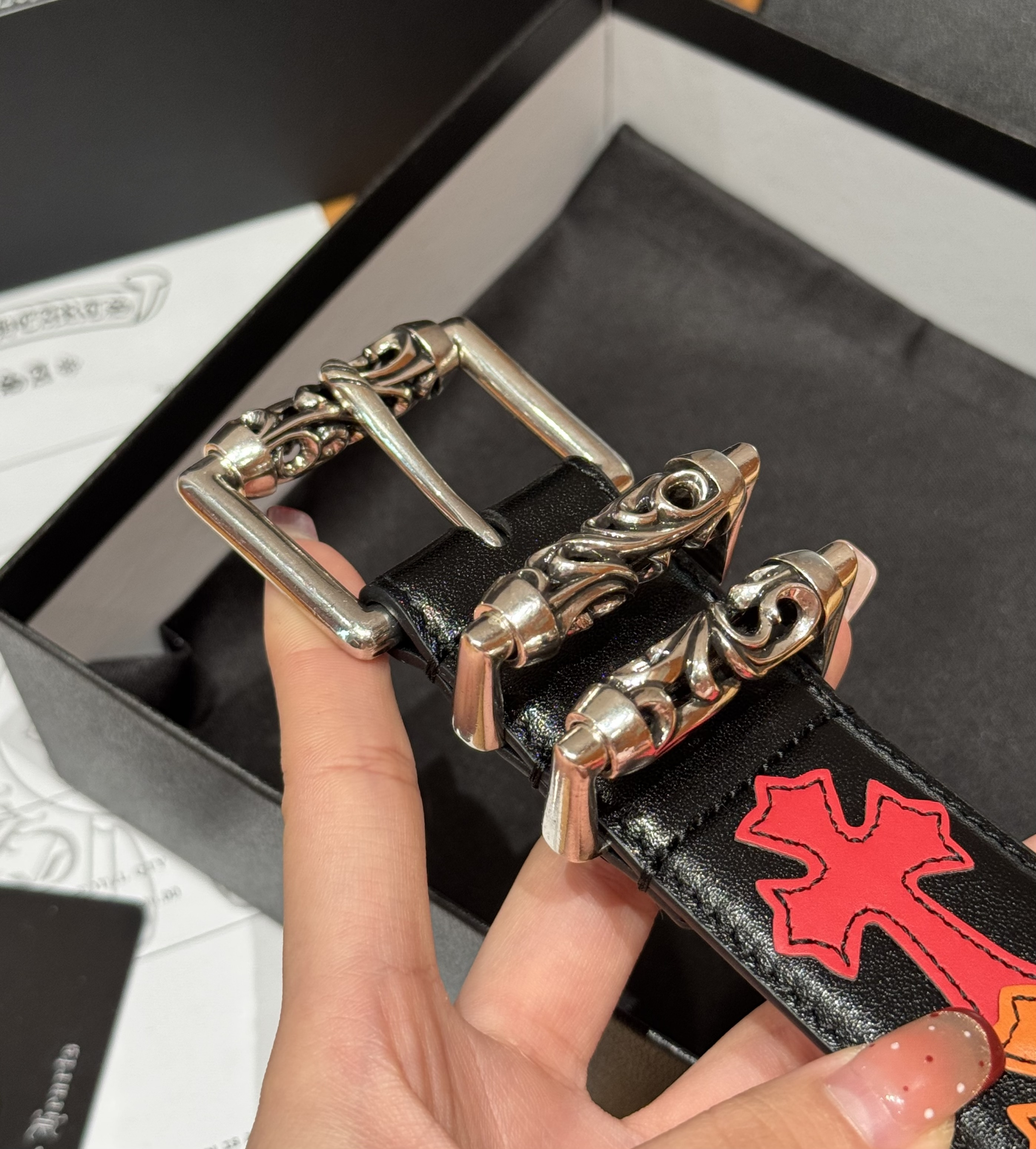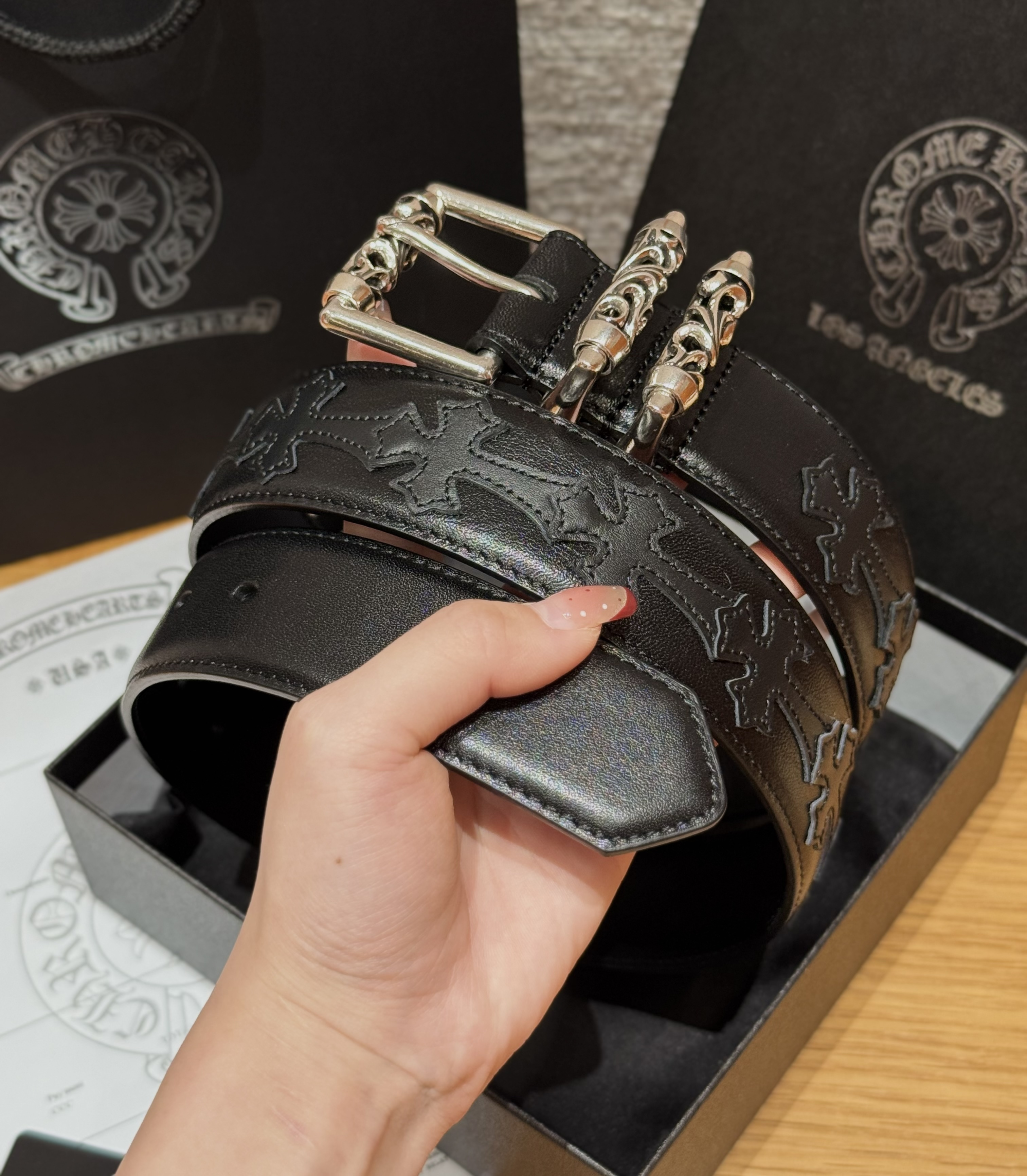 This Chrome Hearts belt showcases the brand's exceptional craftsmanship and attention to detail. this piece combines timeless luxury with modern style.