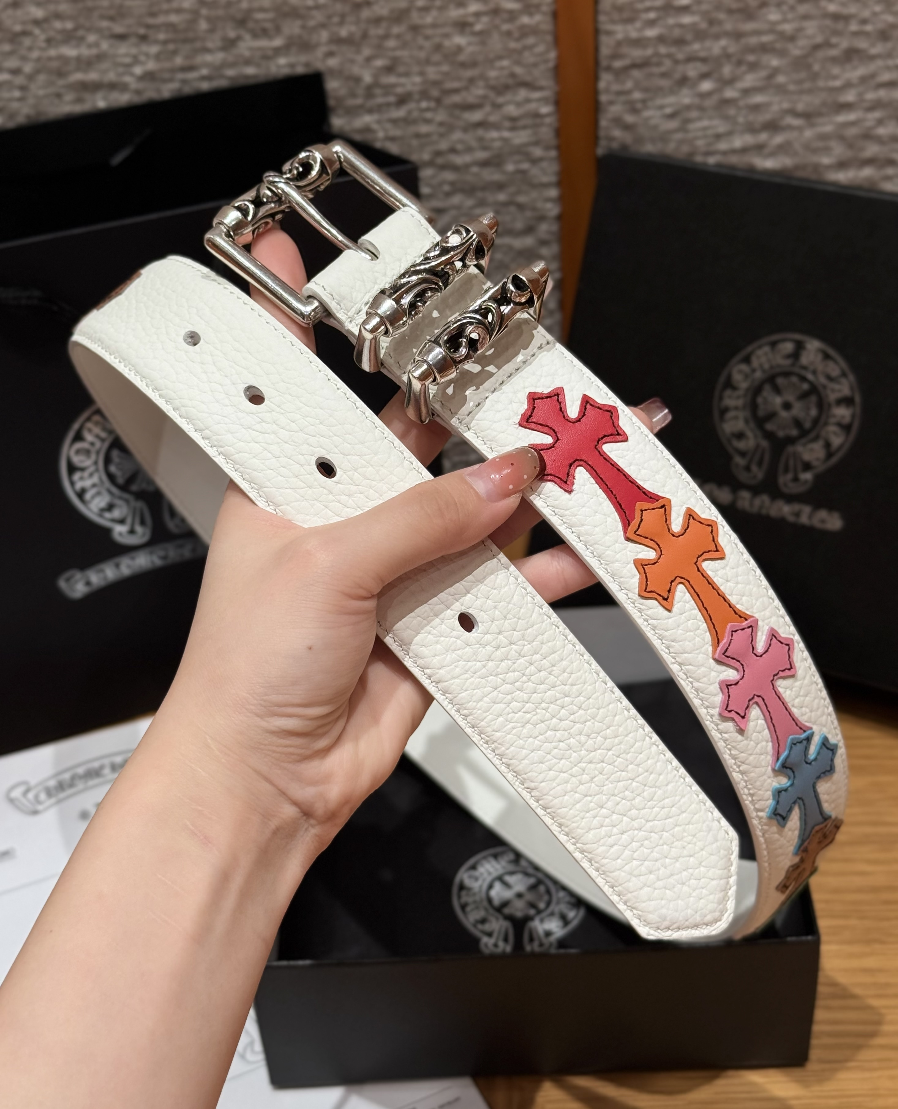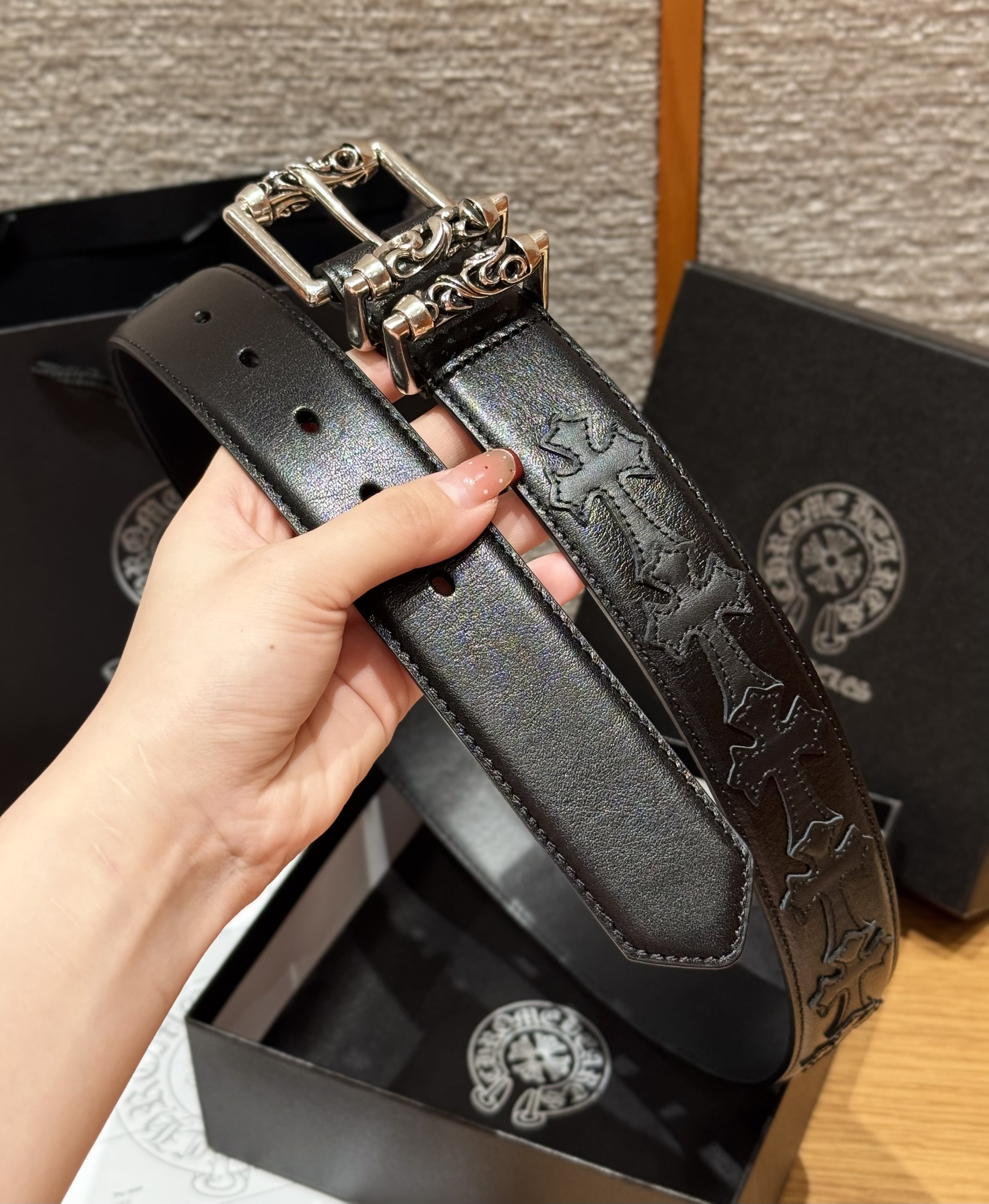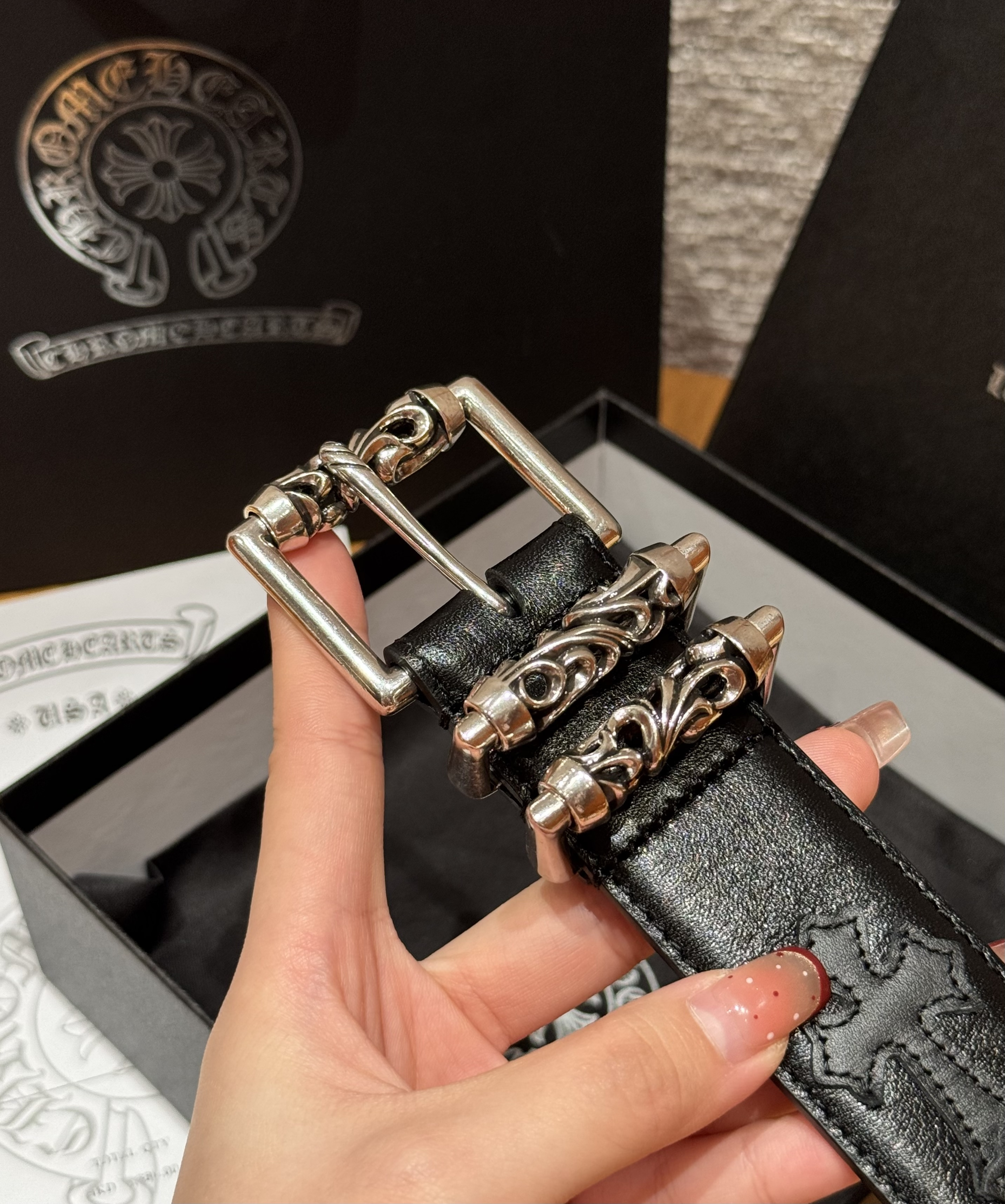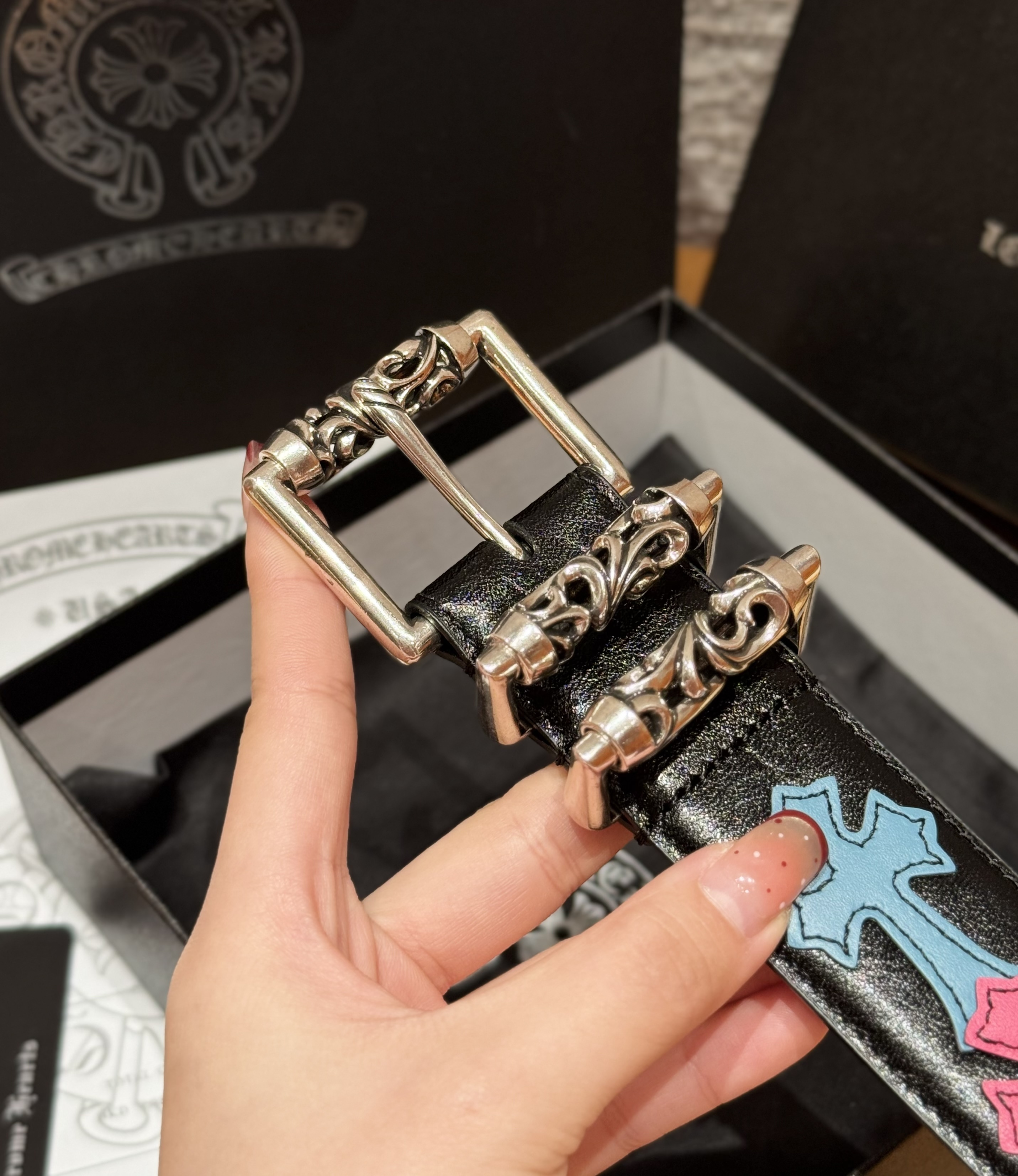 This Chrome Hearts belt showcases the brand's exceptional craftsmanship and attention to detail. this piece combines timeless luxury with modern style.
