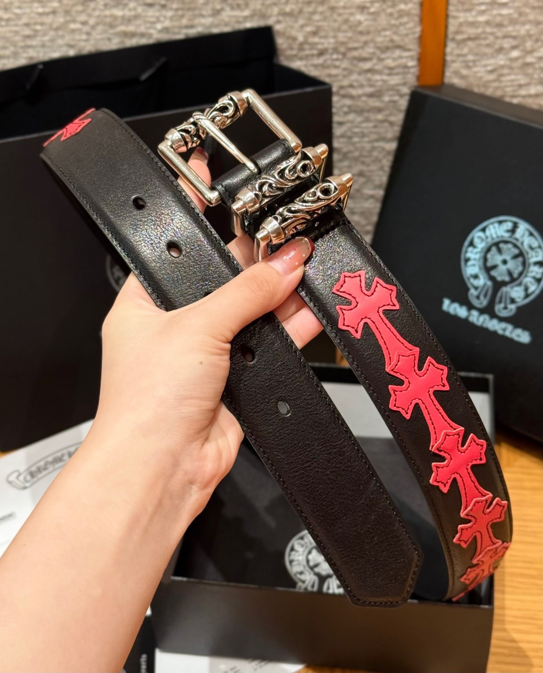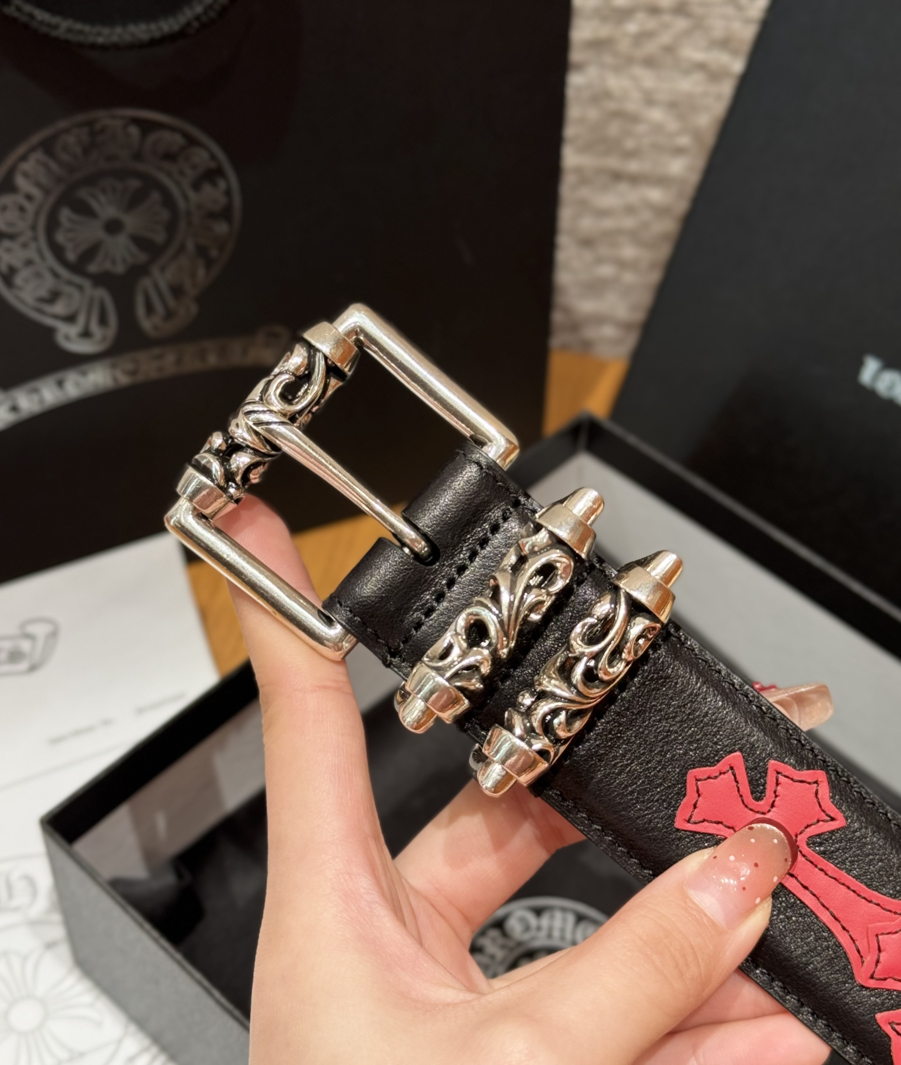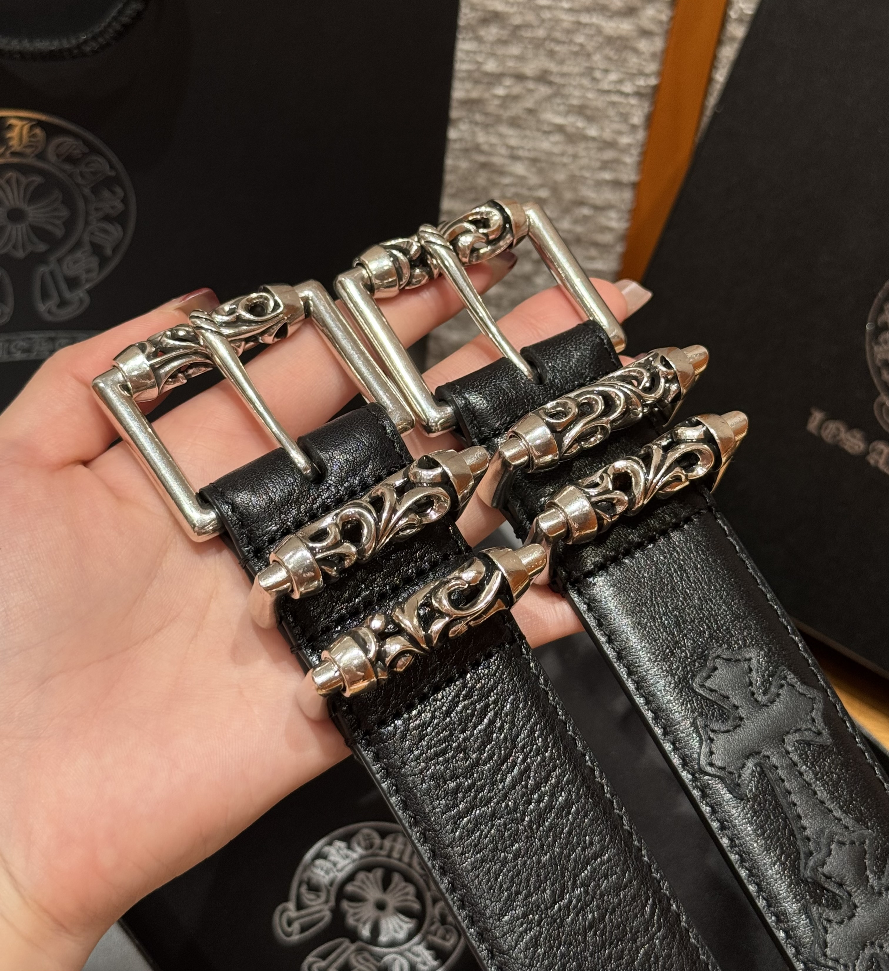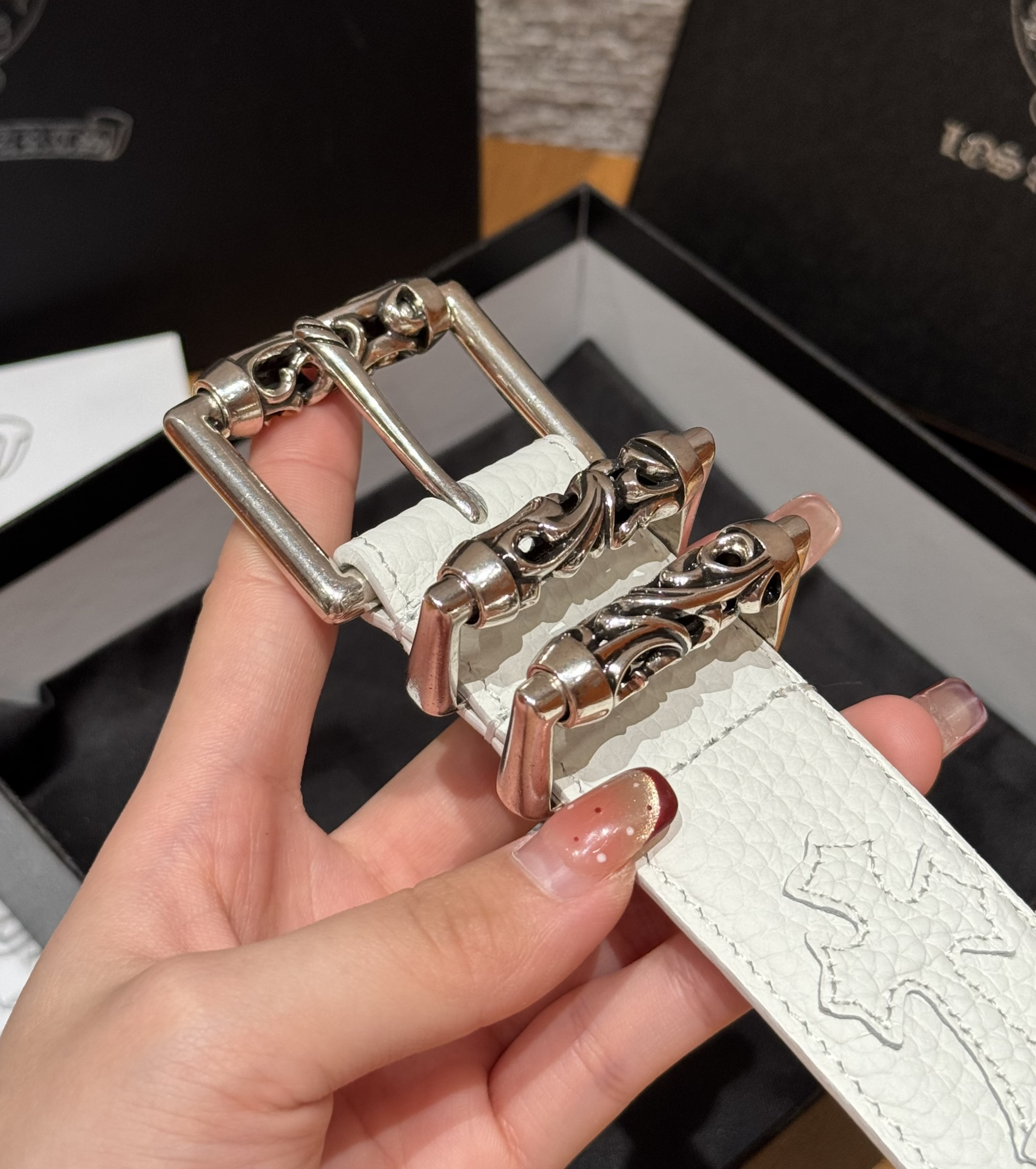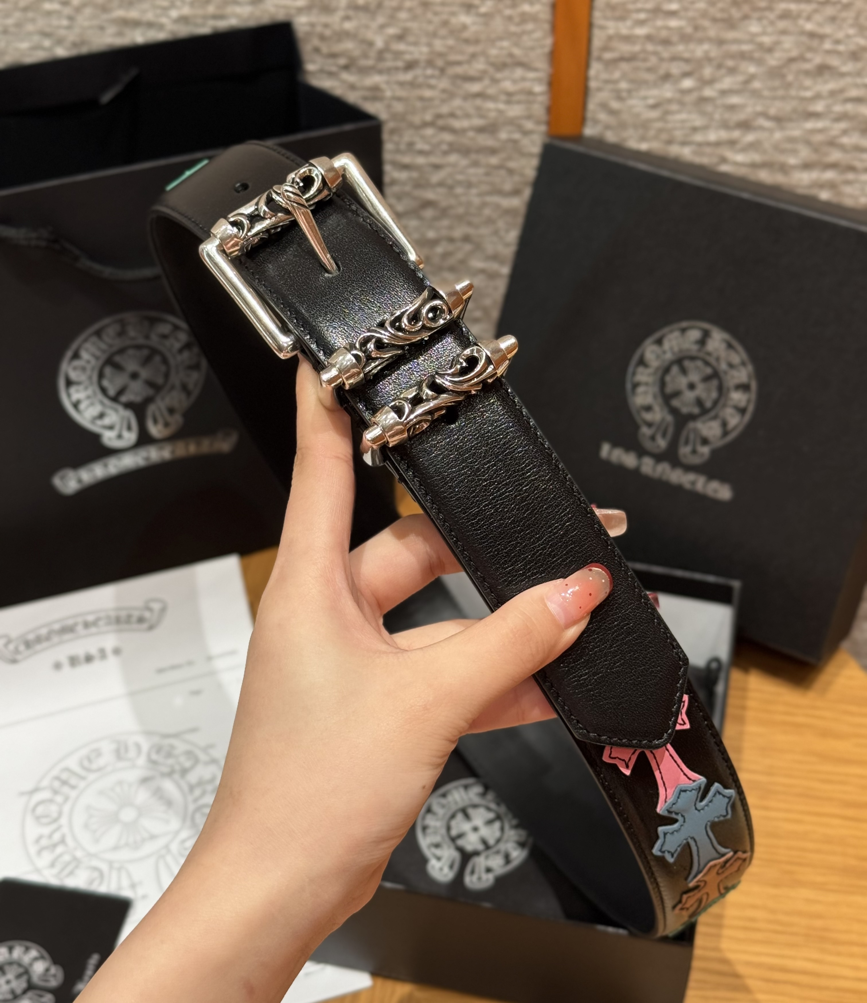 This Chrome Hearts belt showcases the brand's exceptional craftsmanship and attention to detail. this piece combines timeless luxury with modern style.