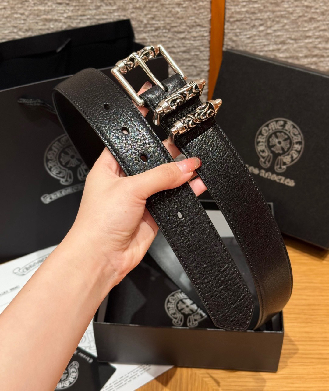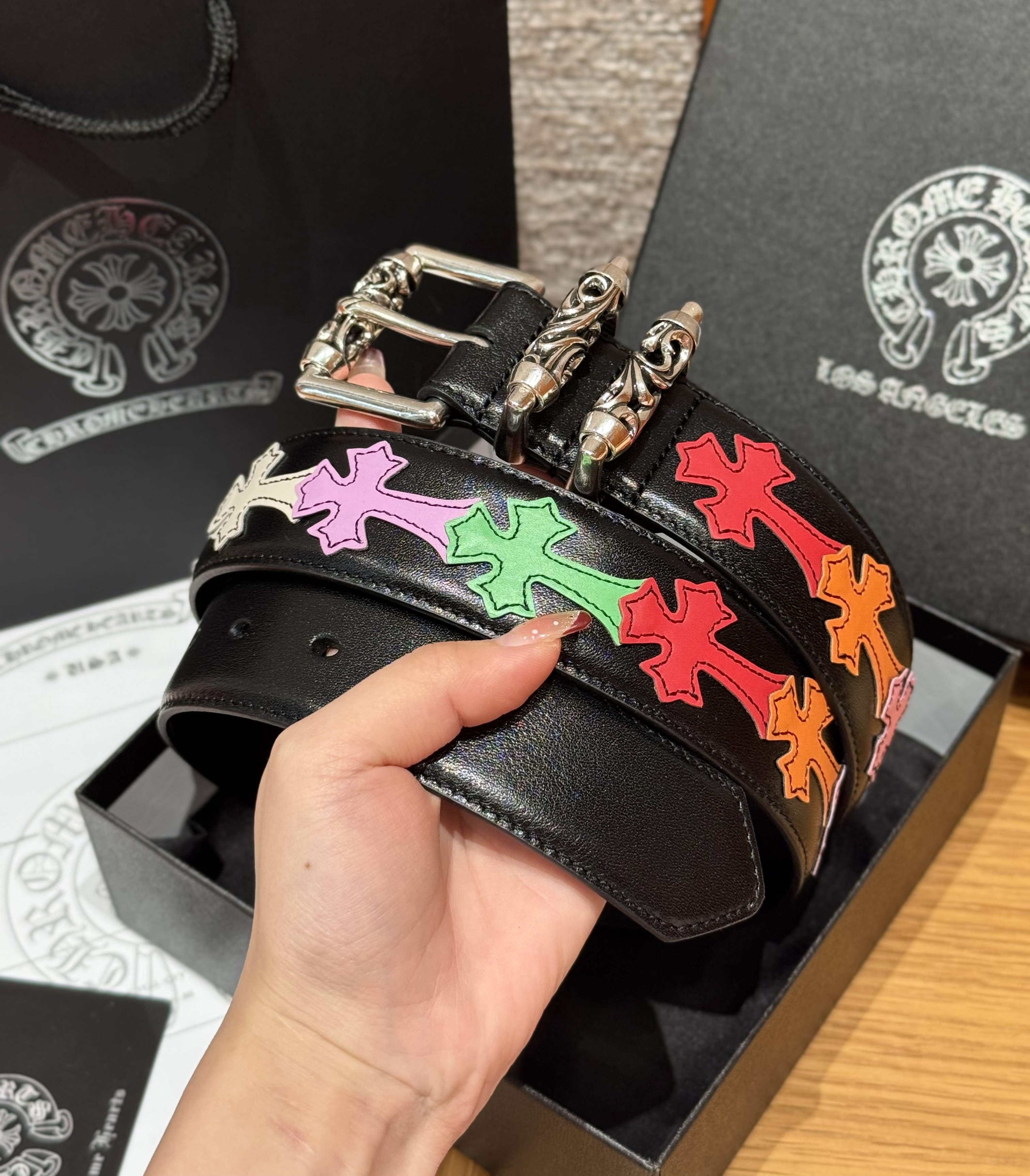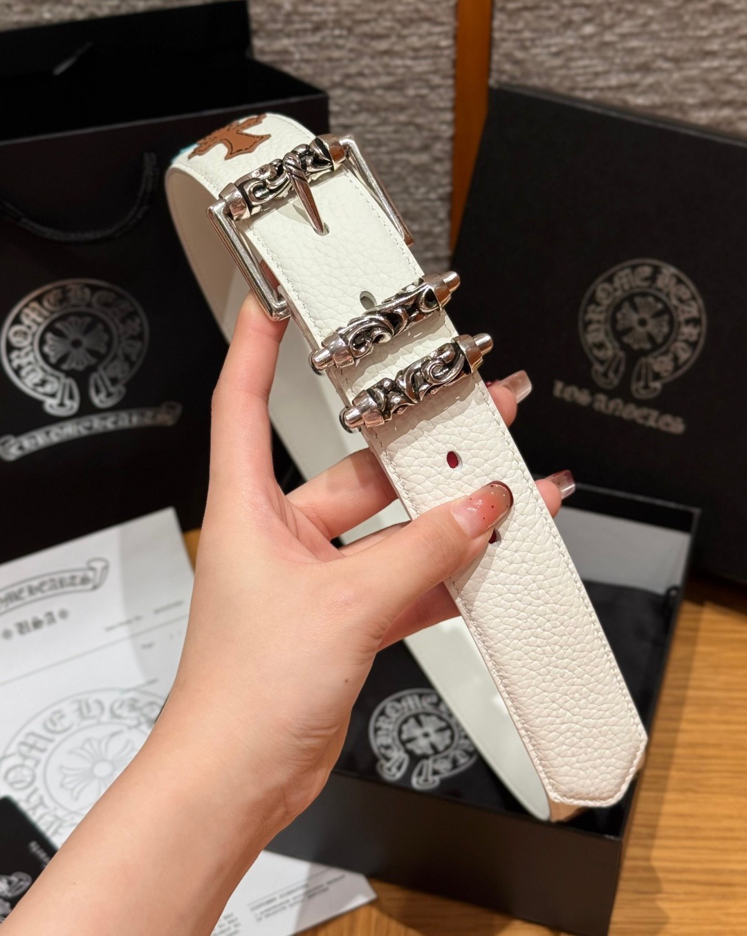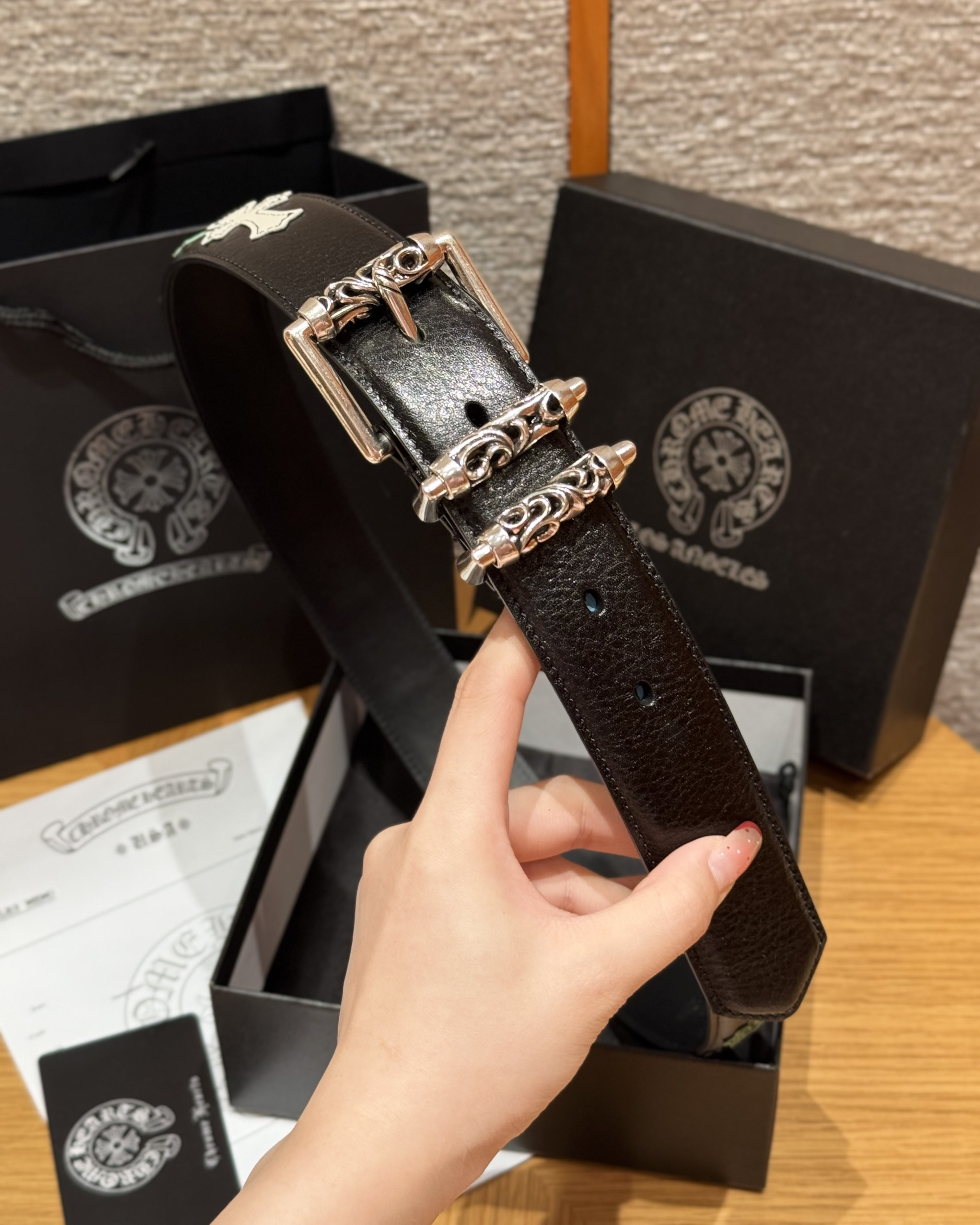 This Chrome Hearts belt showcases the brand's exceptional craftsmanship and attention to detail. this piece combines timeless luxury with modern style.