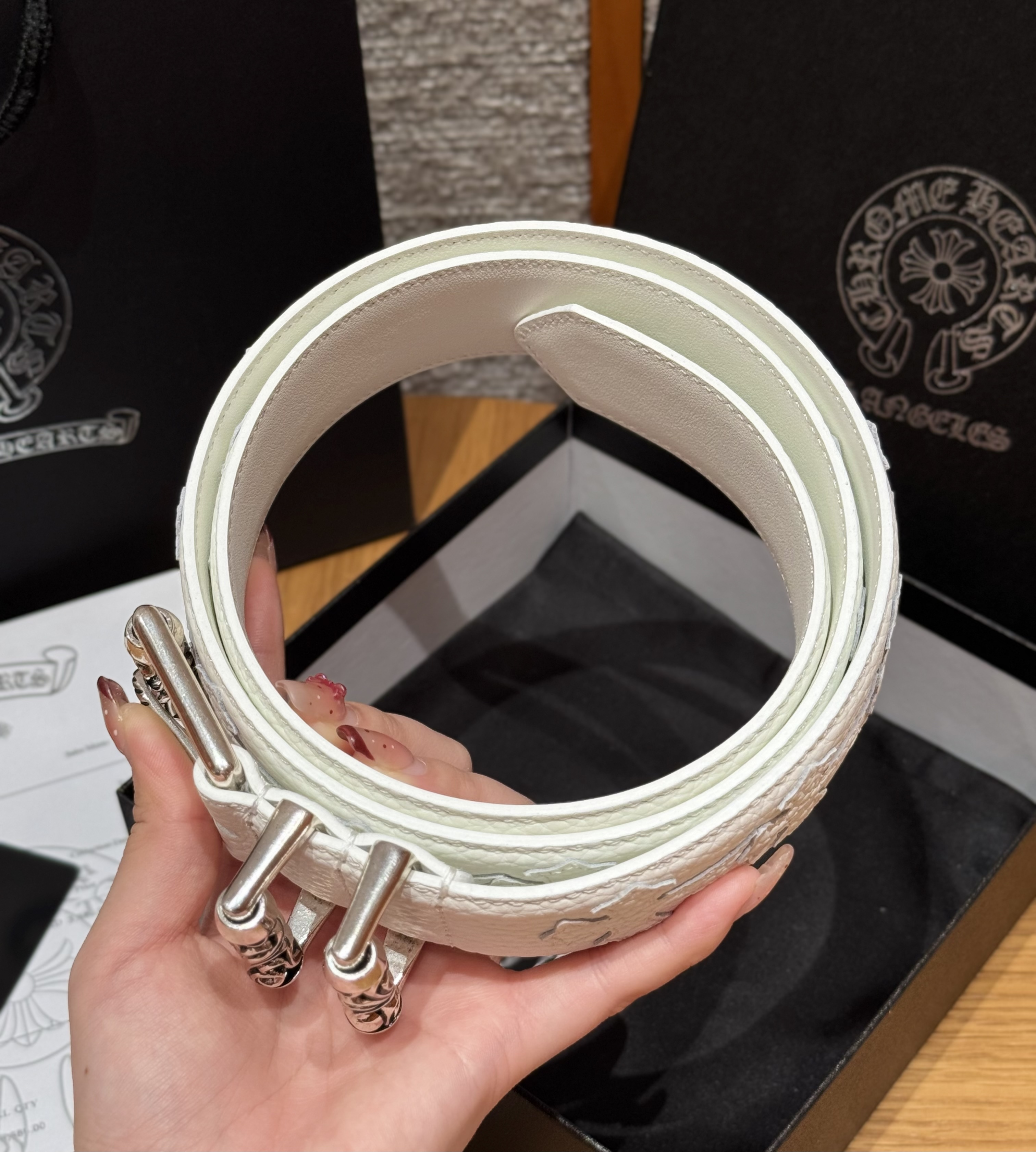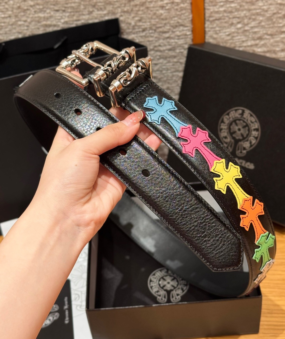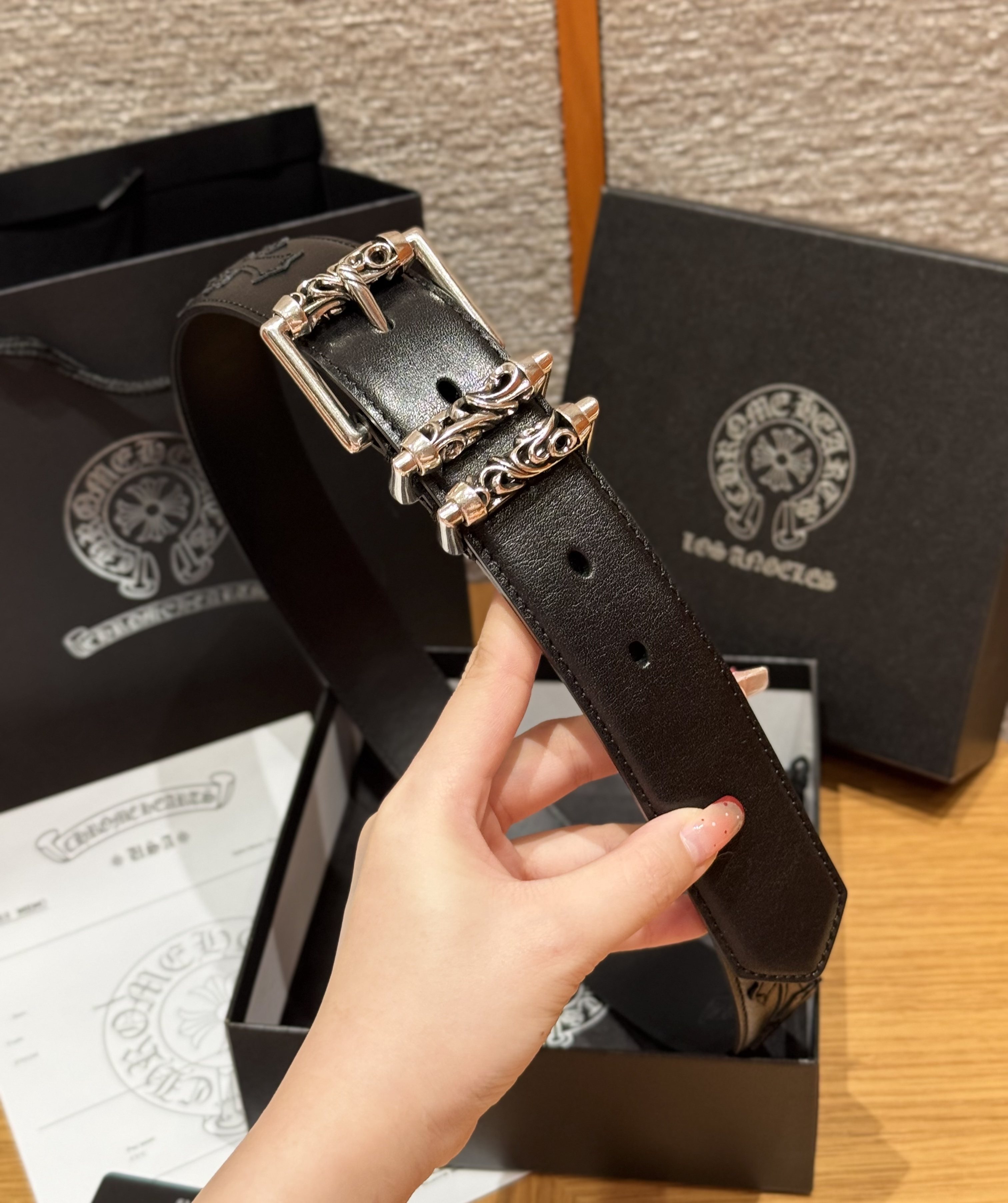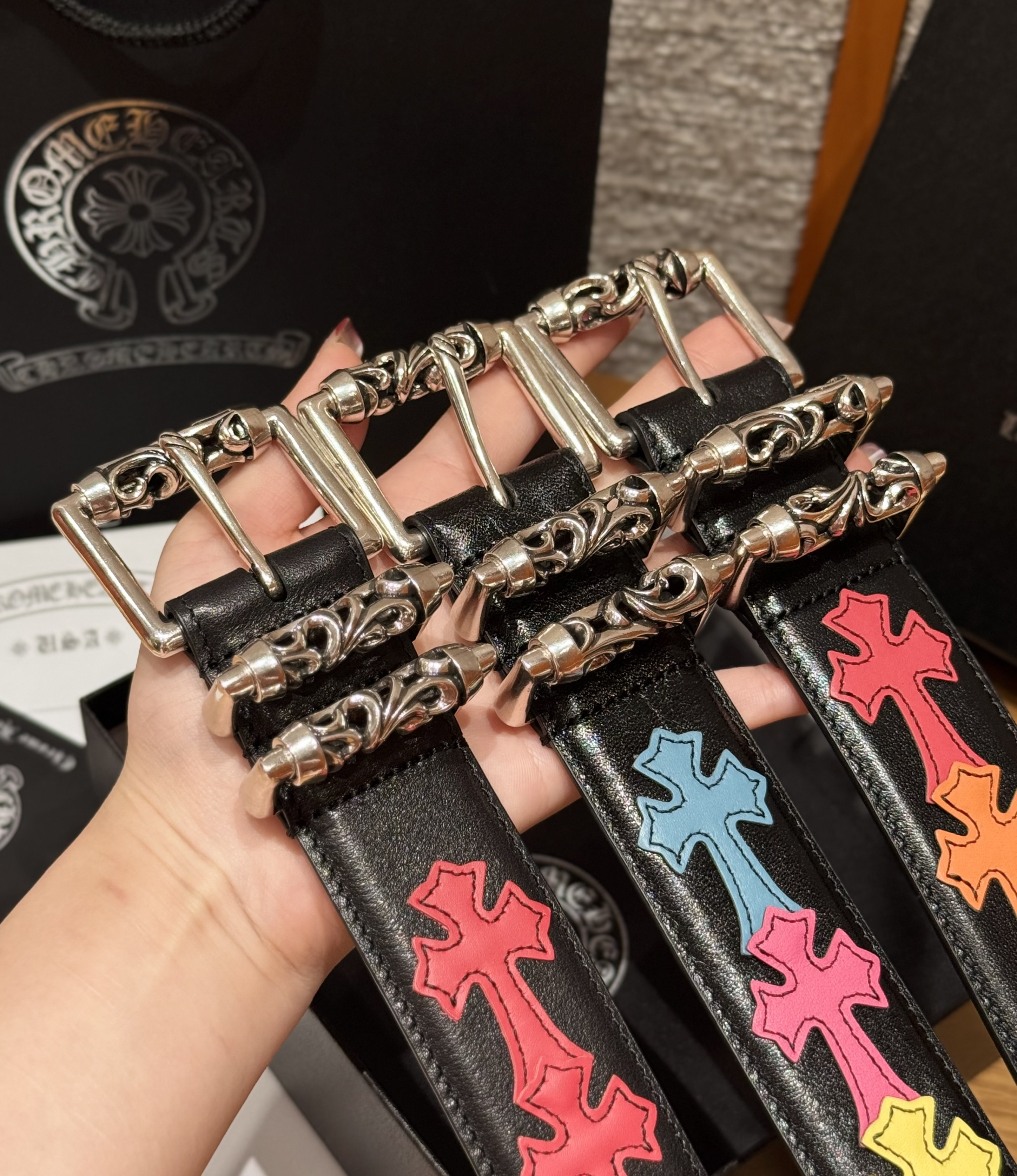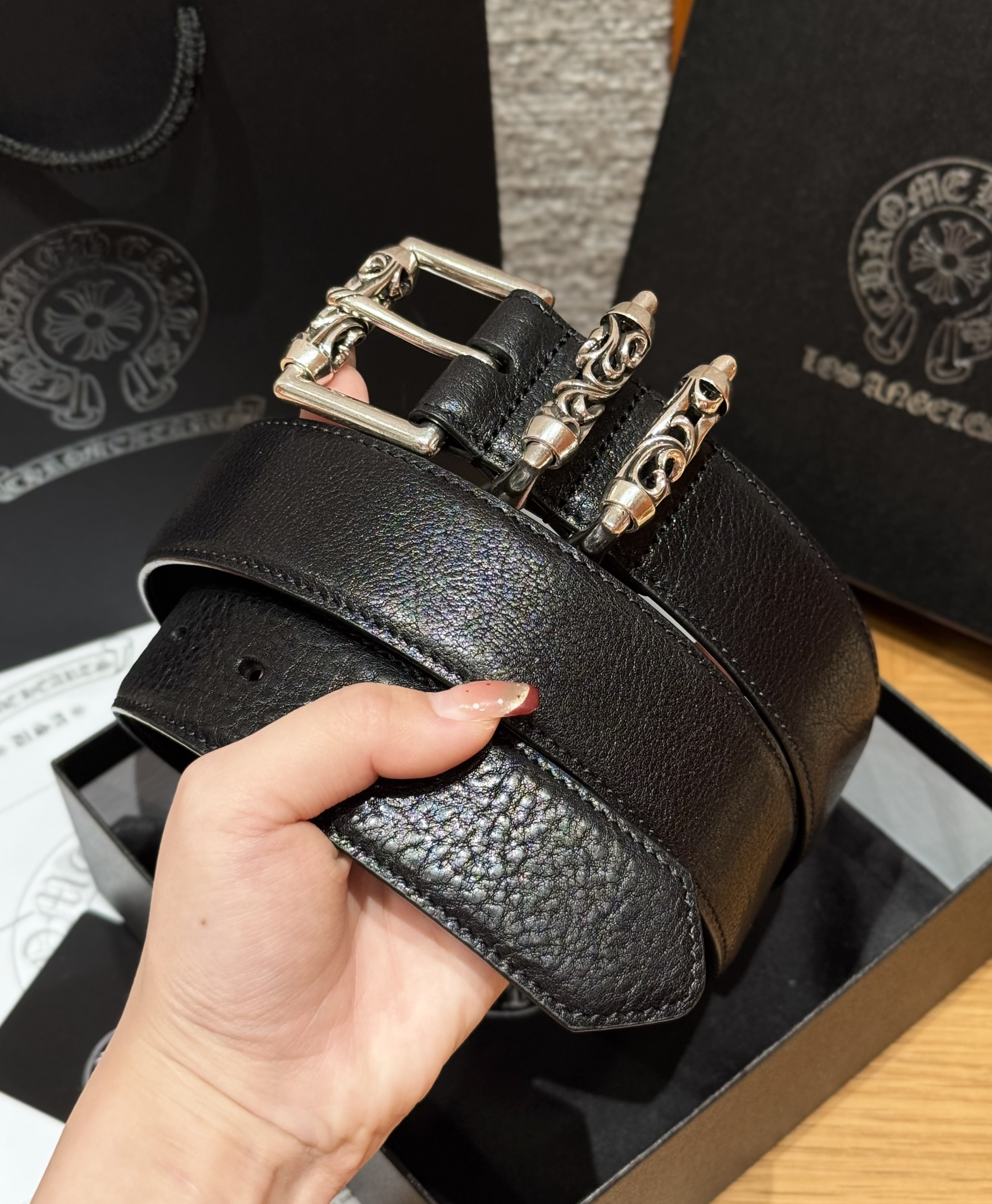 This Chrome Hearts belt showcases the brand's exceptional craftsmanship and attention to detail. this piece combines timeless luxury with modern style.