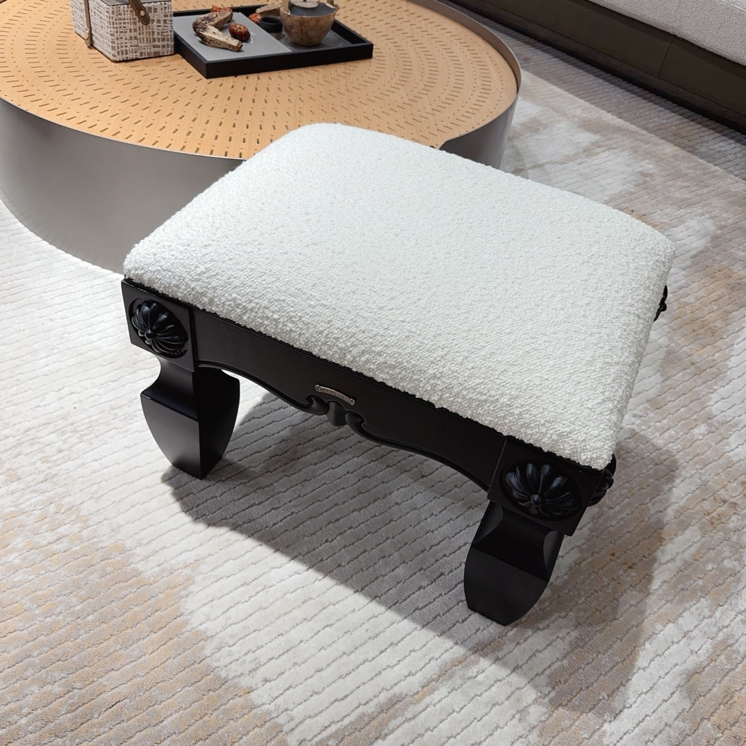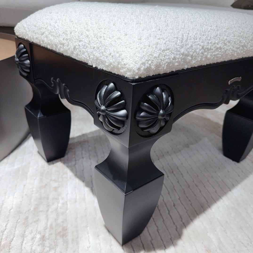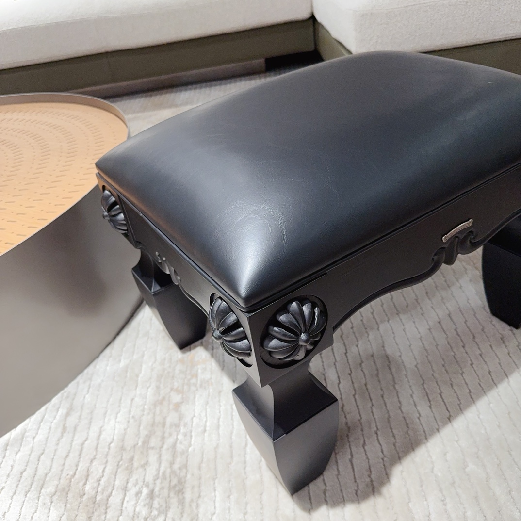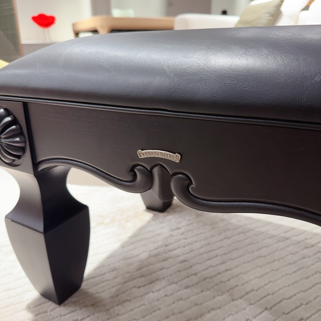 NIGO Chrome Hearts Vintage Leather Lambswool Solid Wood Carved Stool #nigo73653