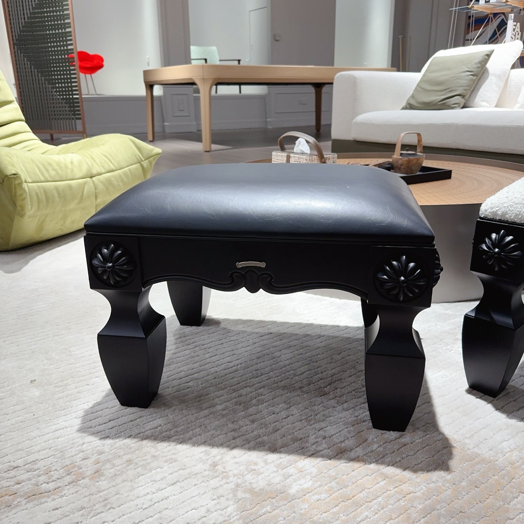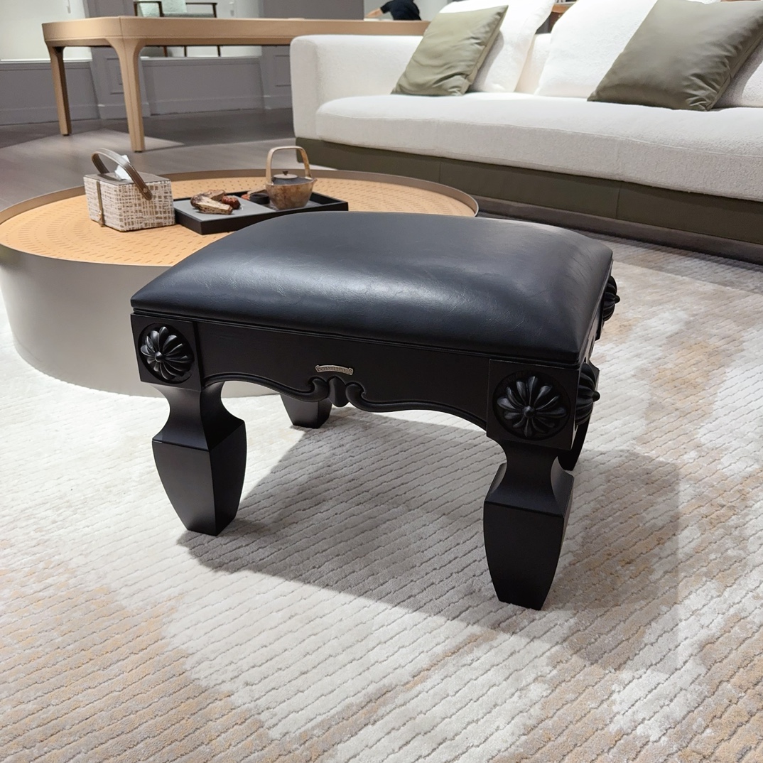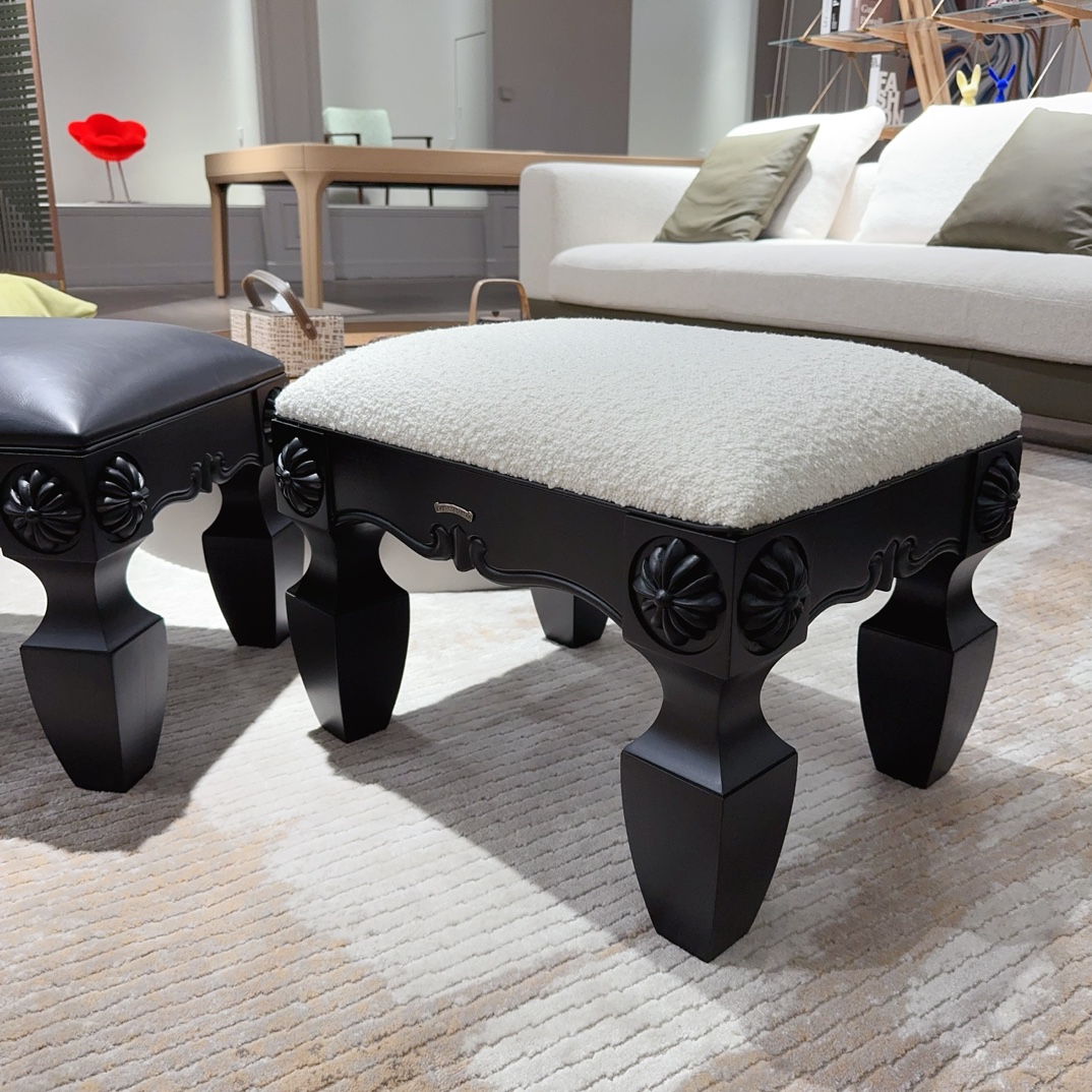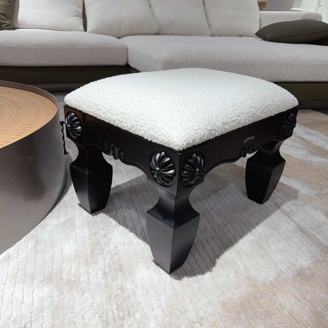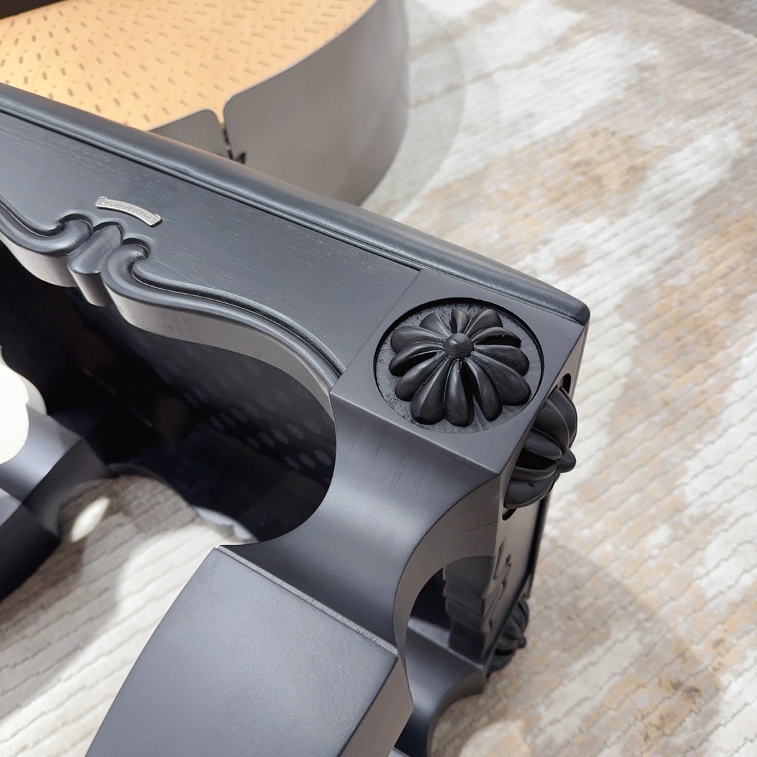 NIGO Chrome Hearts Vintage Leather Lambswool Solid Wood Carved Stool #nigo73653
