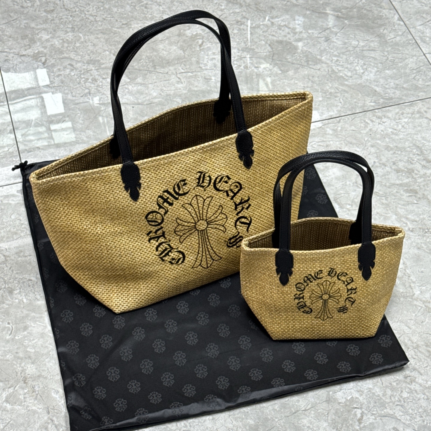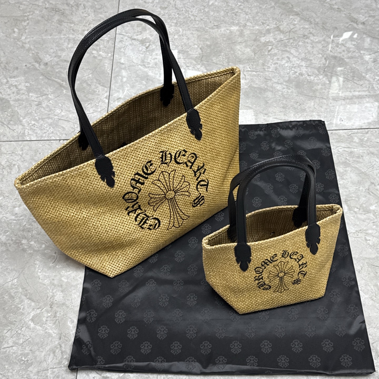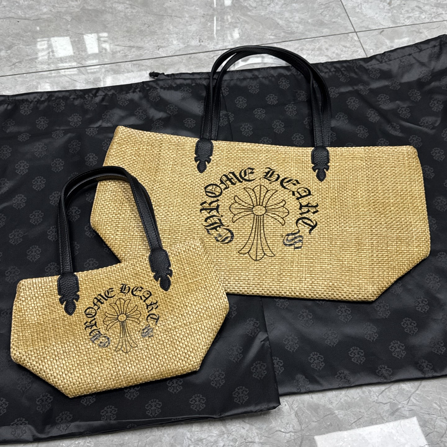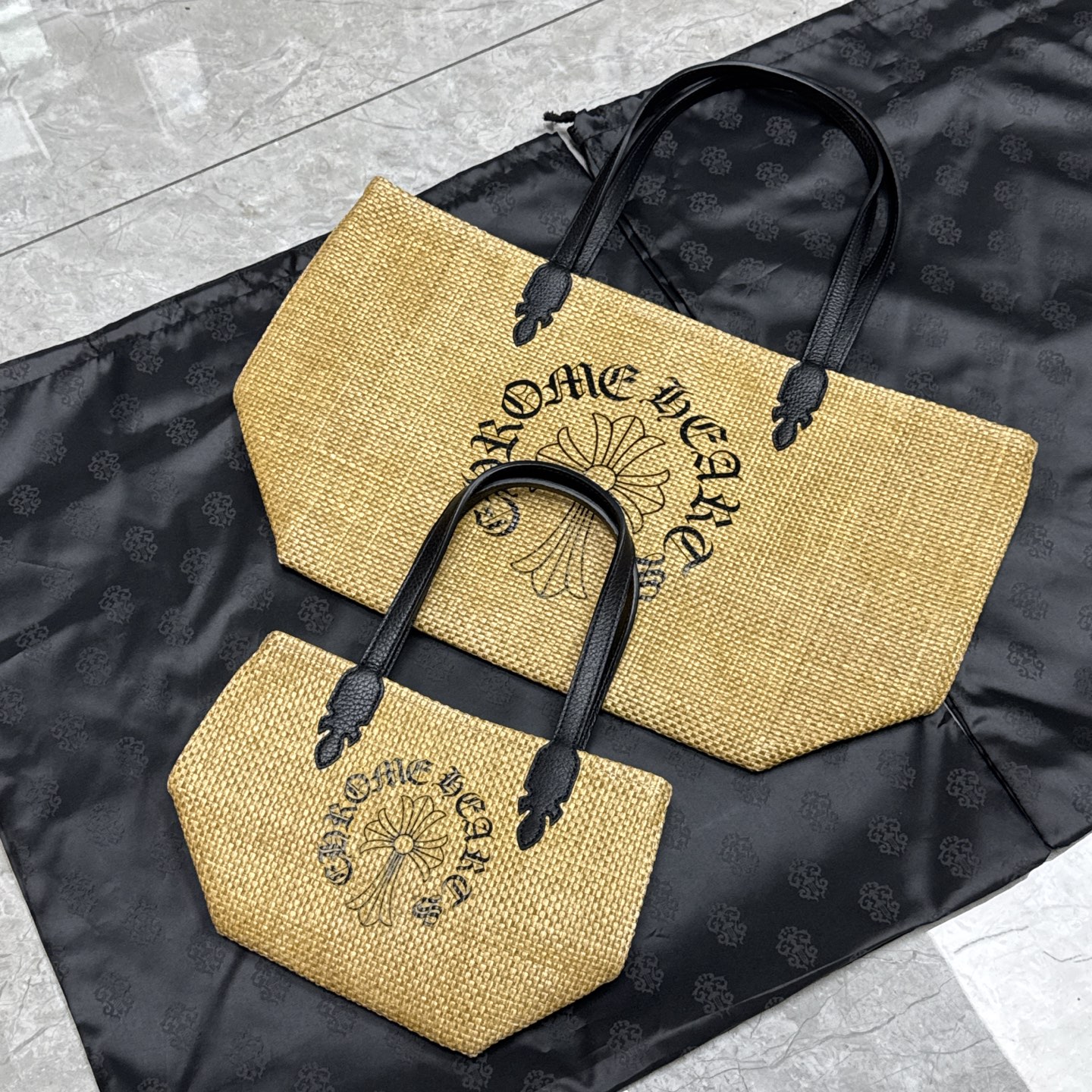 NIGO Chrome Hearts Women's Solid Color Sanskrit Print Waterproof Straw Shopping Bag Handbag Tote Bags #nigo77936
