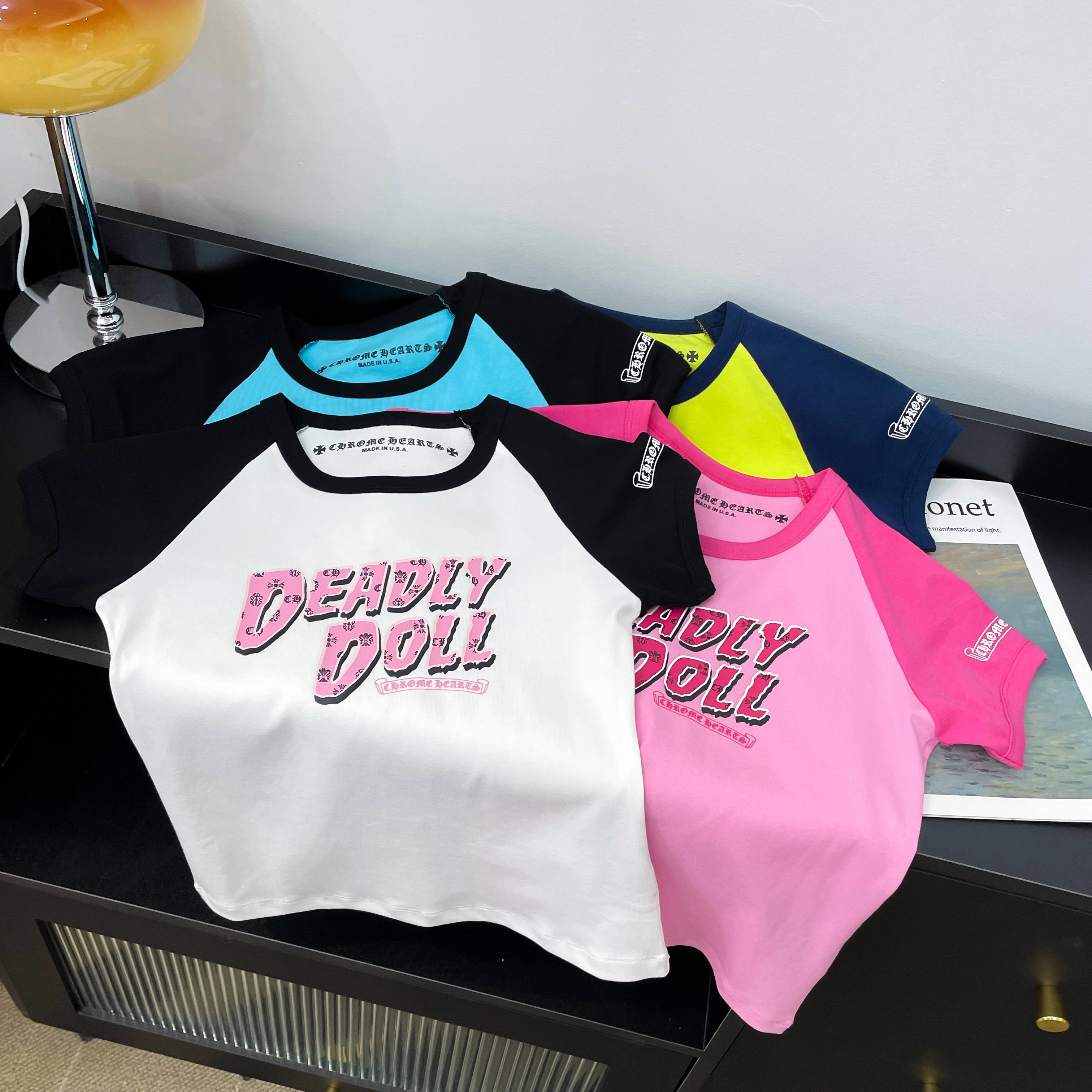 NIGO Chrome Hearts Women's Summer Colorblocked Letter Printed Cotton Round Neck Short Sleeve T-Shirt #nigo76414