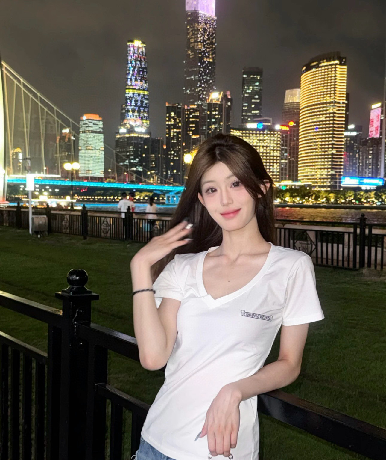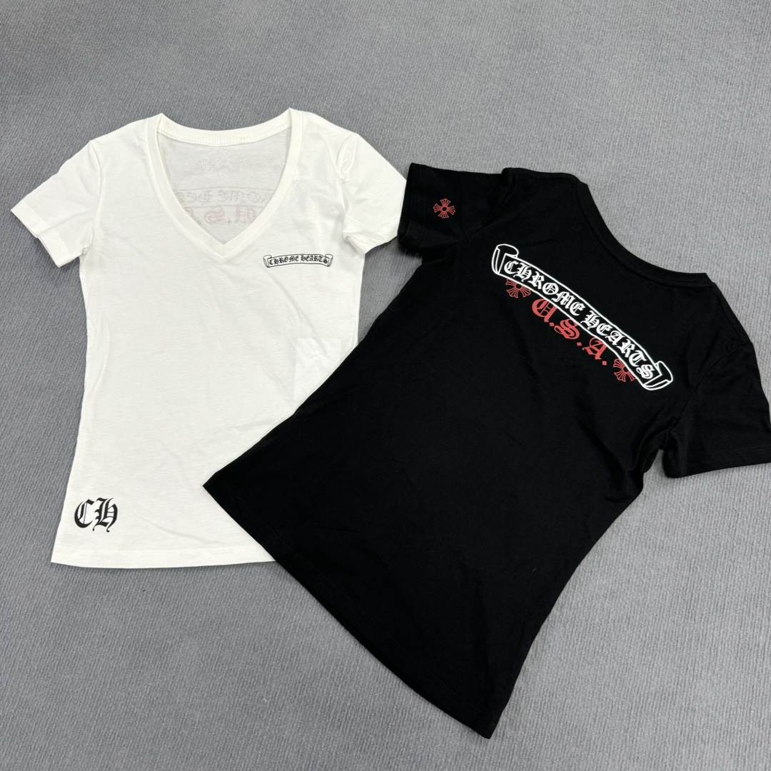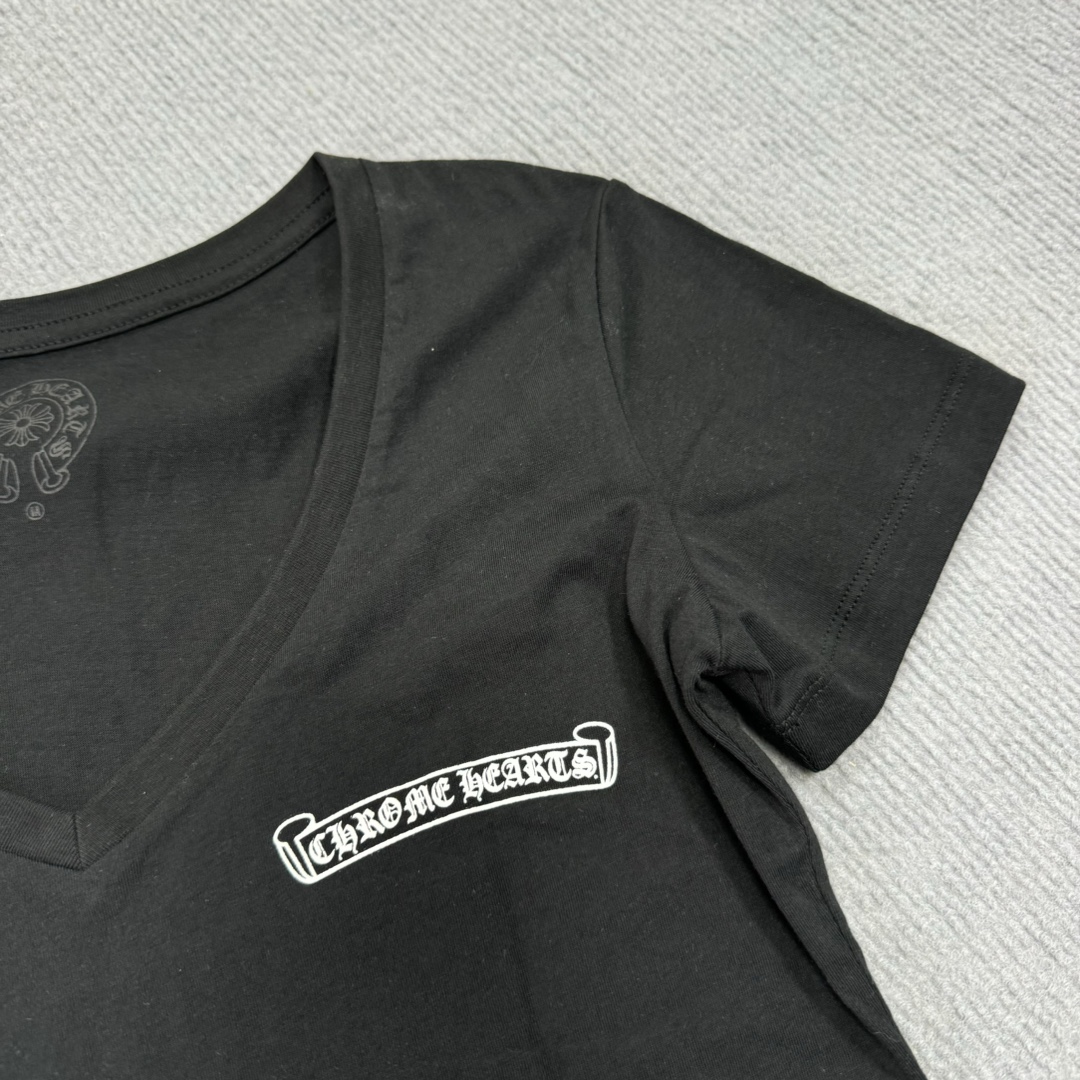 NIGO Chrome Hearts Women's Summer Fashion Casual Solid Color V-neck Cotton Logo Print Short Sleeve T-Shirt Top #nigo78261