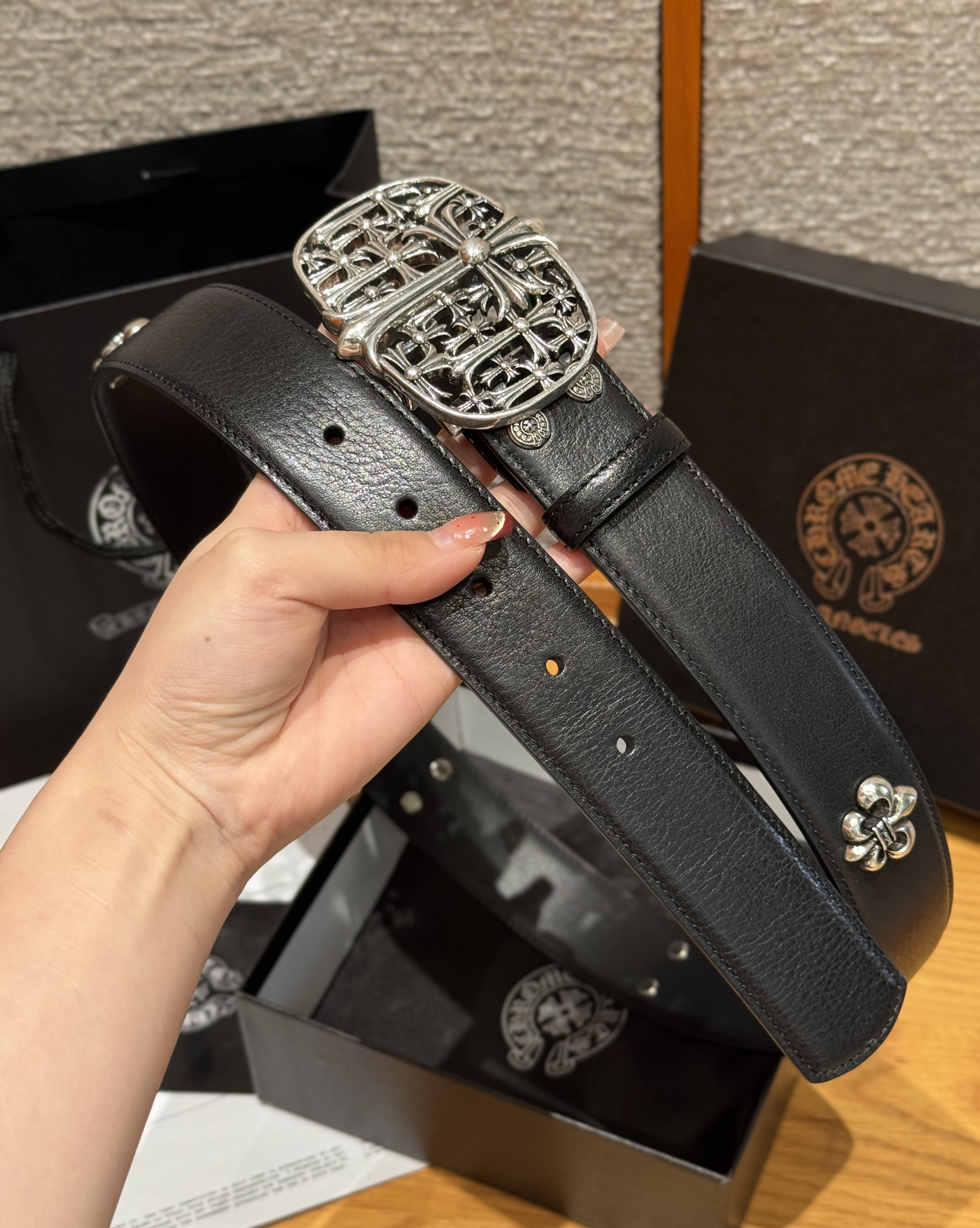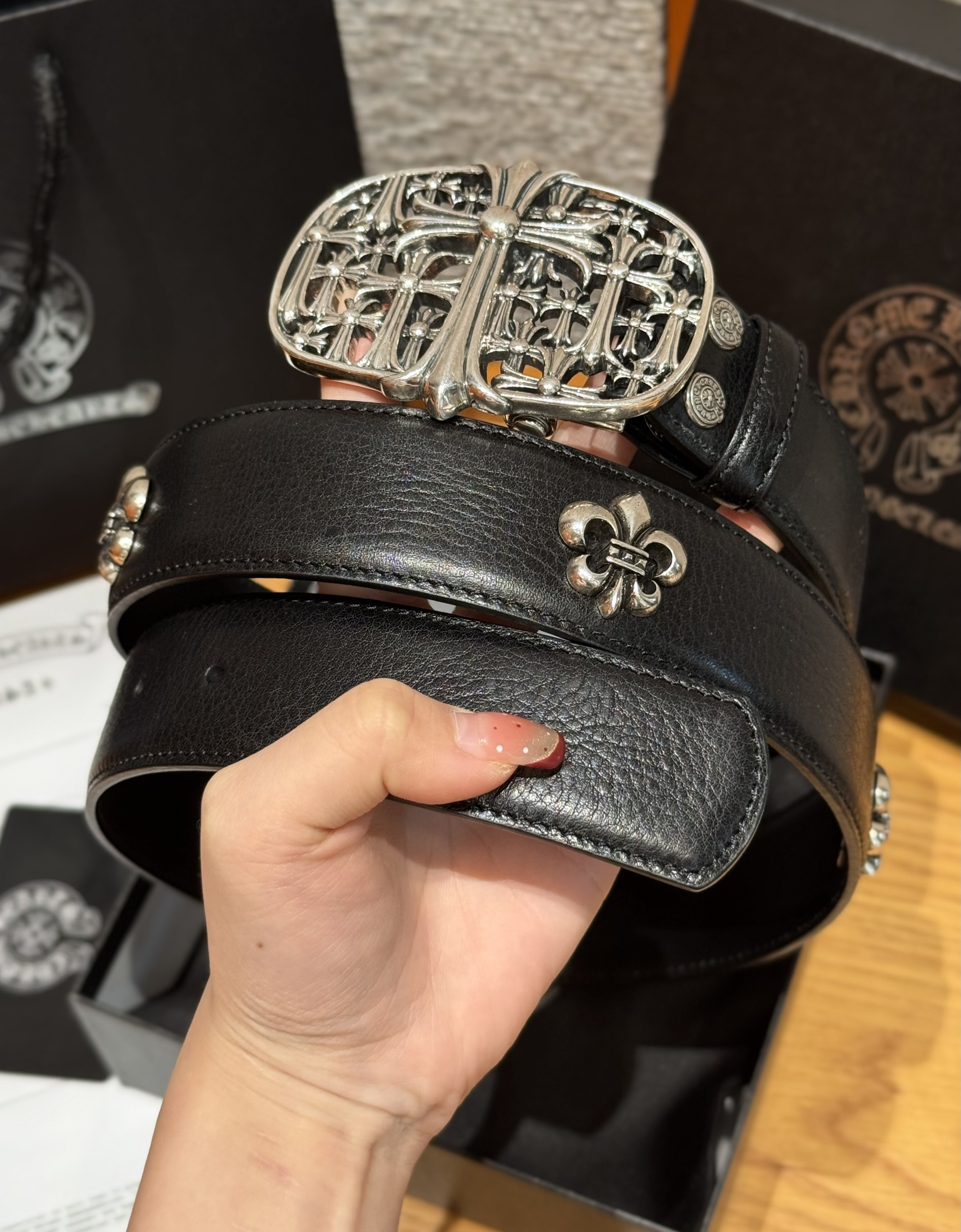 NIGO Chrome Herats Church Rivet Cowhide Belt #nigo334671