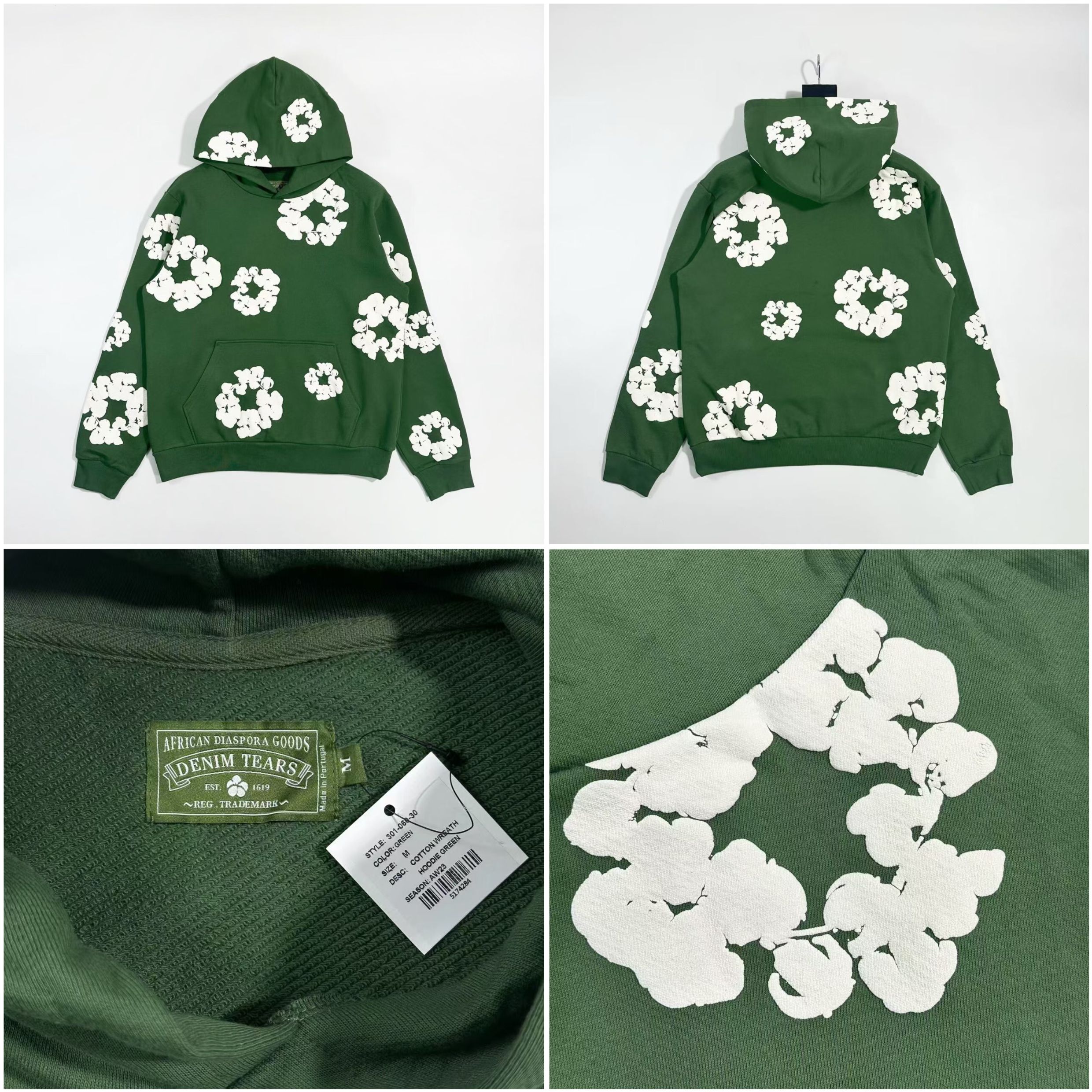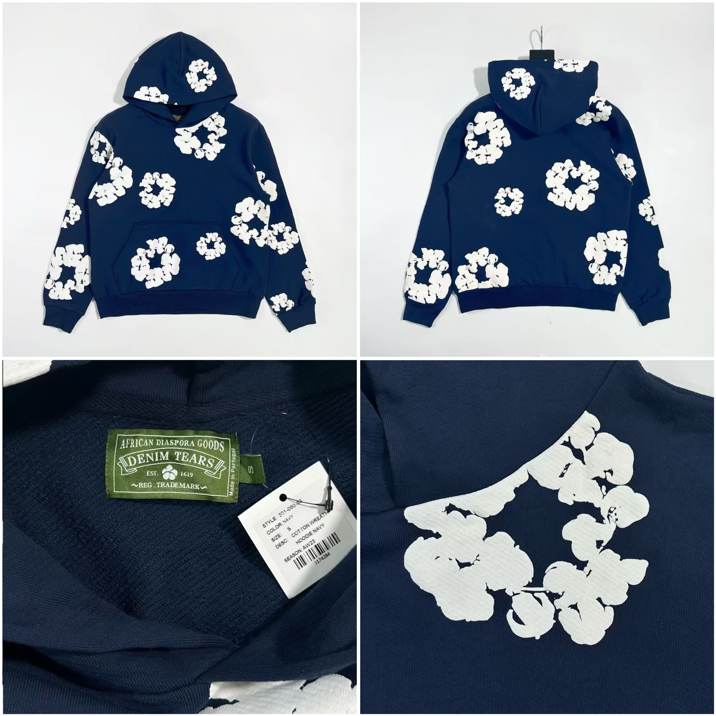 NIGO Denim Tears Men's And Women's Spring/fall Fashion Trend Solid Color Hooded Pullover Loose Fit Cotton Hoodie With Floral Print European American Style High Street Hip Hop Streetwear Sweatshirt #nigo79535