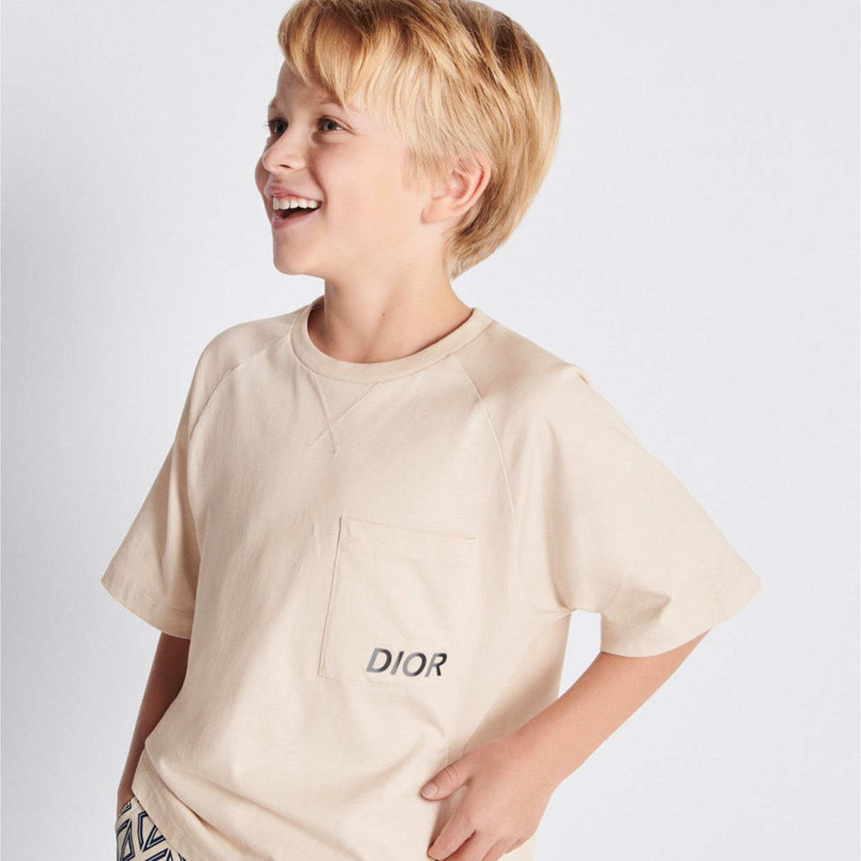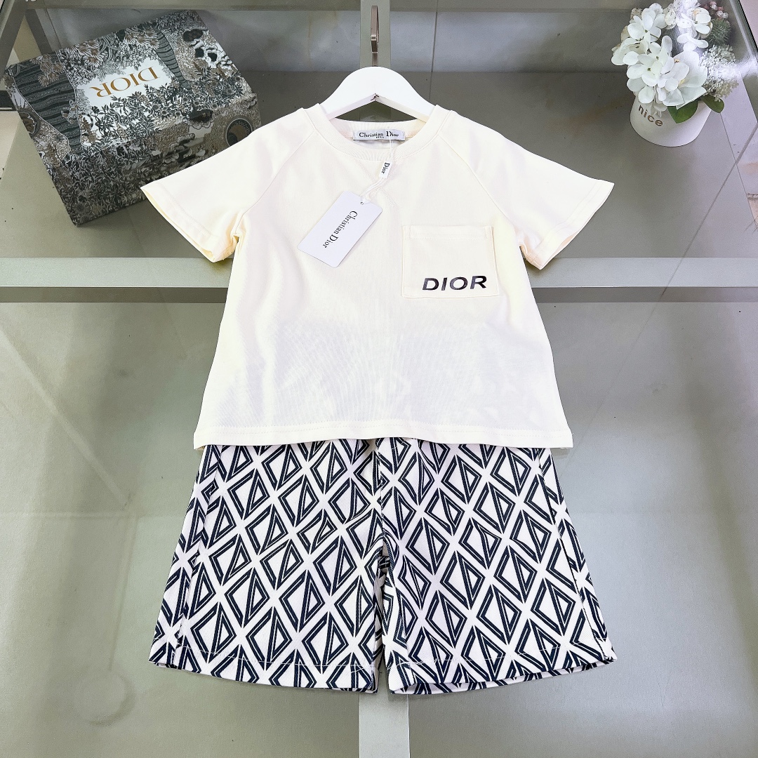 NIGO Dior Kid's Summer Solid Color Cotton Round Neck Logo Printed Short Sleeve T-Shirt Casual Elastic Shorts Set #nigo31298