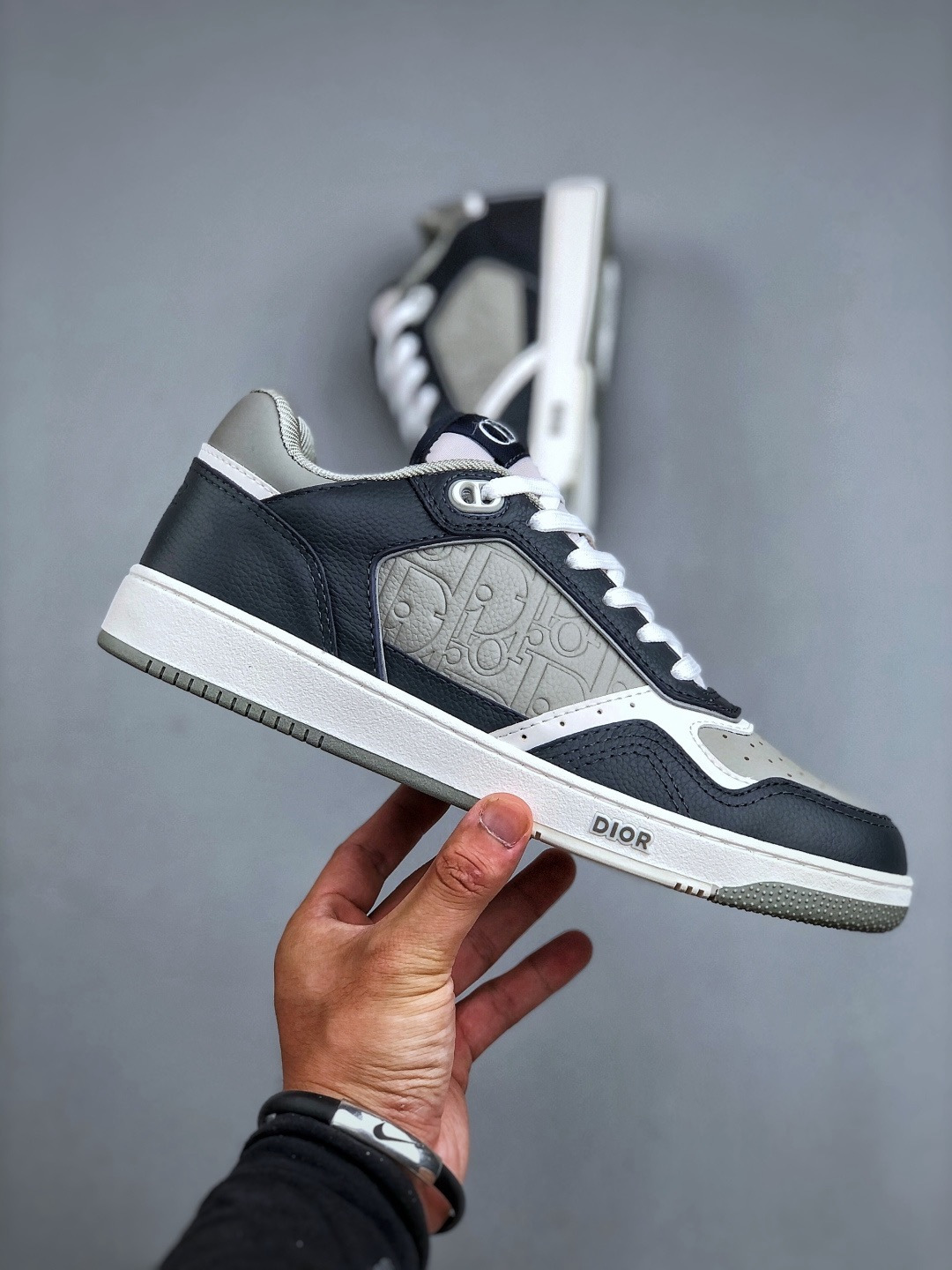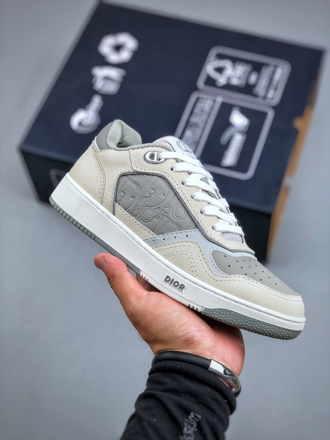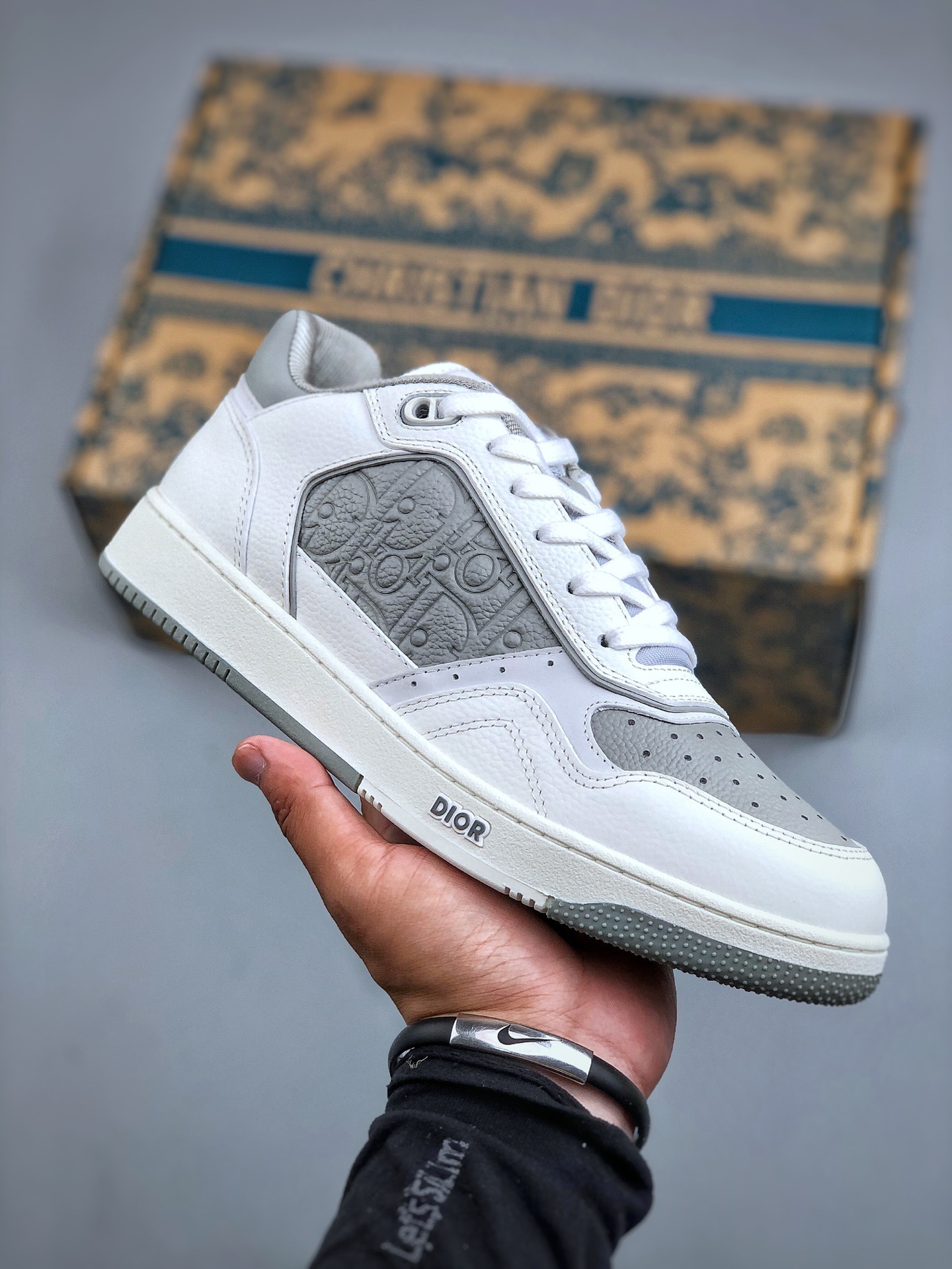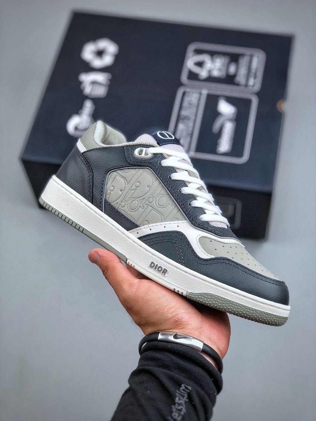 NIGO DIOR Leather B27 Uptown Low-Top Sneaker Grained Calfskin with Dior Gray Dior Gravity #nigo335542