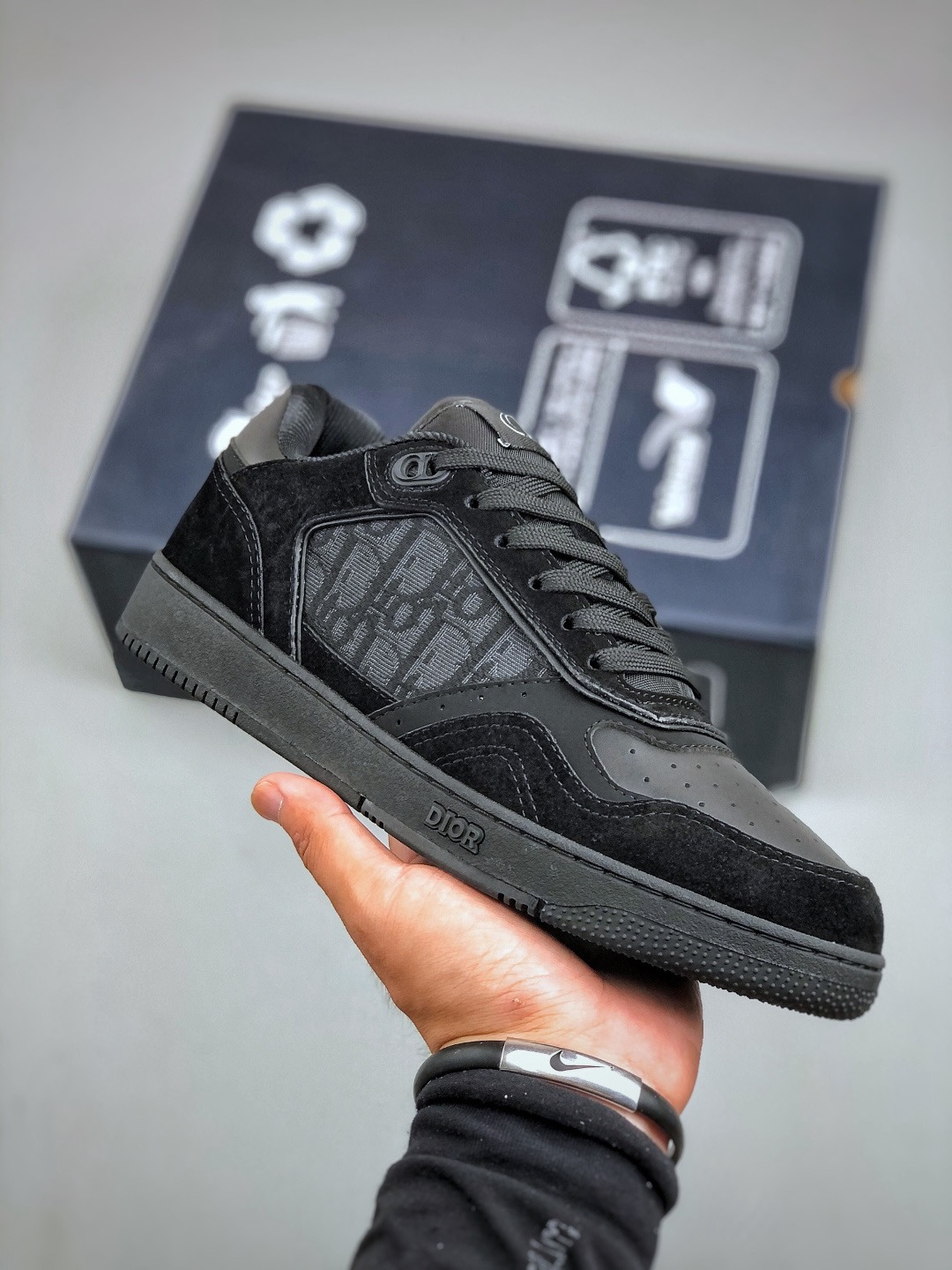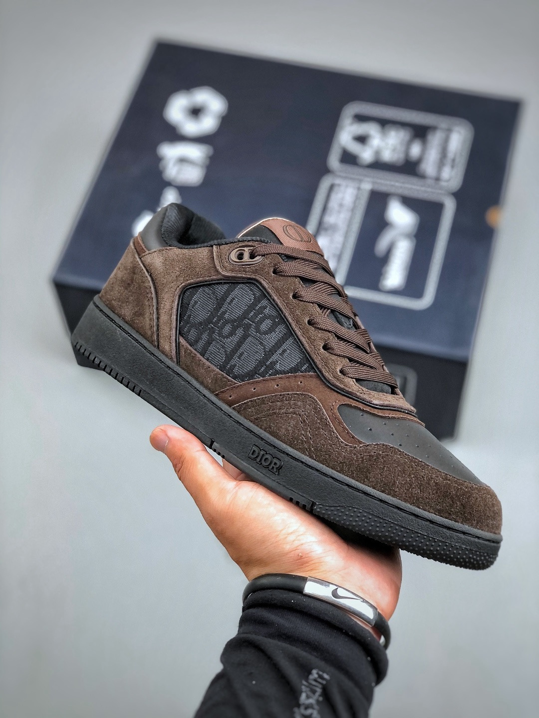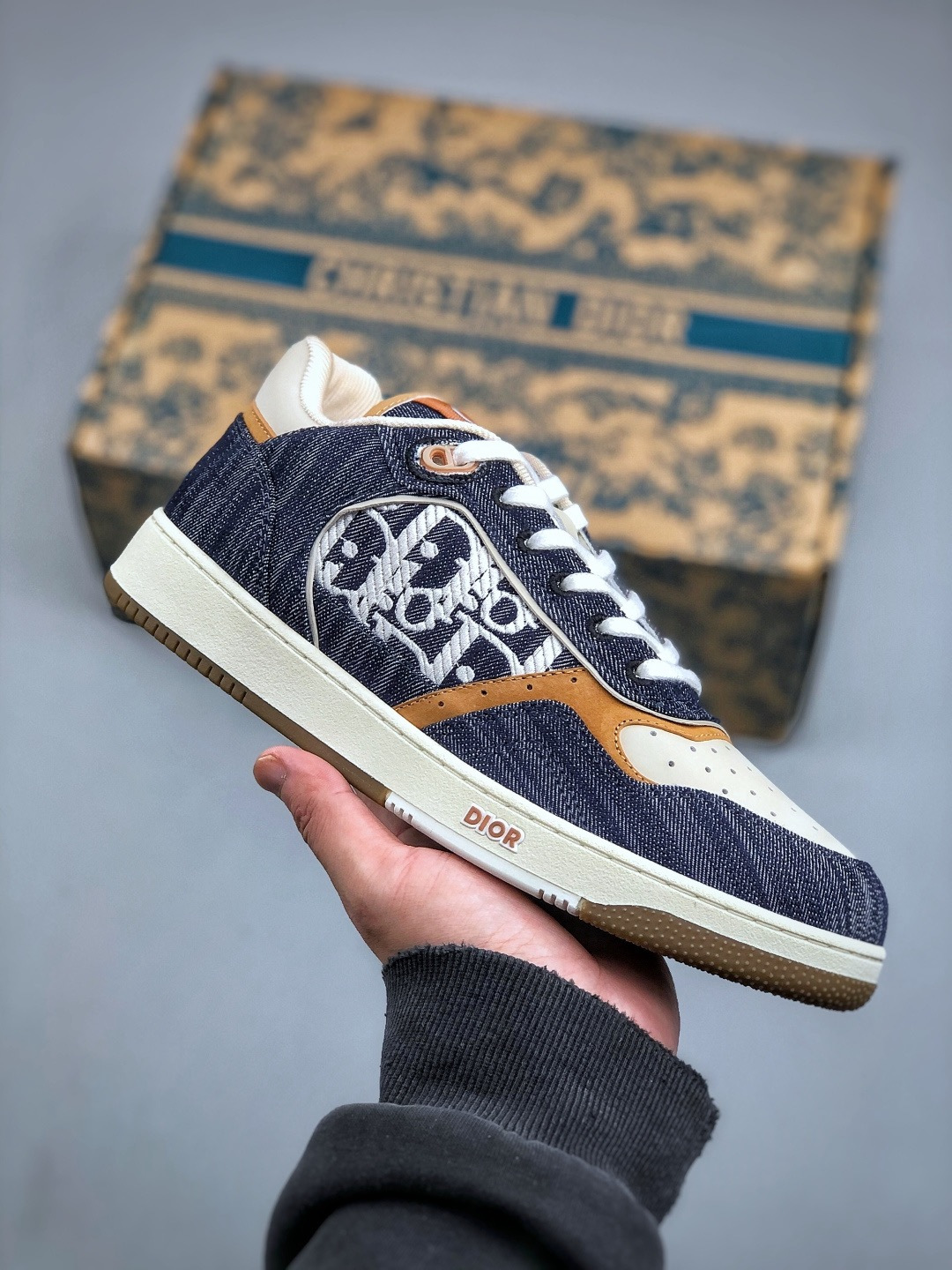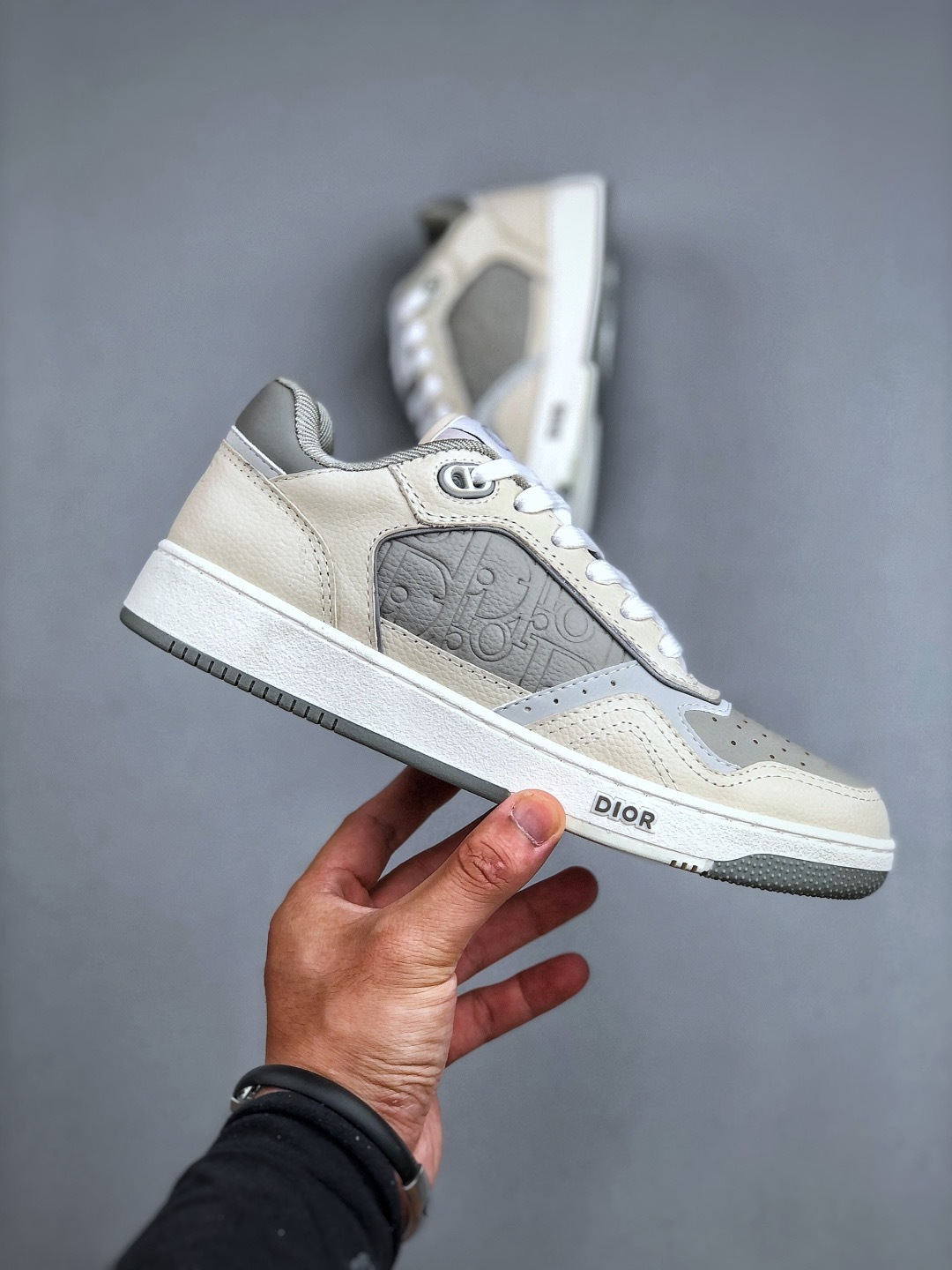 NIGO DIOR Leather B27 Uptown Low-Top Sneaker Grained Calfskin with Dior Gray Dior Gravity #nigo335542