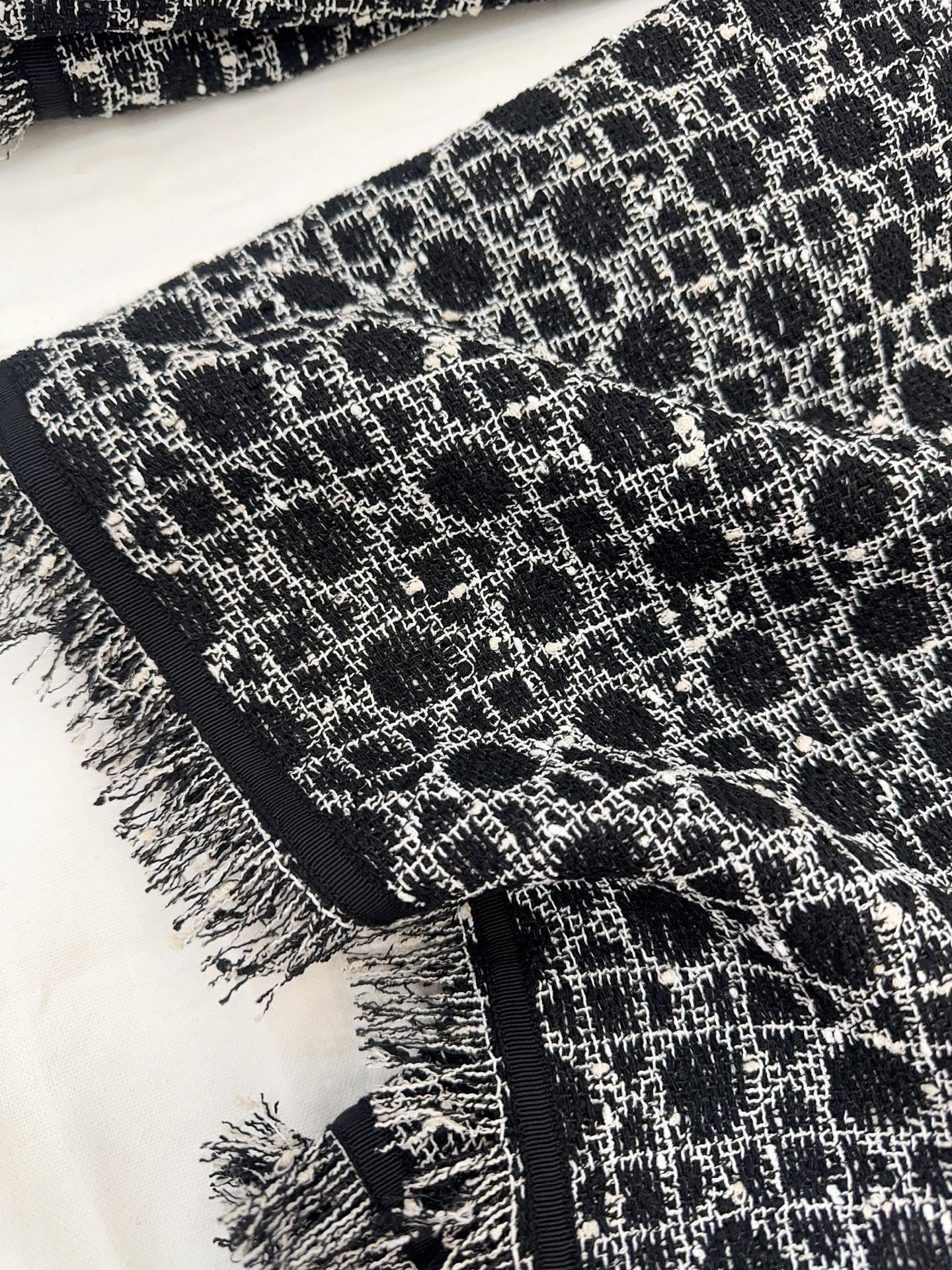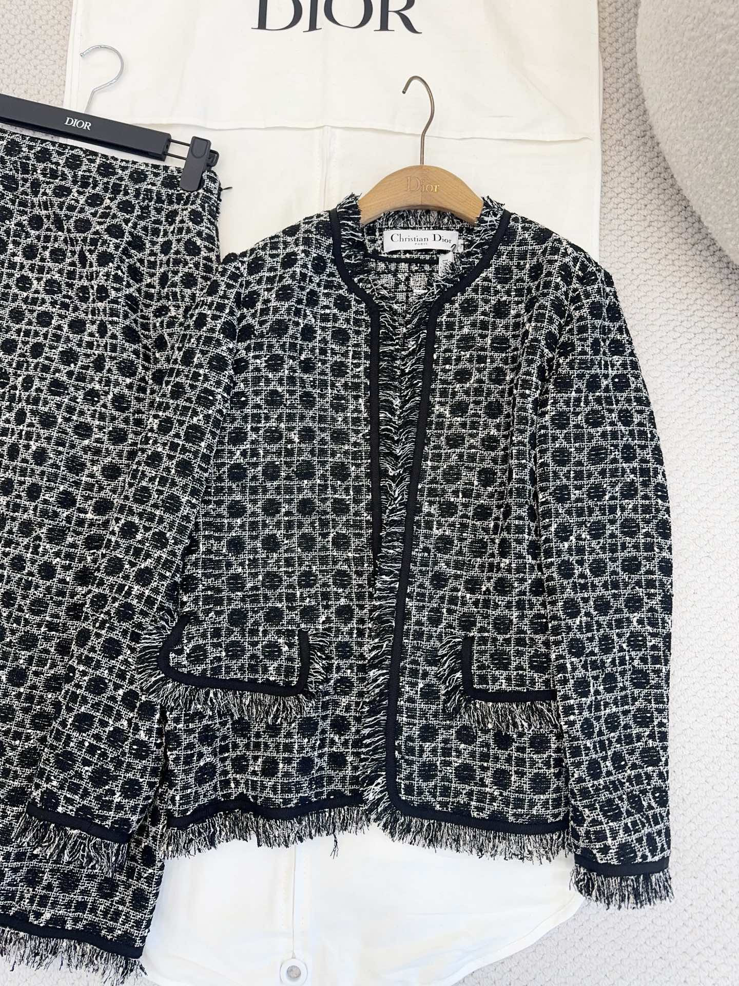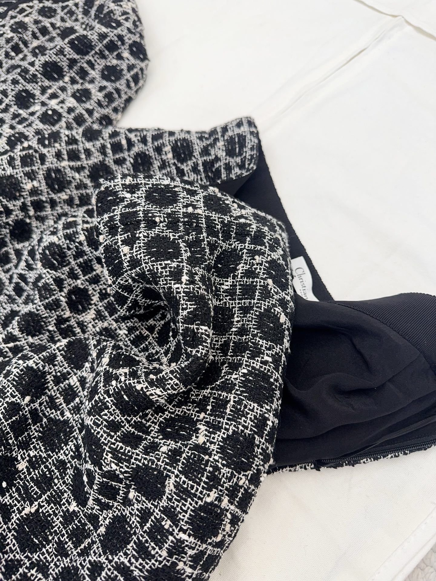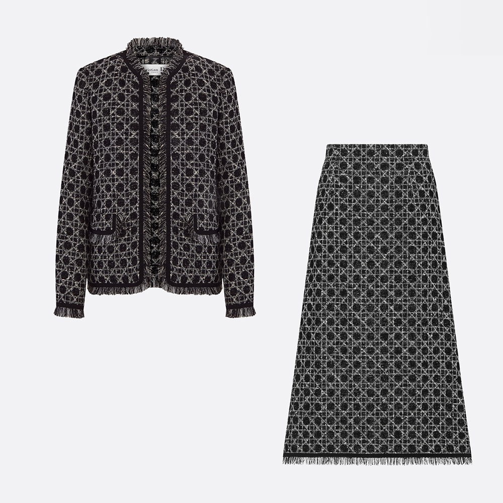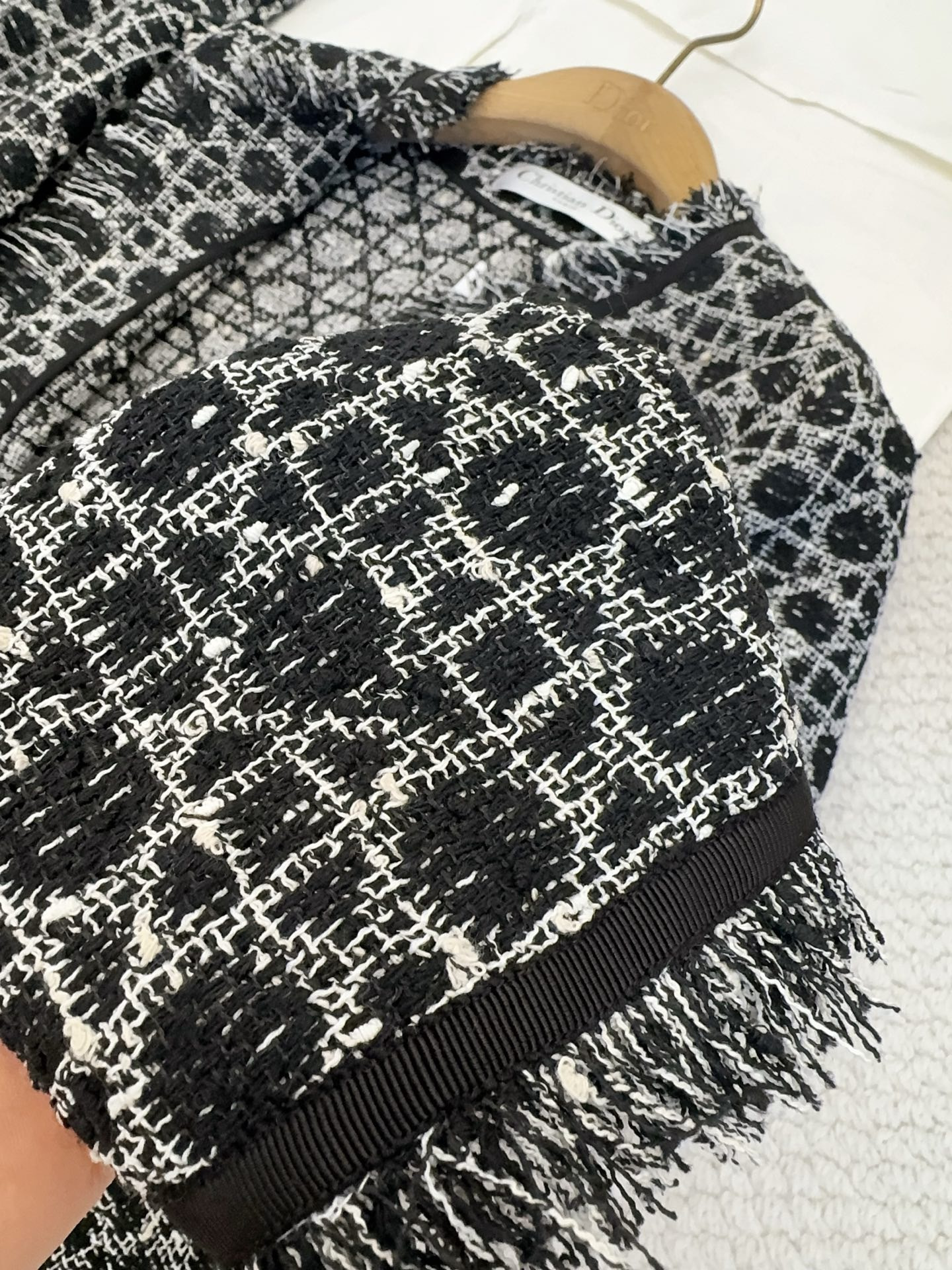 NIGO DIOR Macrocannage Regular Fit Jacket Mid-Length Macrocannage Flared Skirt Black White Cotton-Blend Tweed Knit #nigo334340