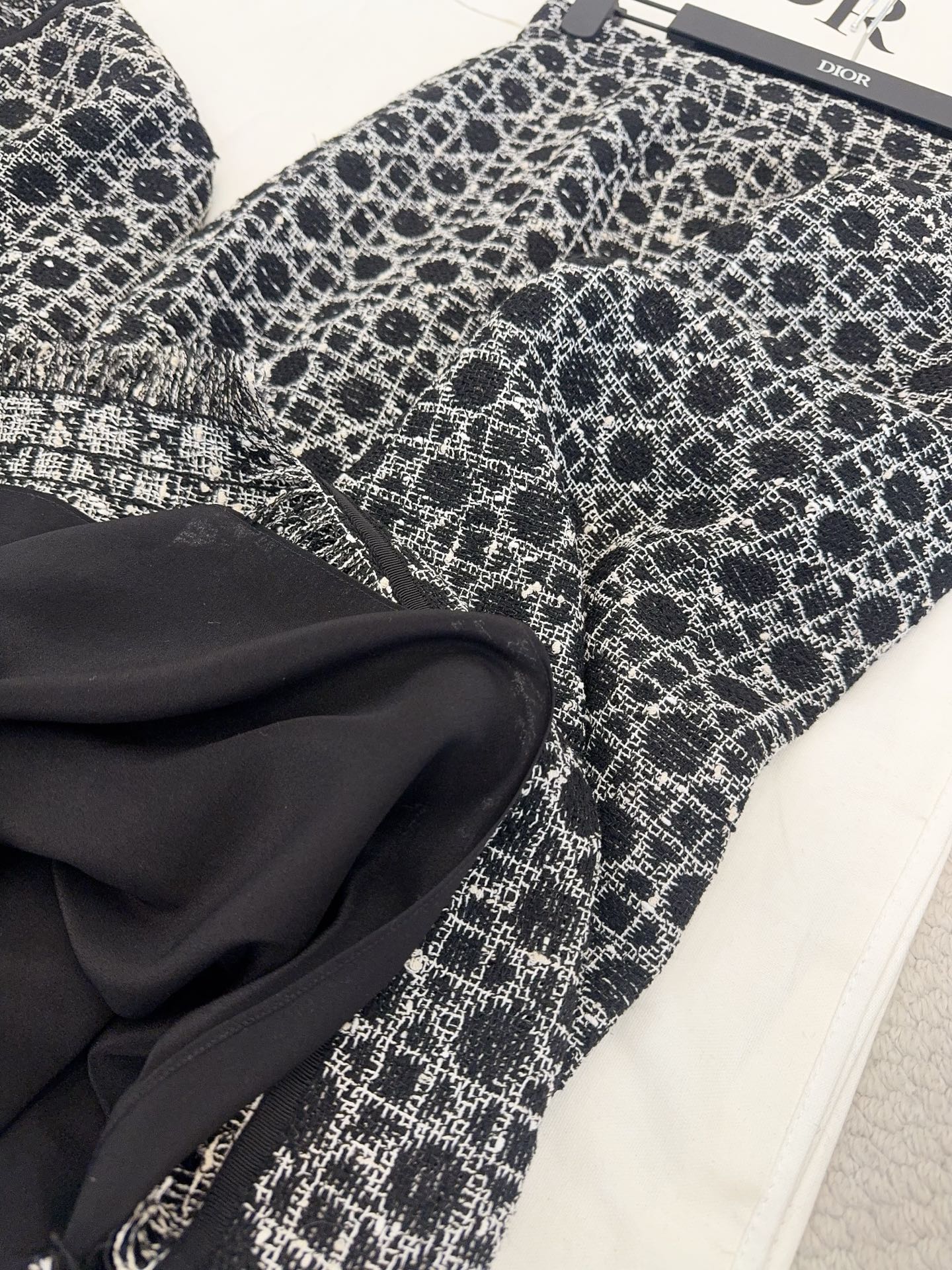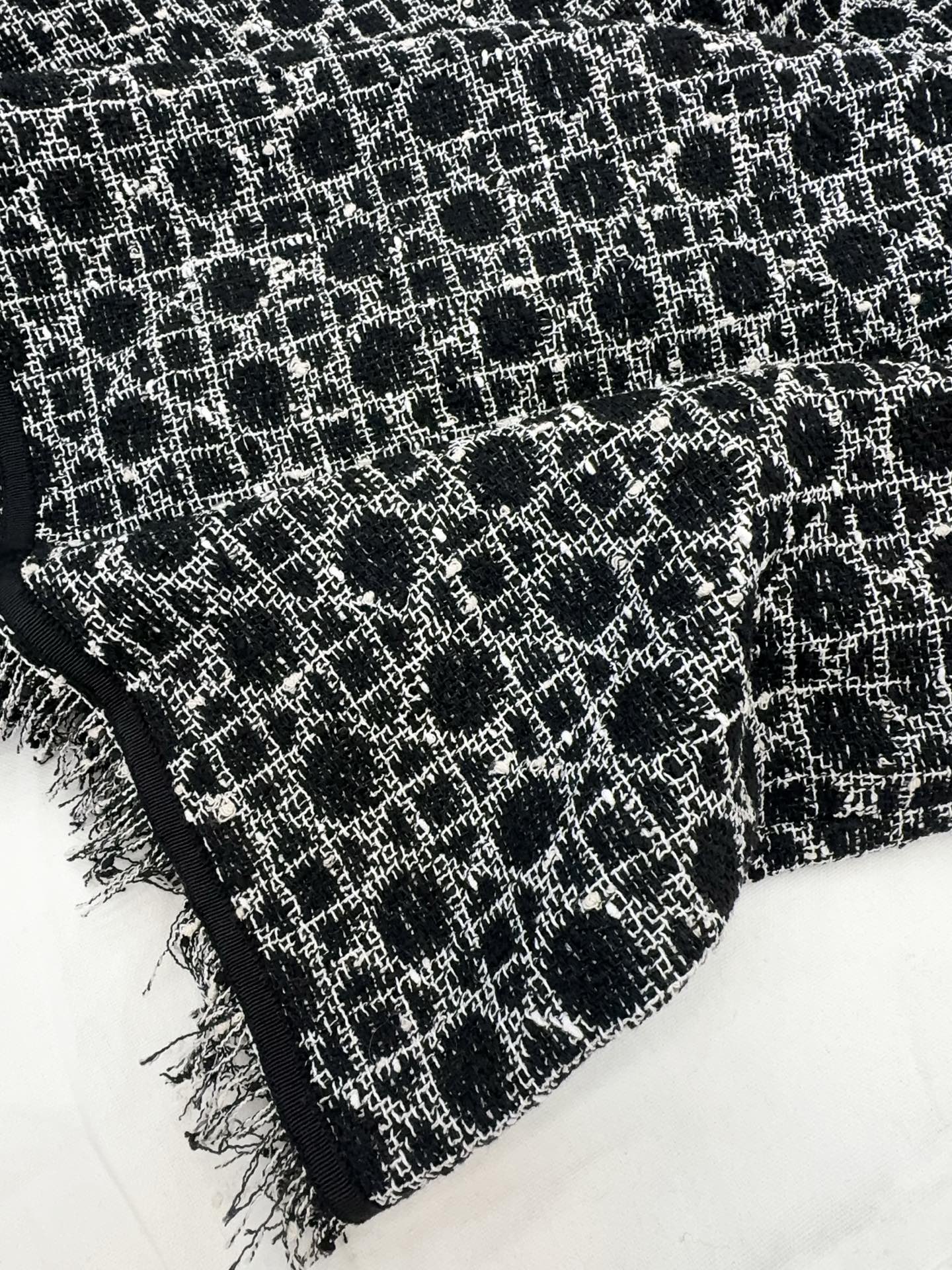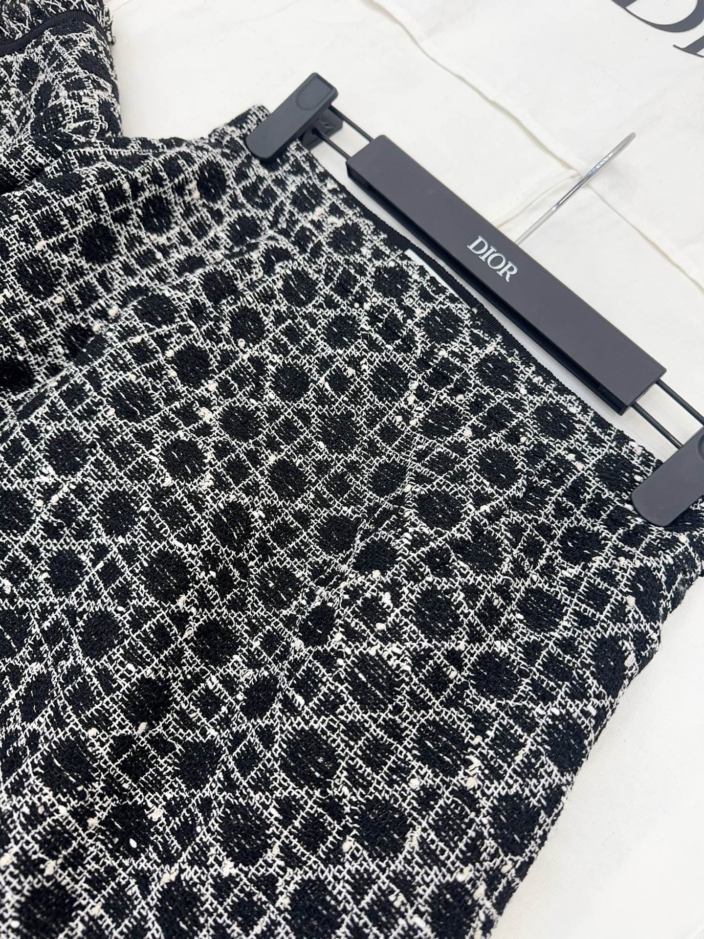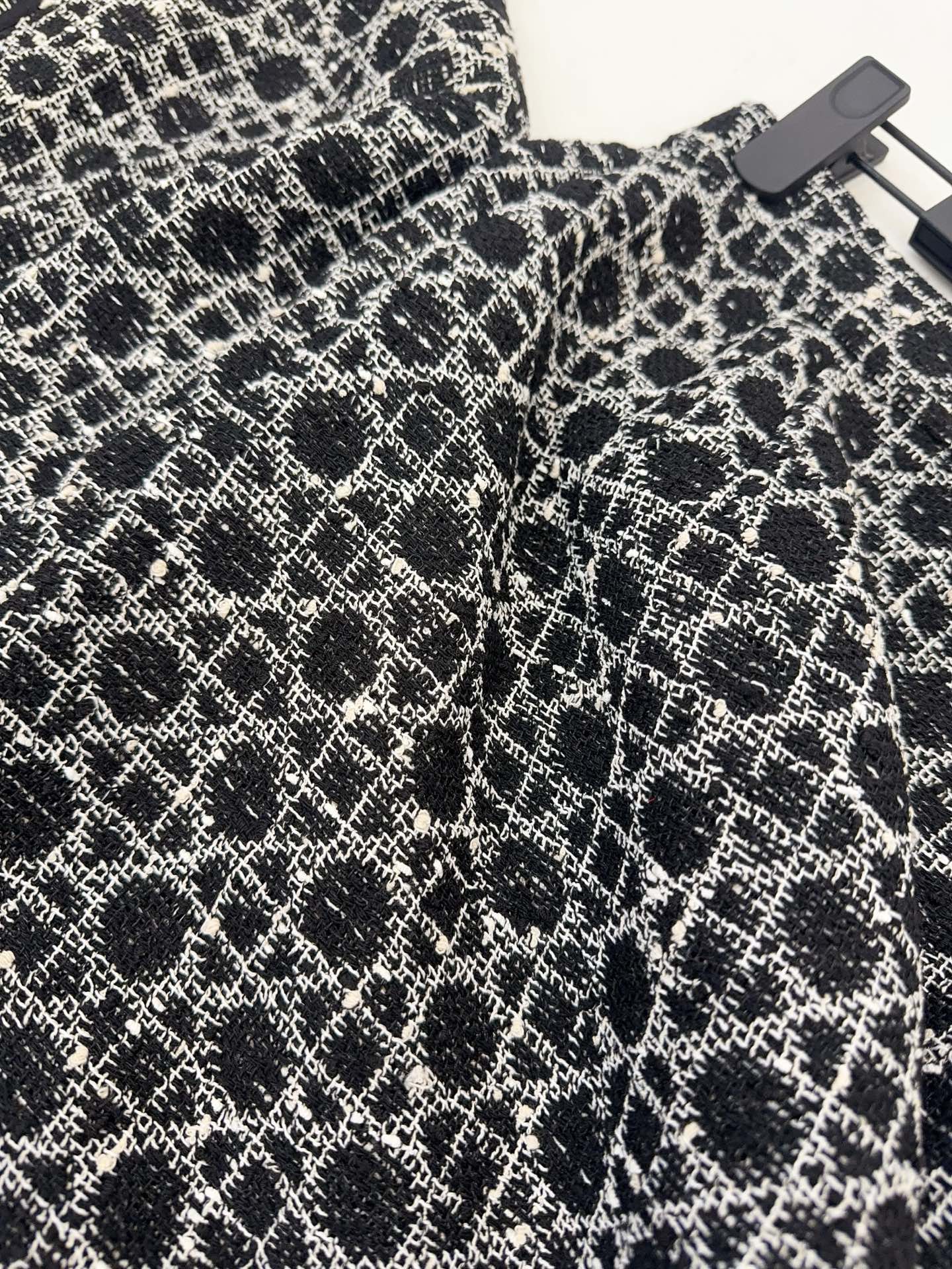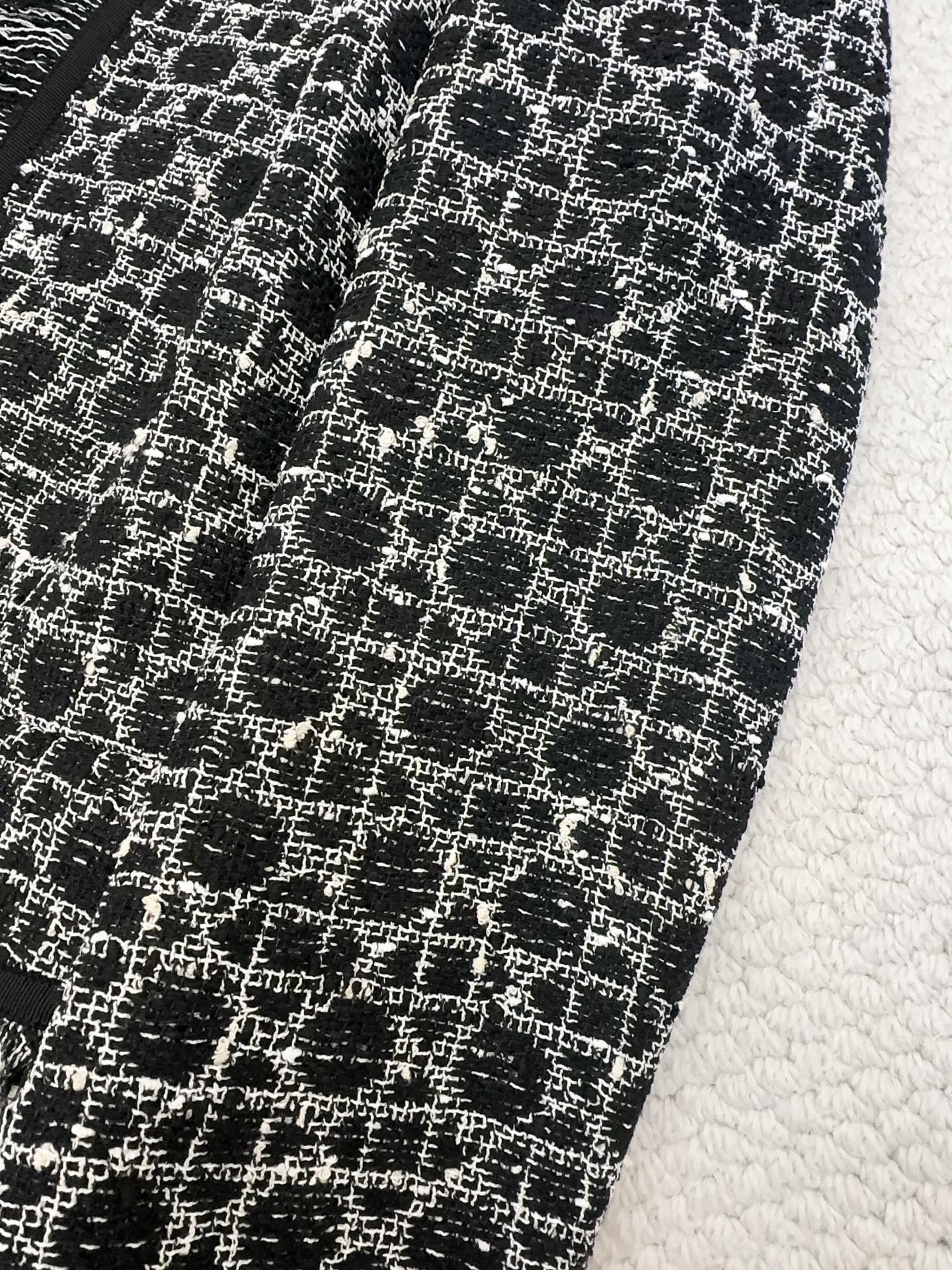 NIGO DIOR Macrocannage Regular Fit Jacket Mid-Length Macrocannage Flared Skirt Black White Cotton-Blend Tweed Knit #nigo334340